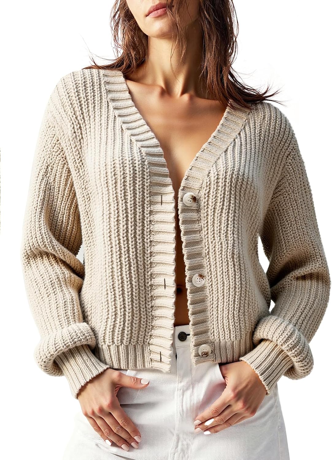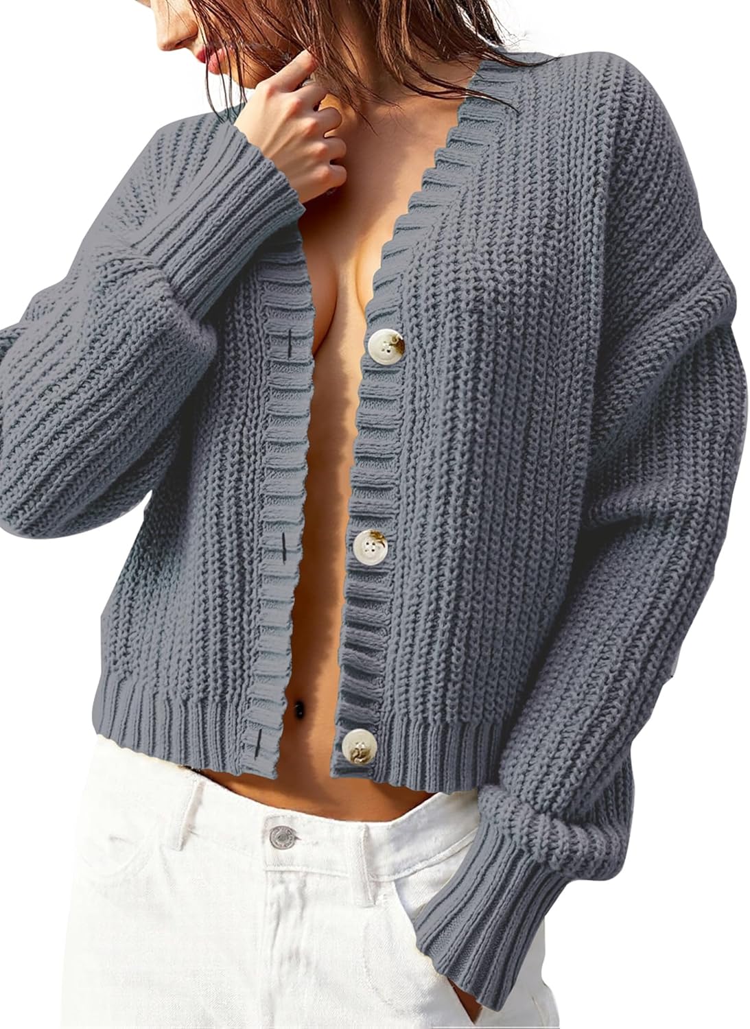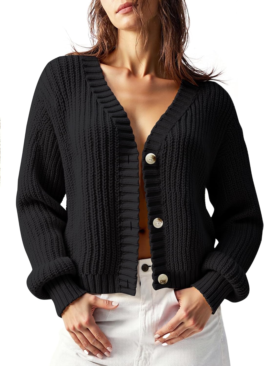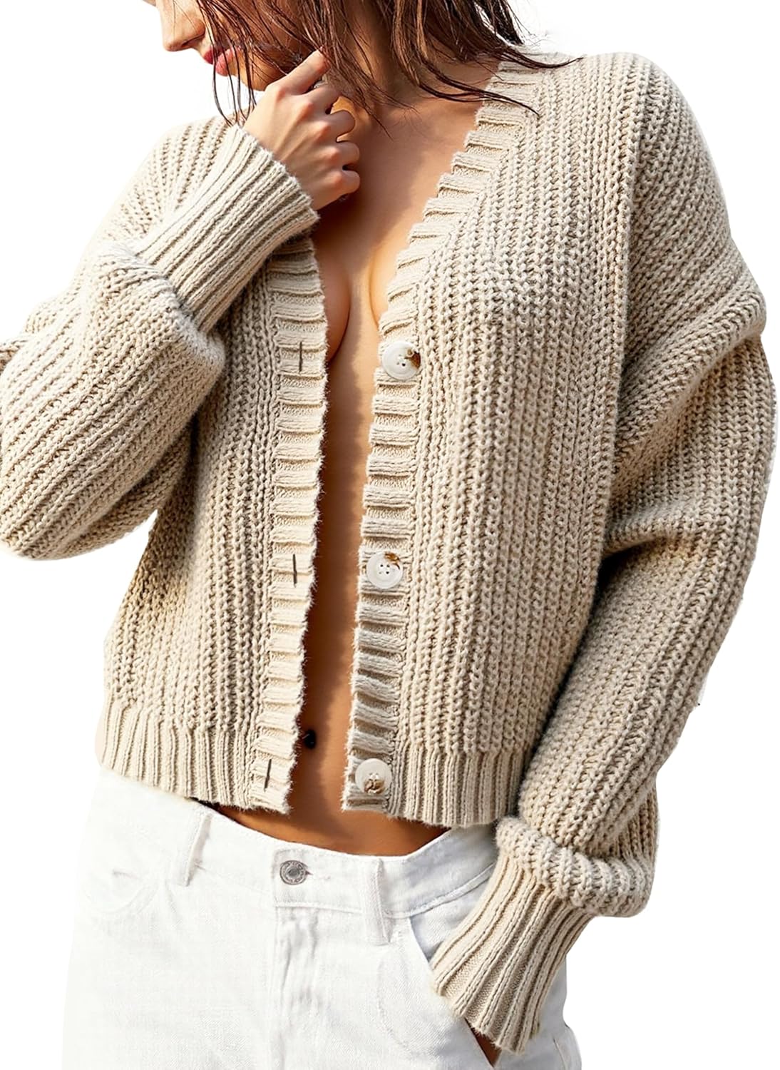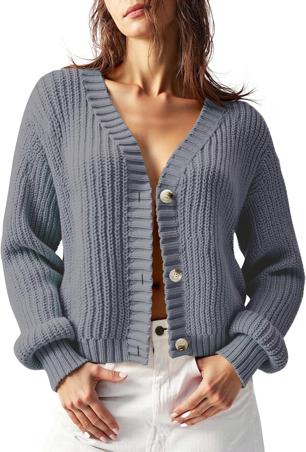 Women’s Chunky Knit Cardigan – Waffle Knit Button Down Oversized V Neck Fall Sweater for Casual Layering