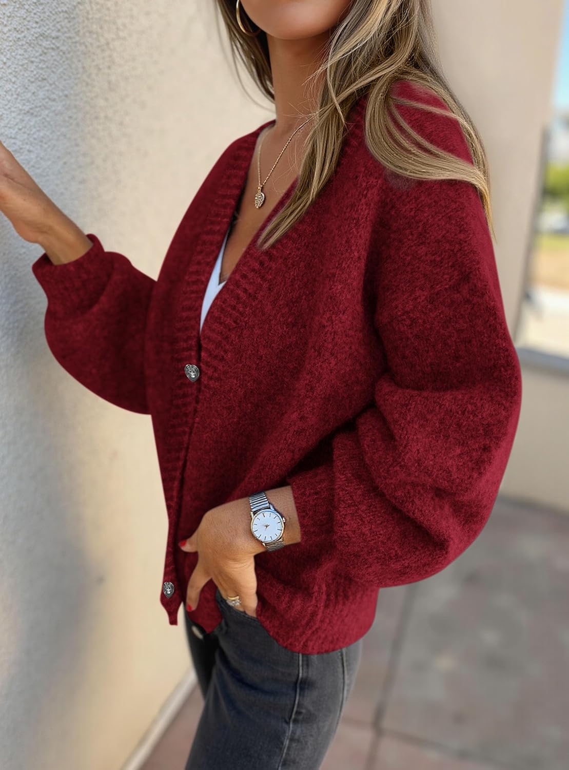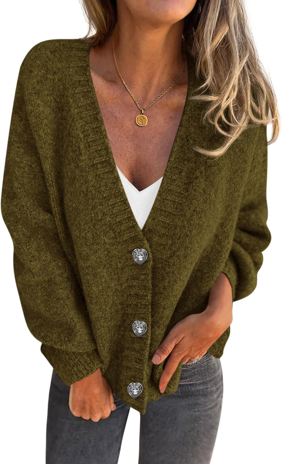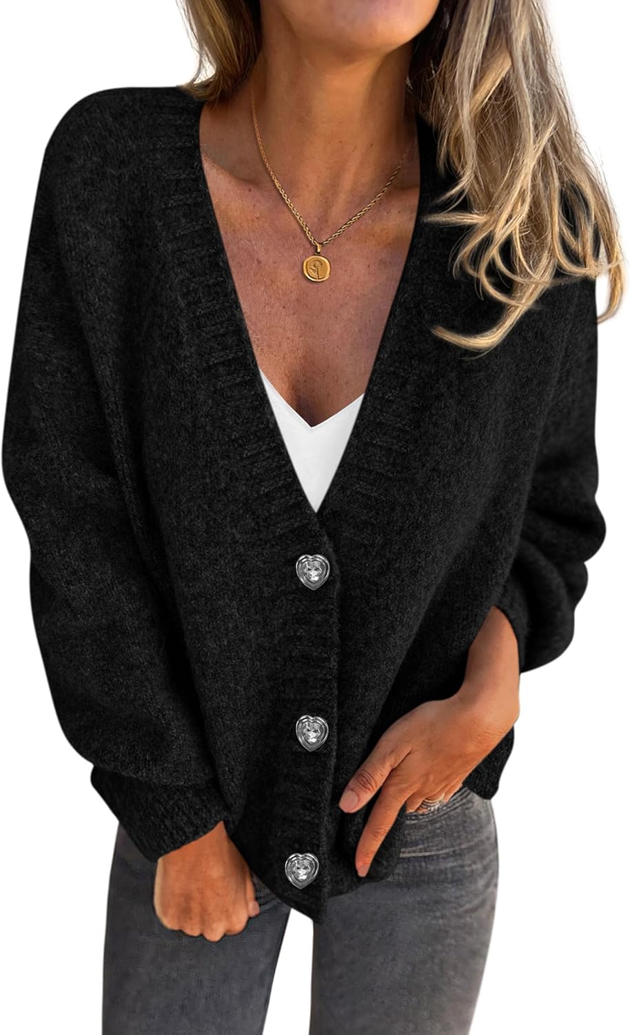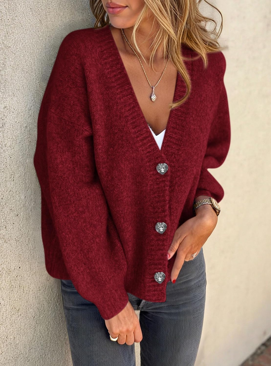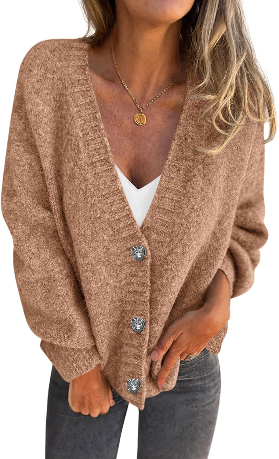 Women’s Chunky Knit Cardigan – Waffle Knit Button Down Oversized V Neck Fall Sweater for Casual Layering