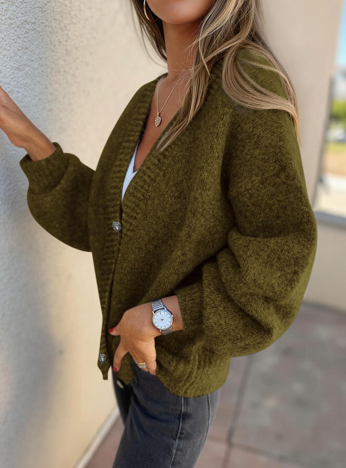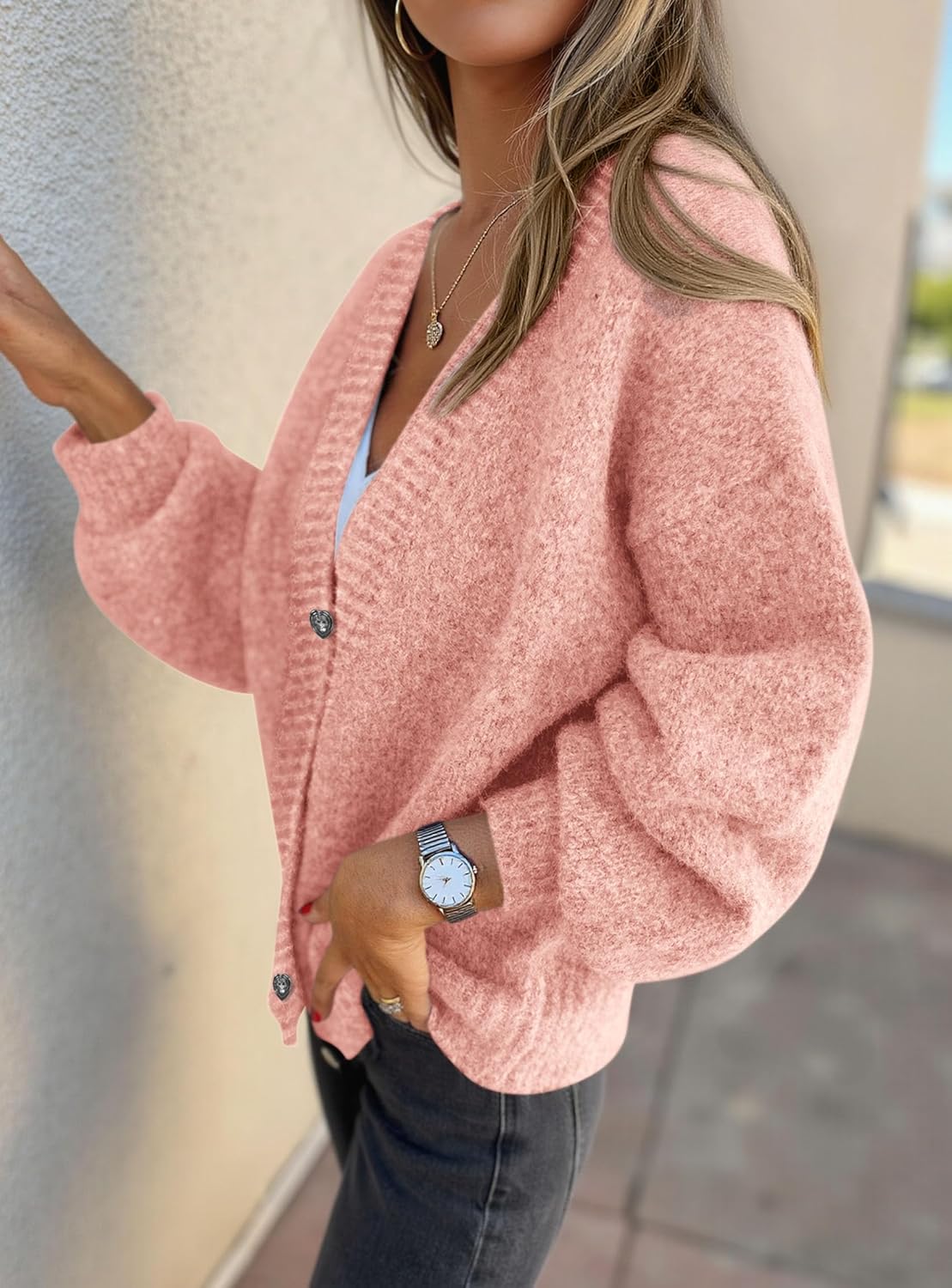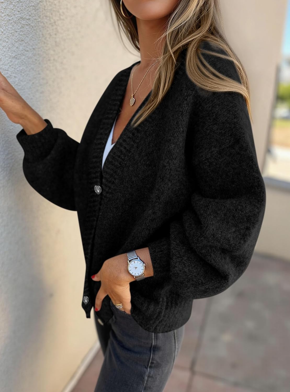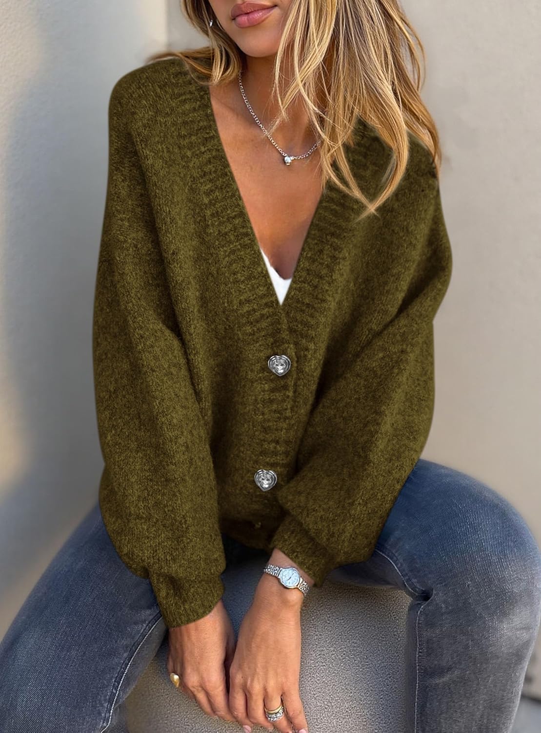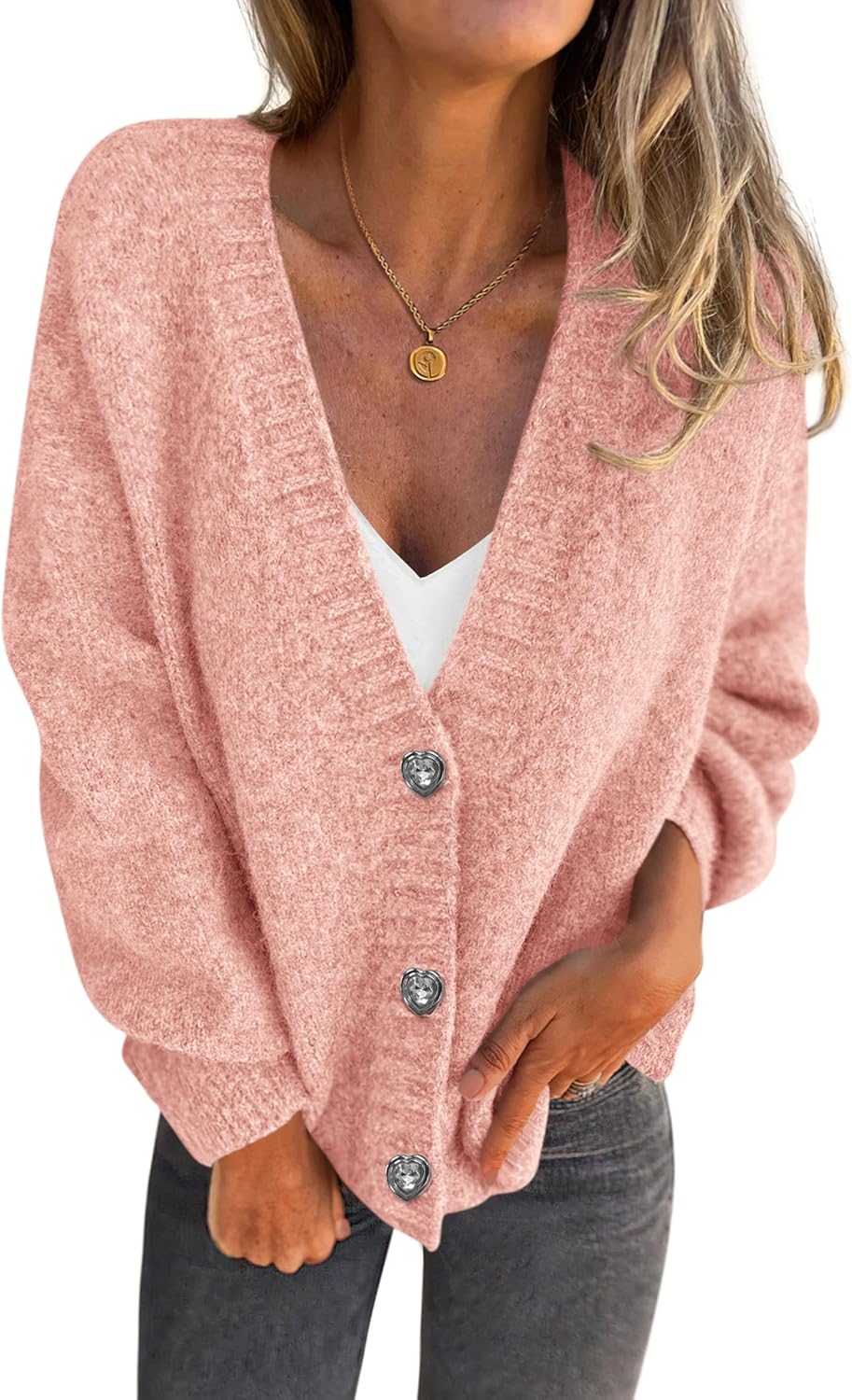 Women’s Chunky Knit Cardigan – Waffle Knit Button Down Oversized V Neck Fall Sweater for Casual Layering
