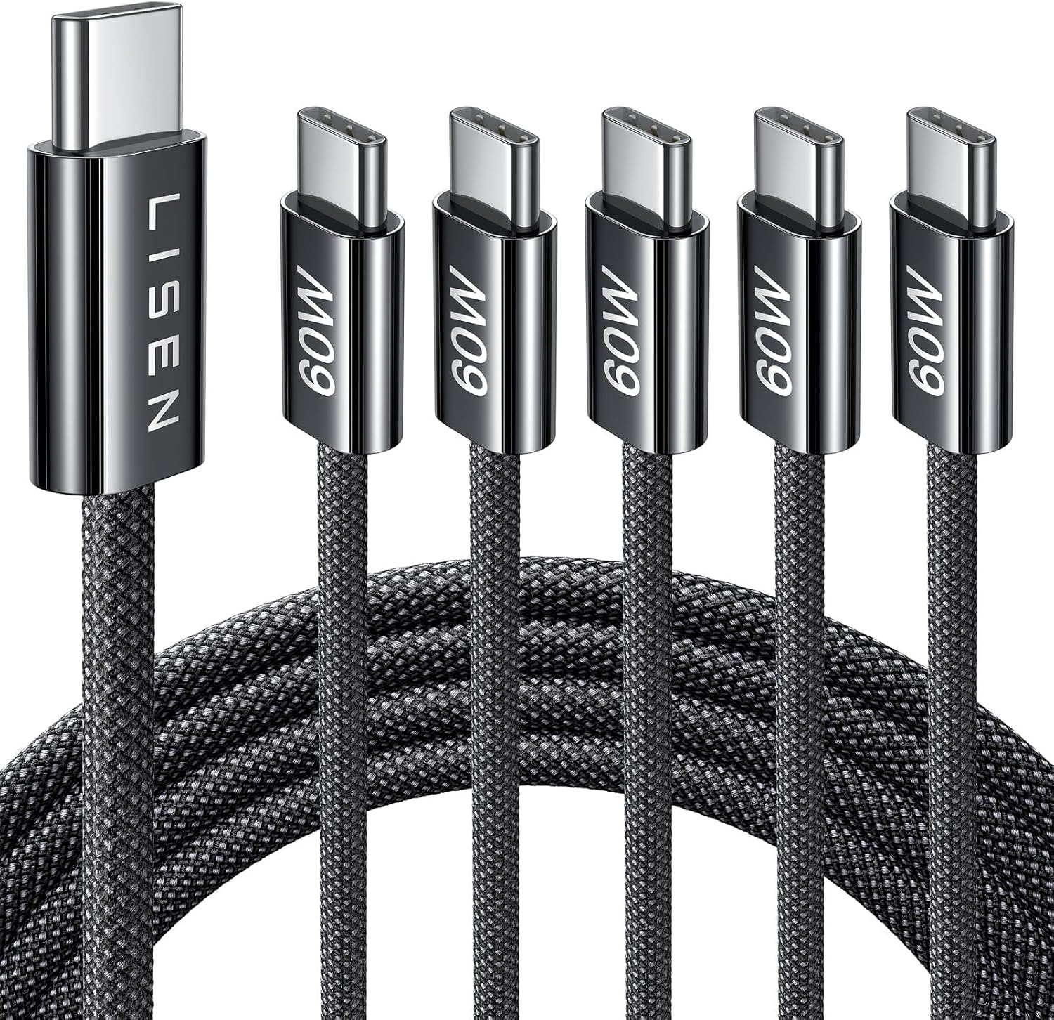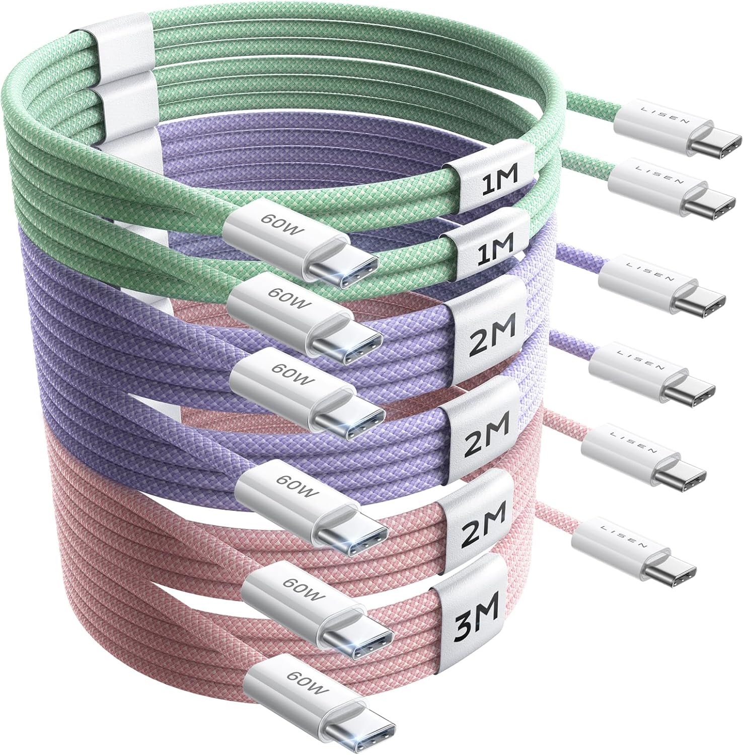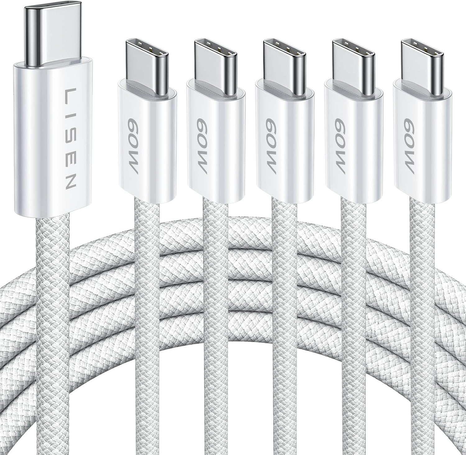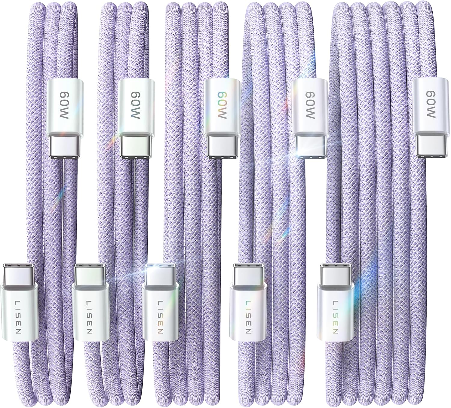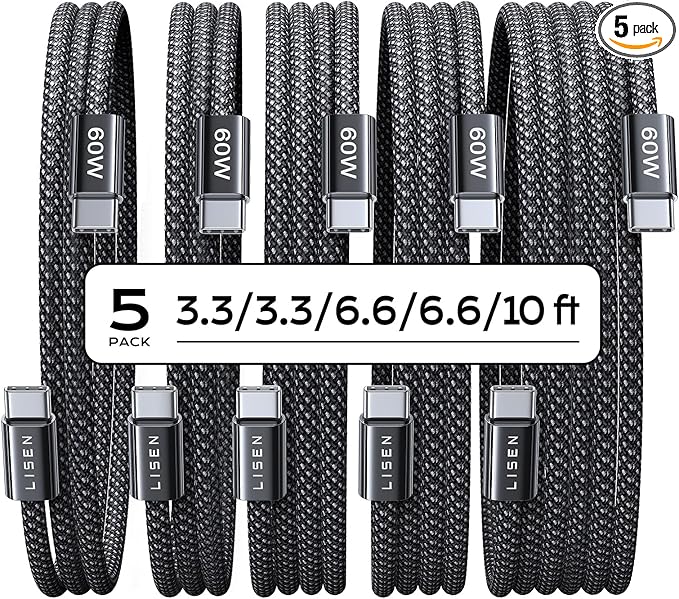 LISEN USB C Cable, 5-Pack [3.3/3.3/6.6/6.6/10FT] for iPhone 17 Charger Cord, 60W USB C to USB C Fast Charging Cable for iPhone 17 Air 16 15 Pro Max, Samsung Z Flip 7/S25/S24, Switch 2, iPad, MacBook