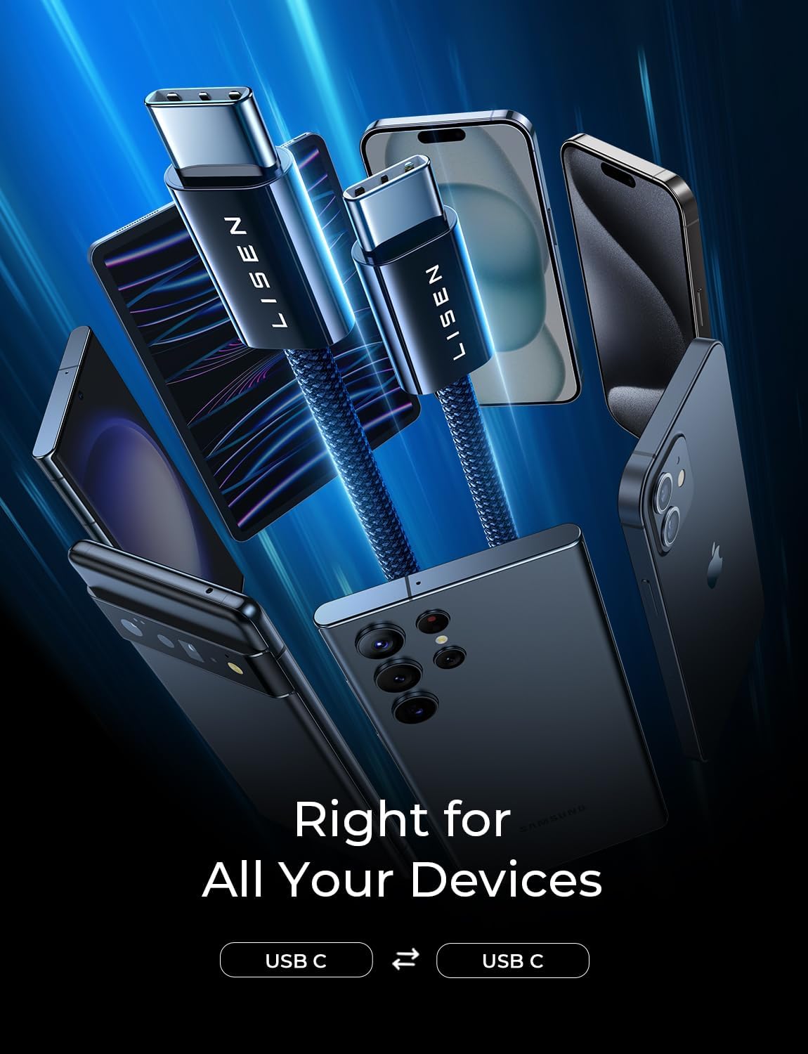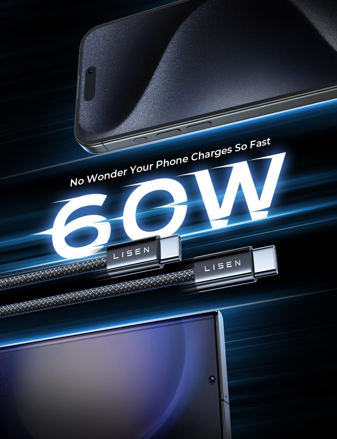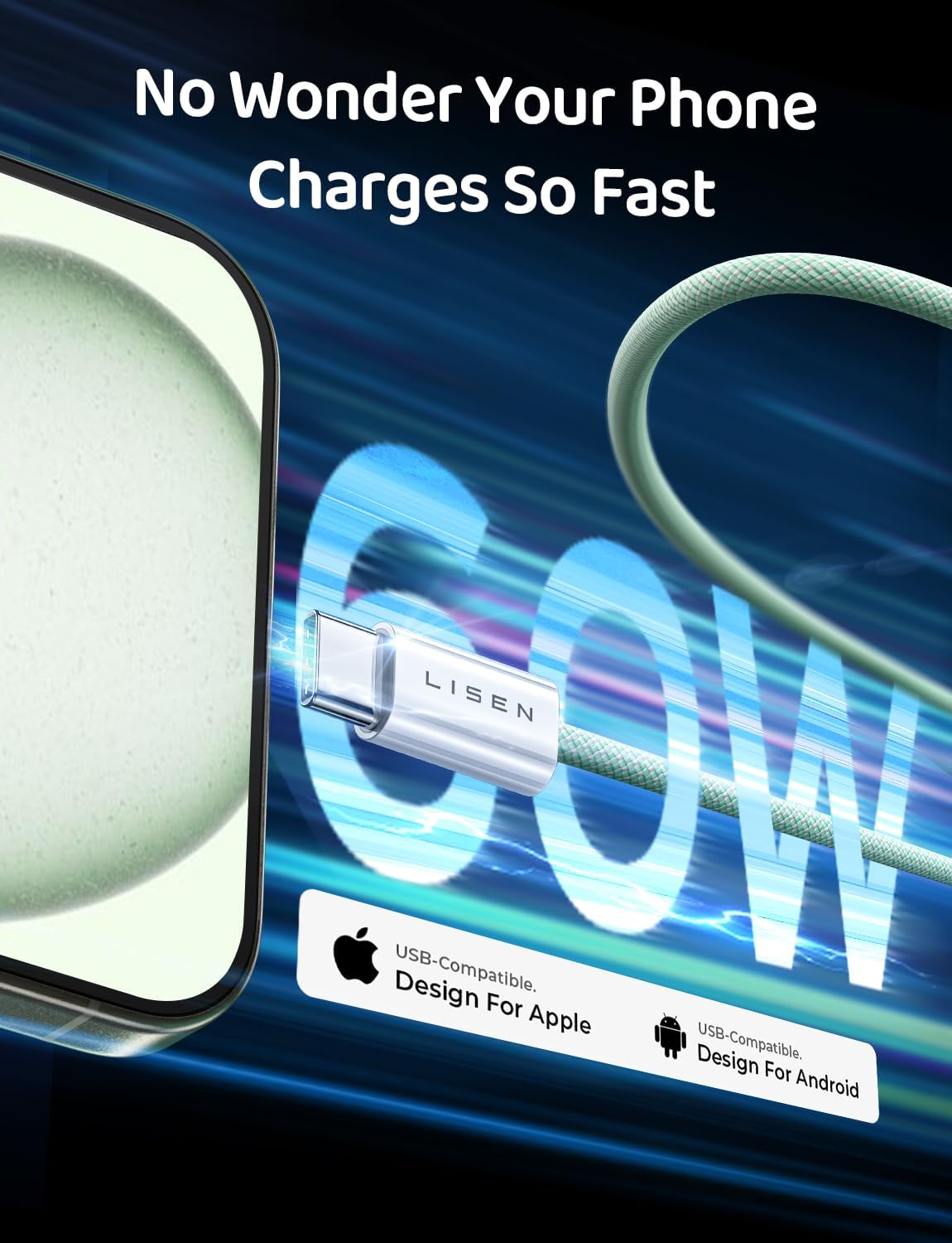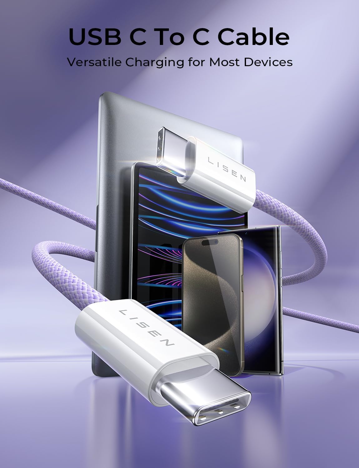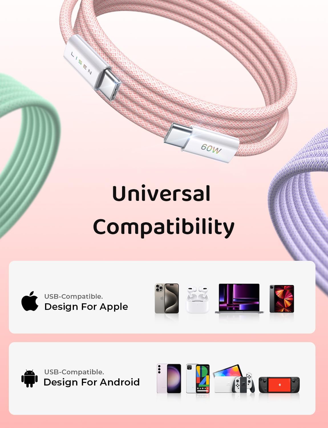 LISEN USB C Cable, 5-Pack [3.3/3.3/6.6/6.6/10FT] for iPhone 17 Charger Cord, 60W USB C to USB C Fast Charging Cable for iPhone 17 Air 16 15 Pro Max, Samsung Z Flip 7/S25/S24, Switch 2, iPad, MacBook