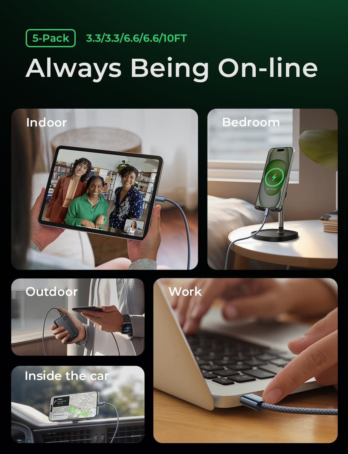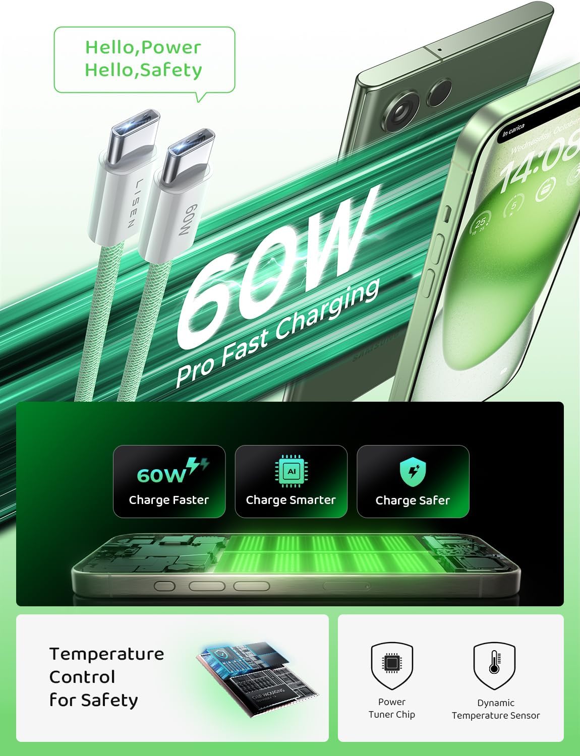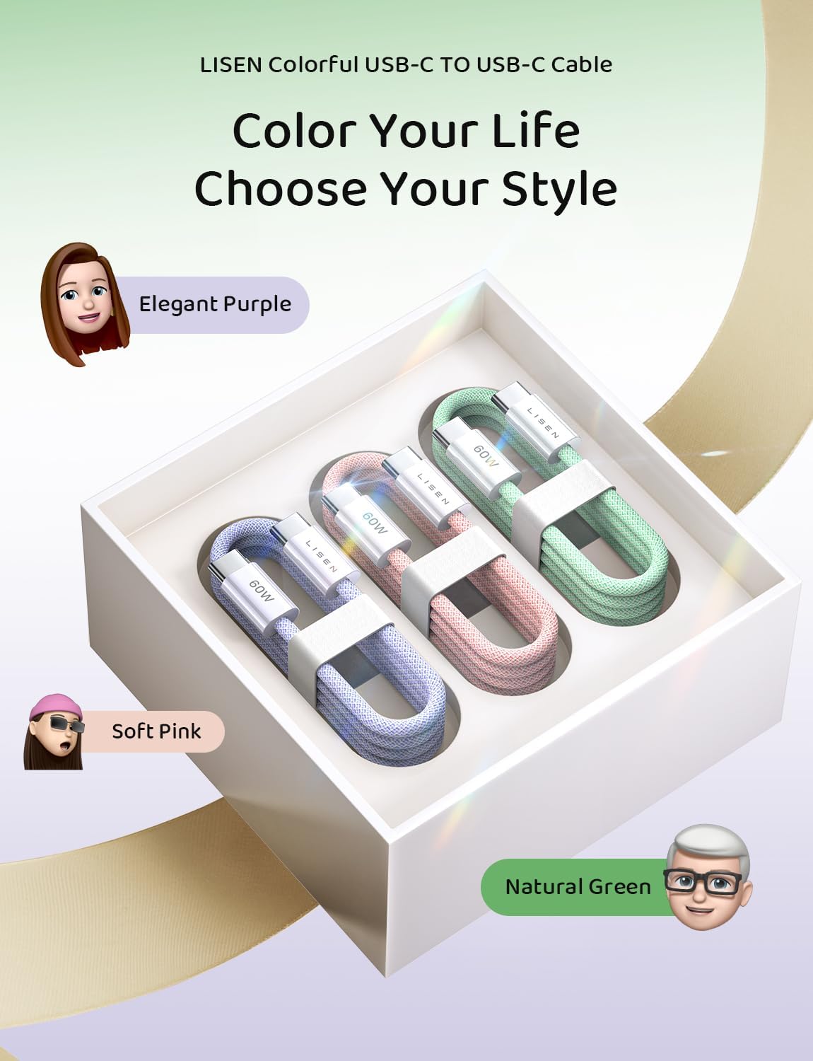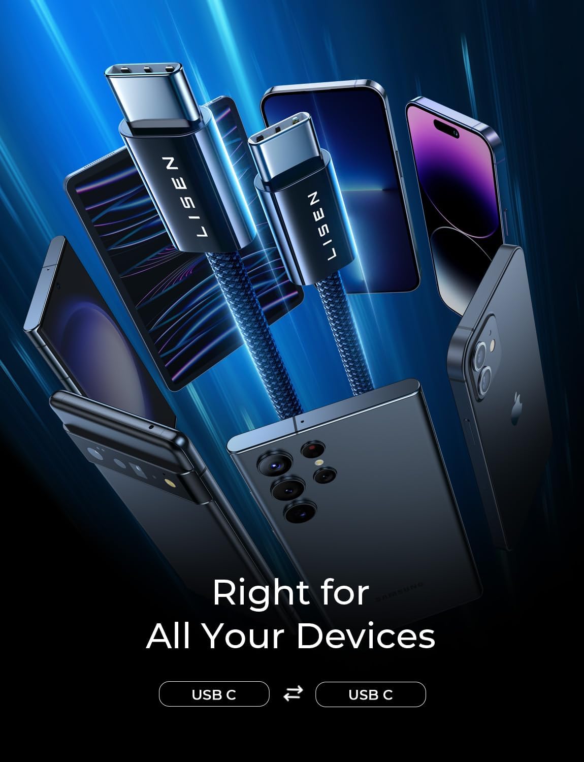 LISEN USB C Cable, 5-Pack [3.3/3.3/6.6/6.6/10FT] for iPhone 17 Charger Cord, 60W USB C to USB C Fast Charging Cable for iPhone 17 Air 16 15 Pro Max, Samsung Z Flip 7/S25/S24, Switch 2, iPad, MacBook