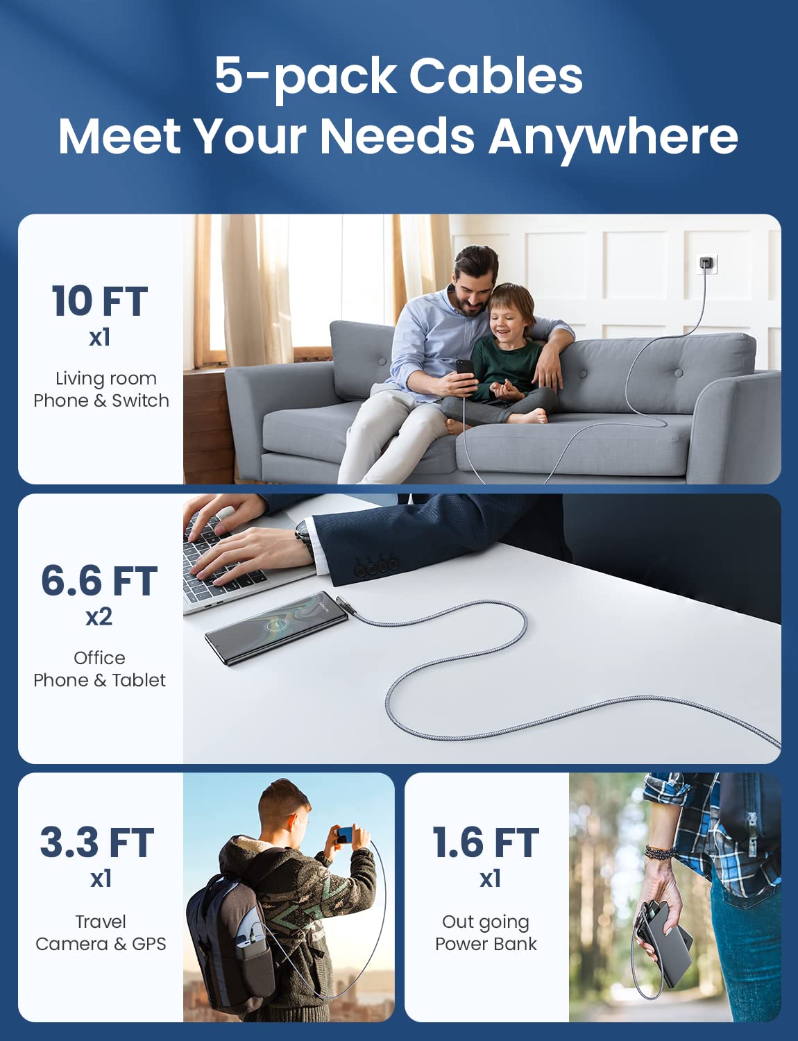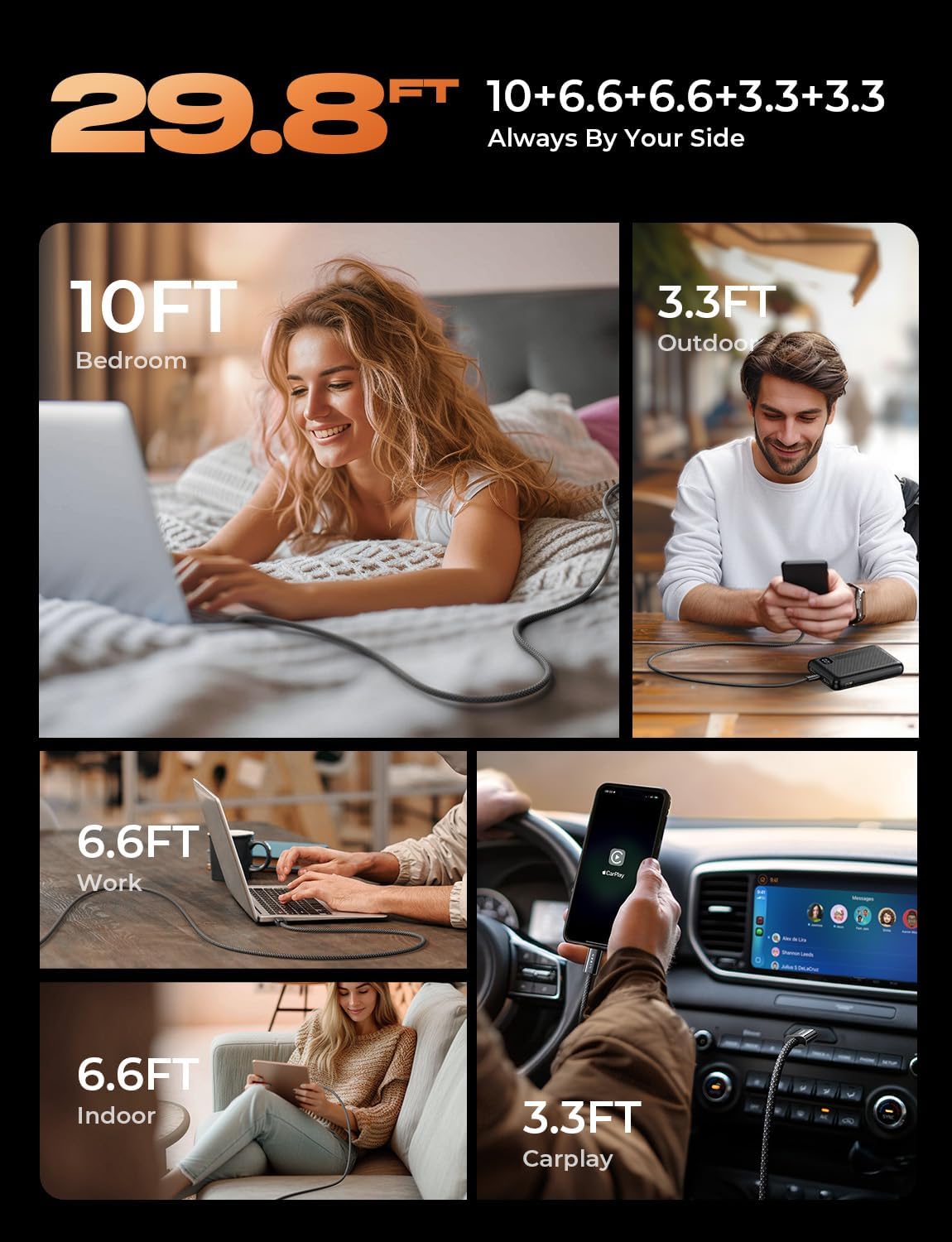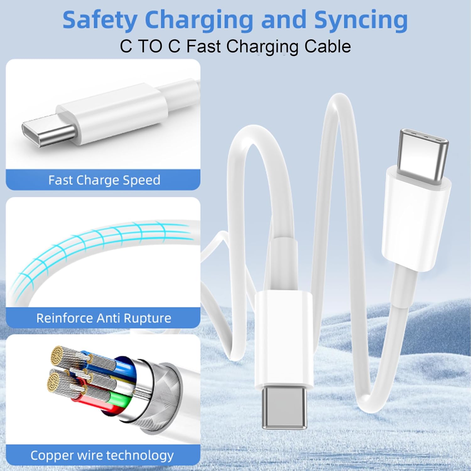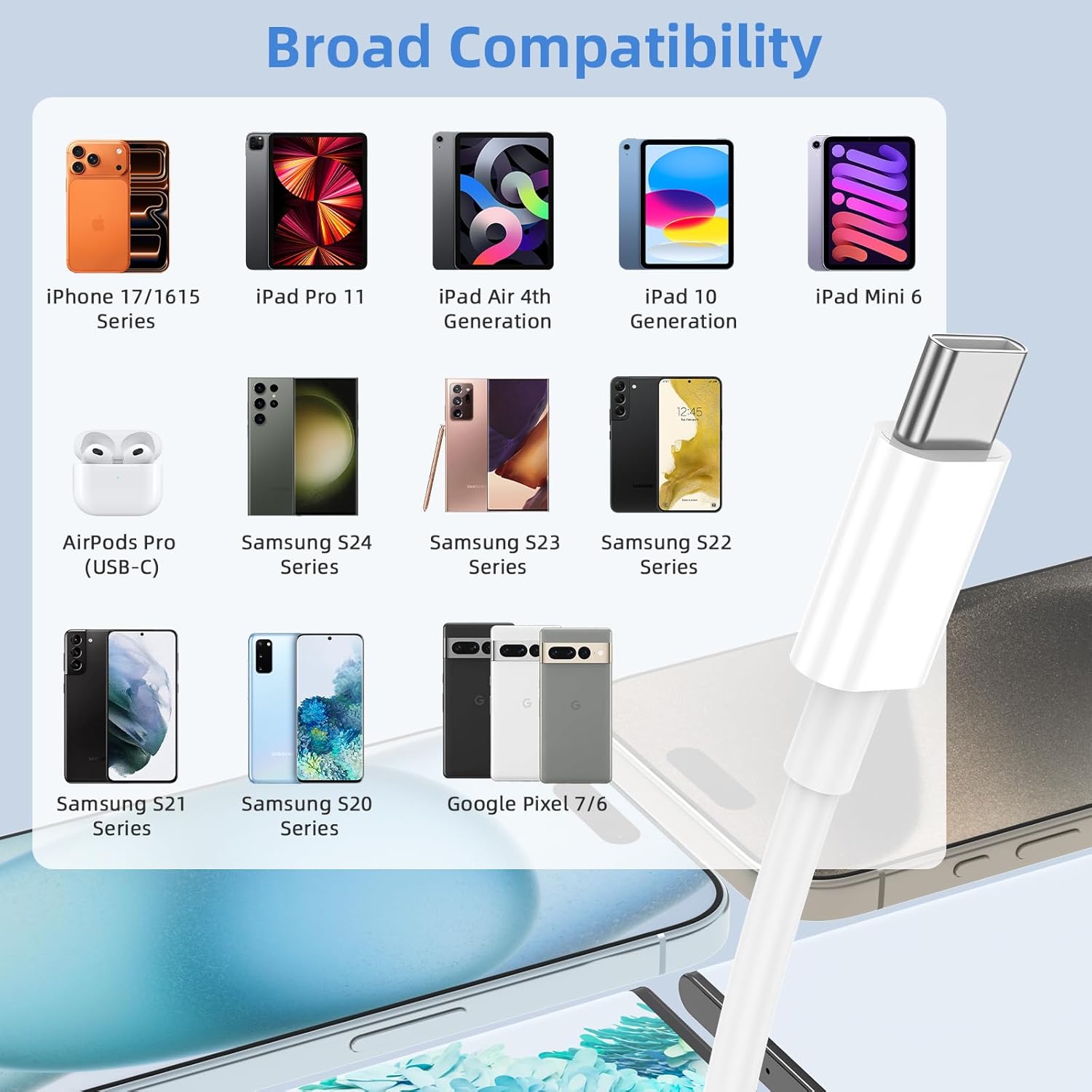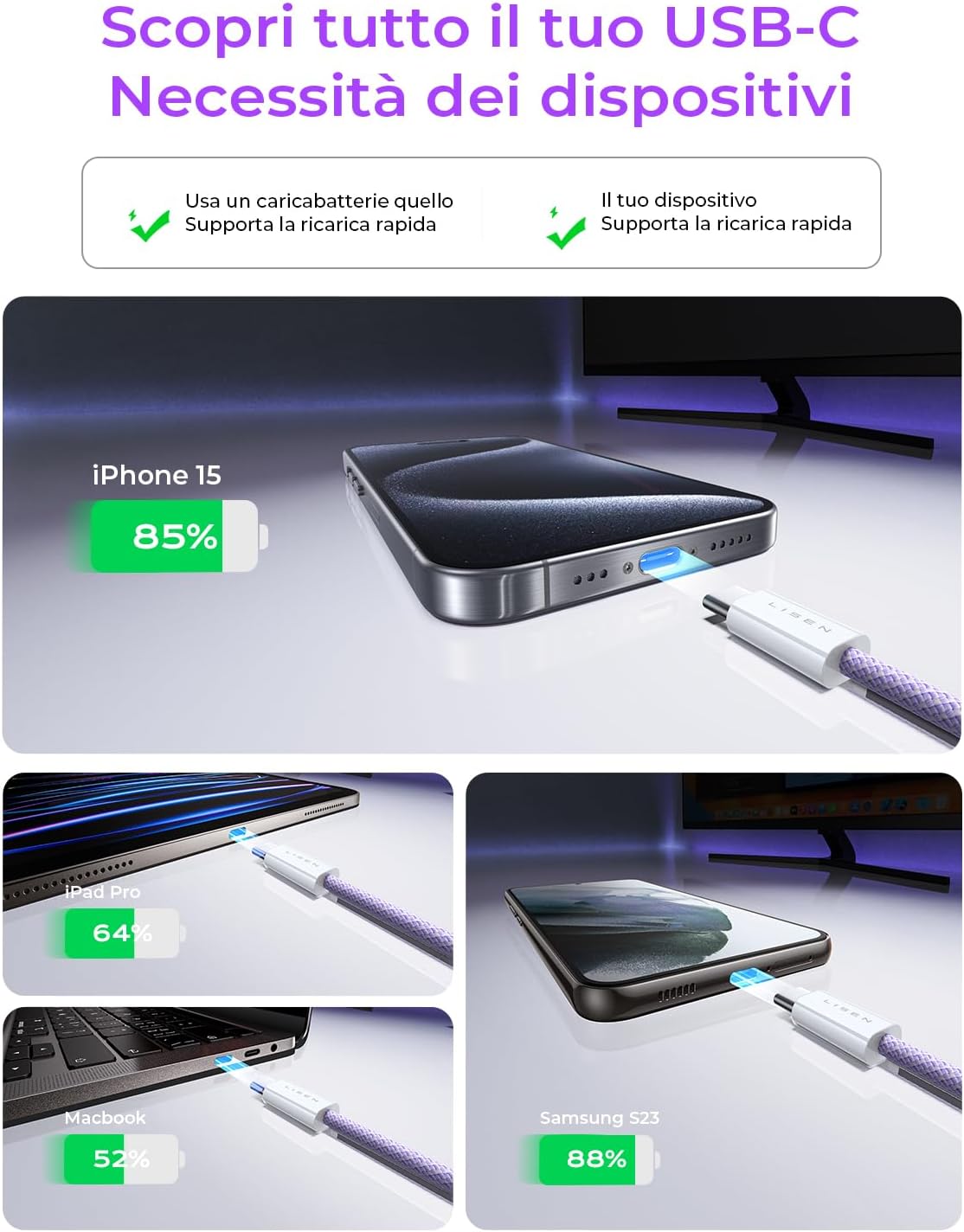 LISEN USB C Cable, 5-Pack [3.3/3.3/6.6/6.6/10FT] for iPhone 17 Charger Cord, 60W USB C to USB C Fast Charging Cable for iPhone 17 Air 16 15 Pro Max, Samsung Z Flip 7/S25/S24, Switch 2, iPad, MacBook