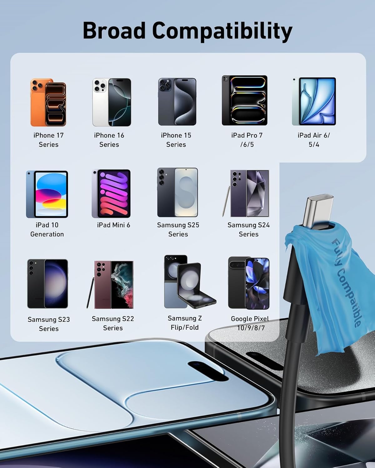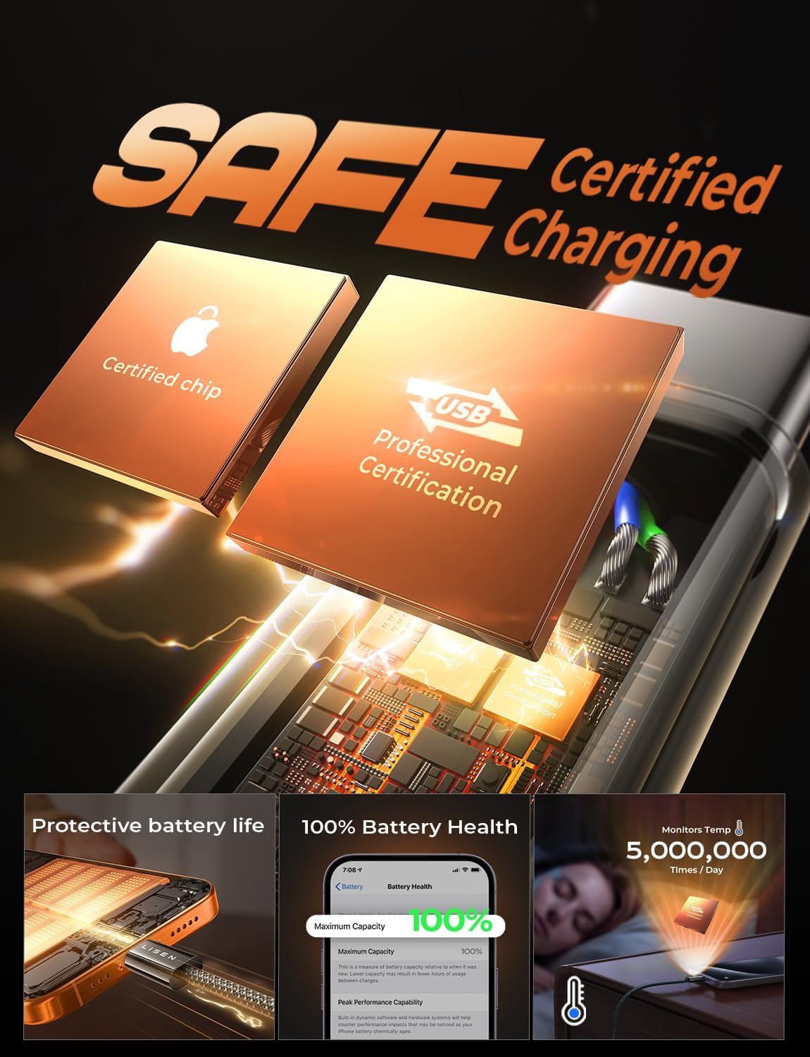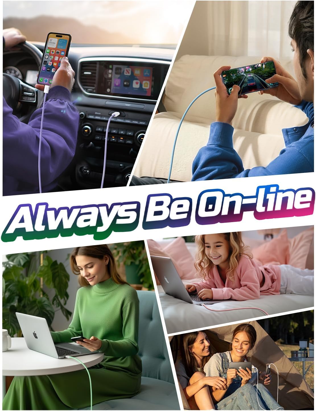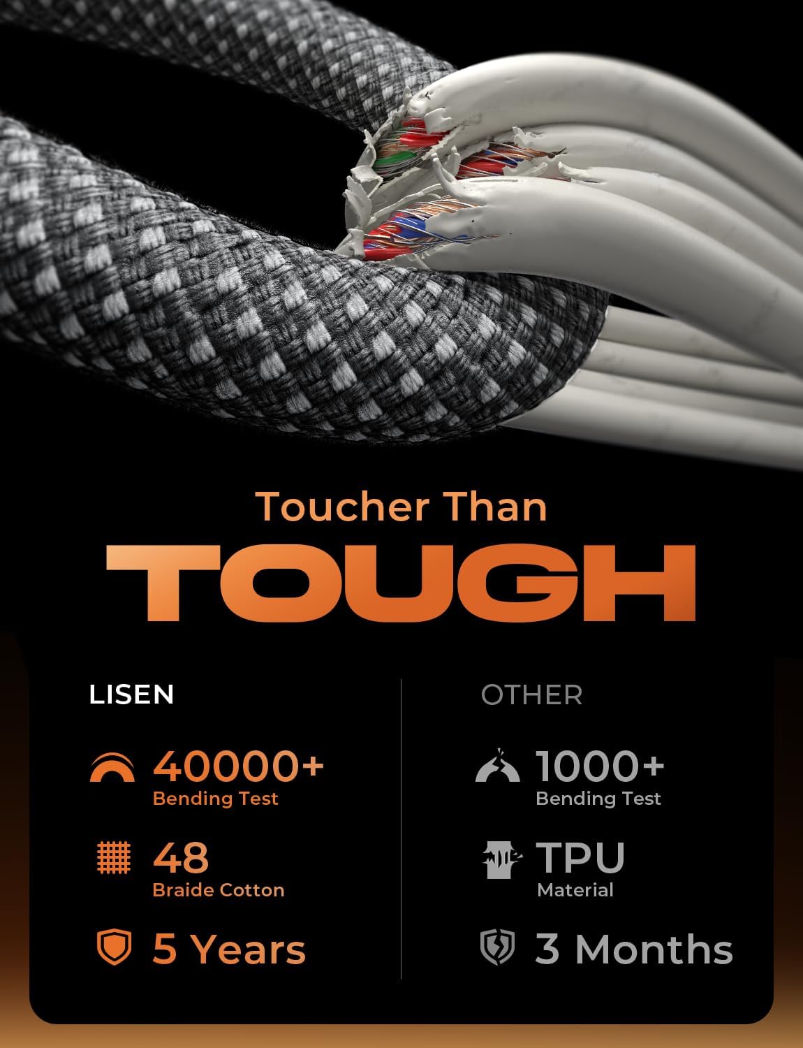 LISEN USB C Cable, 5-Pack [3.3/3.3/6.6/6.6/10FT] for iPhone 17 Charger Cord, 60W USB C to USB C Fast Charging Cable for iPhone 17 Air 16 15 Pro Max, Samsung Z Flip 7/S25/S24, Switch 2, iPad, MacBook