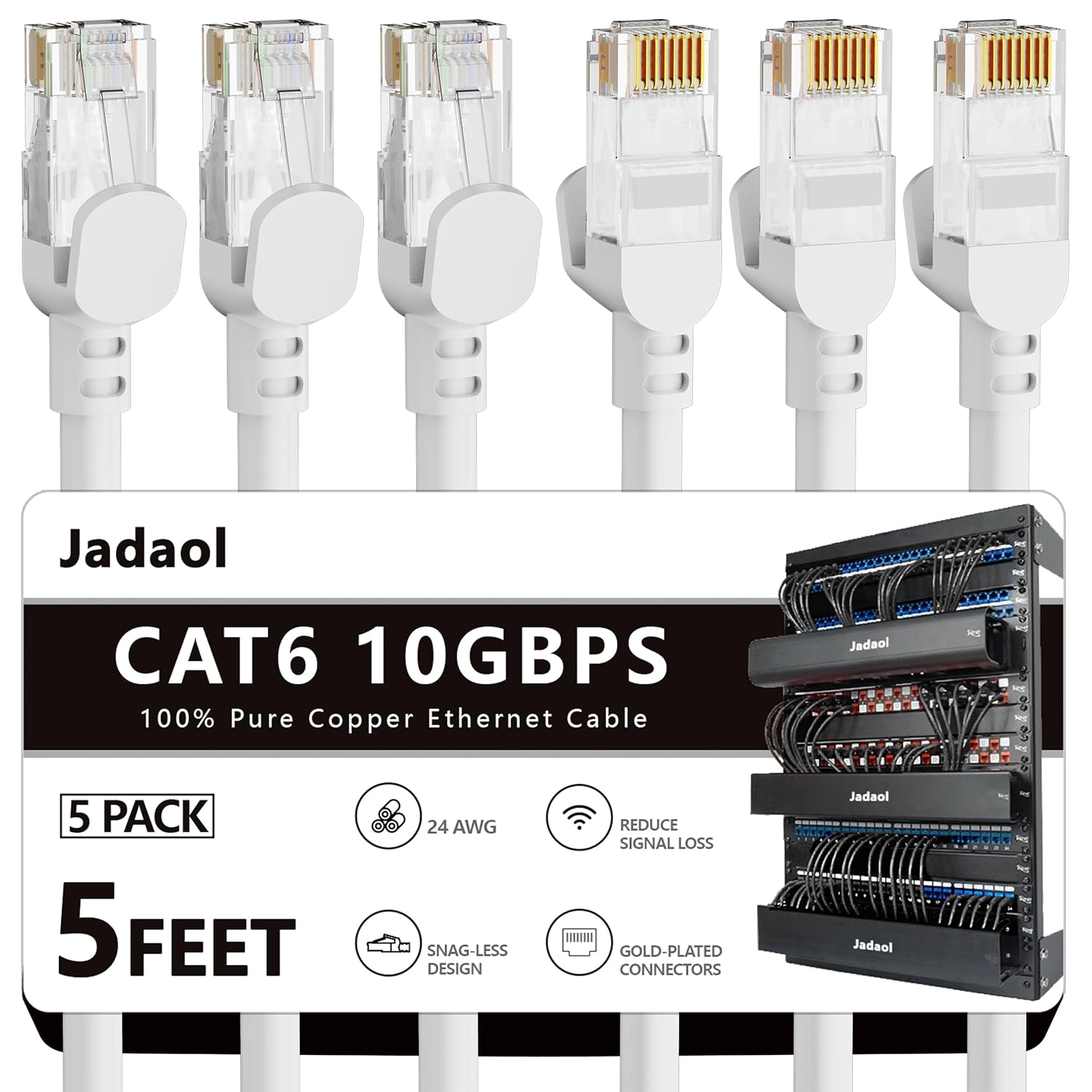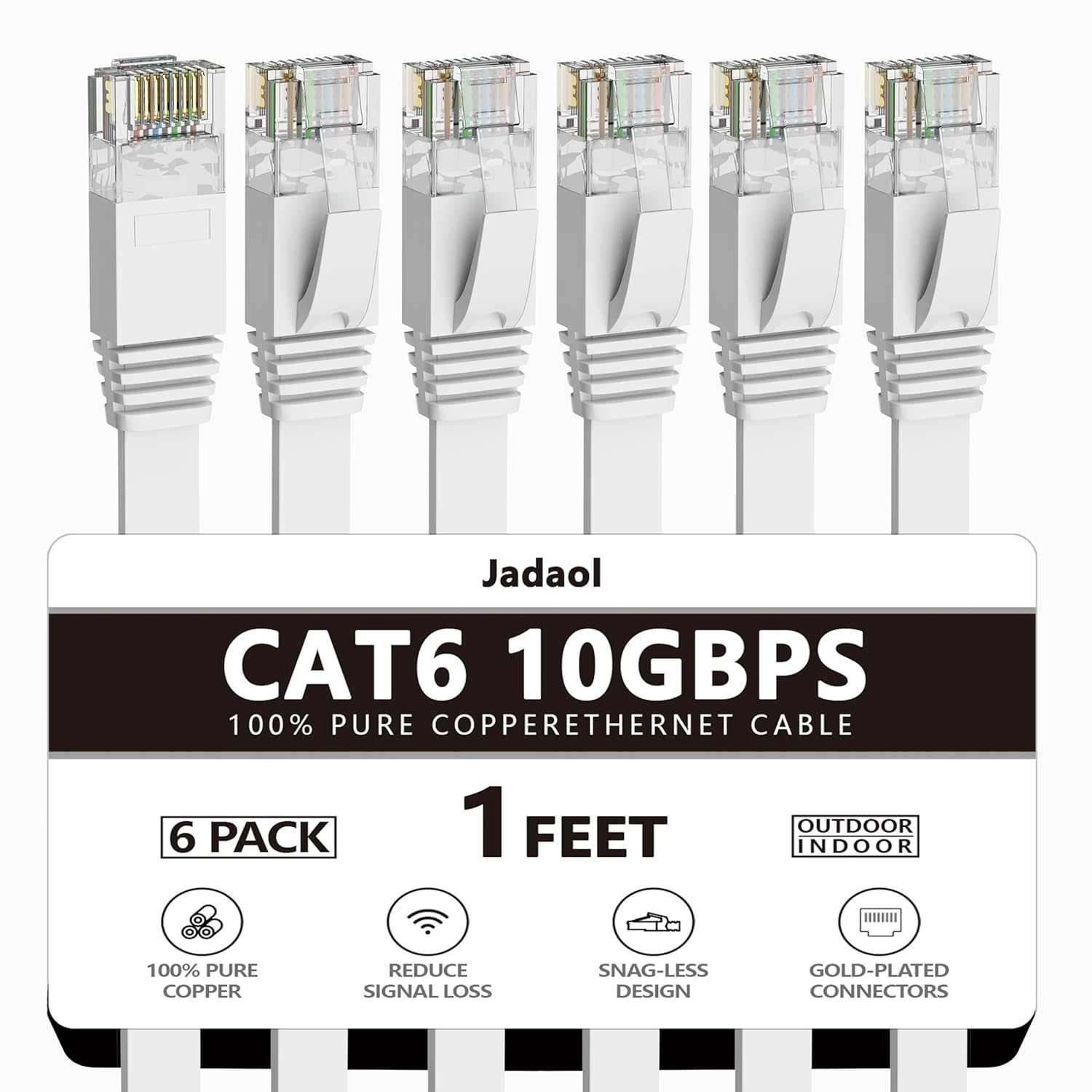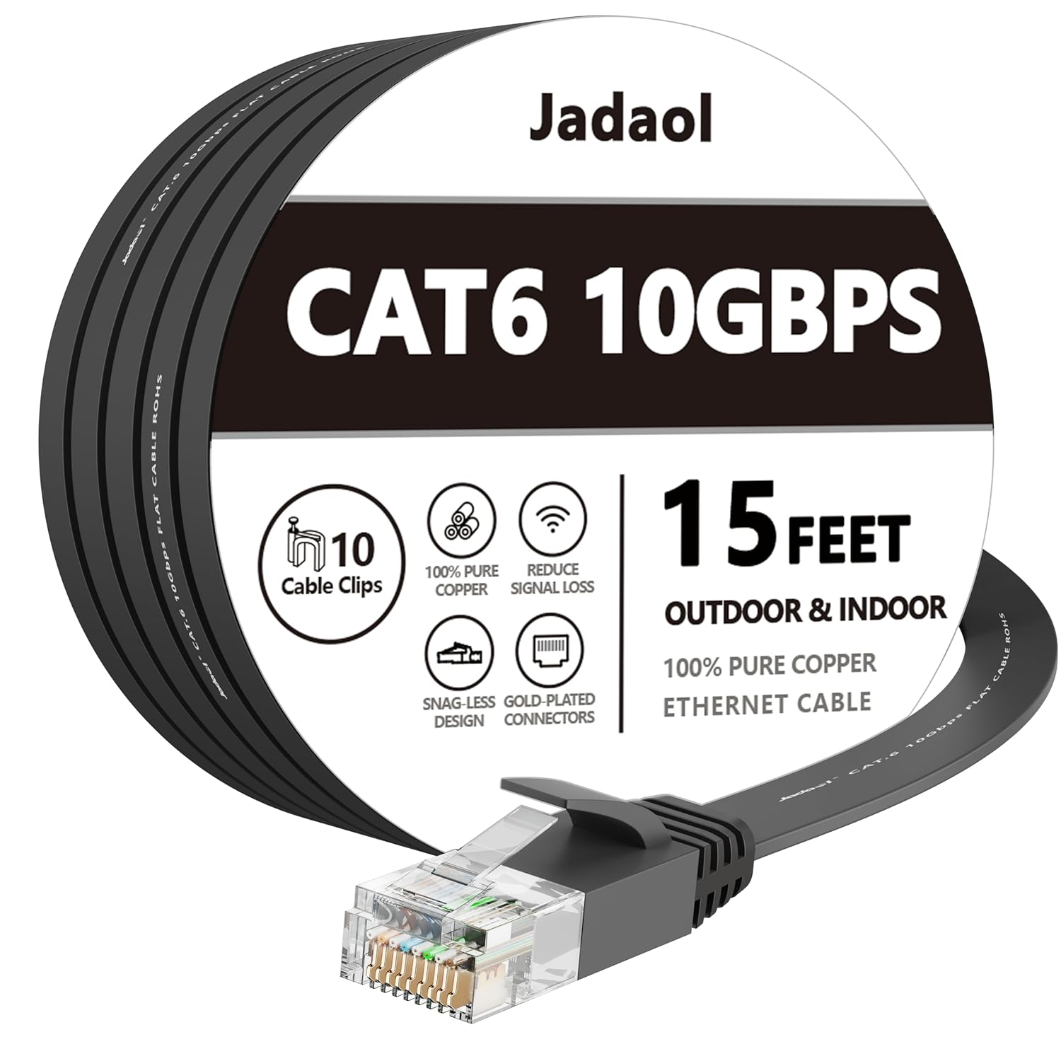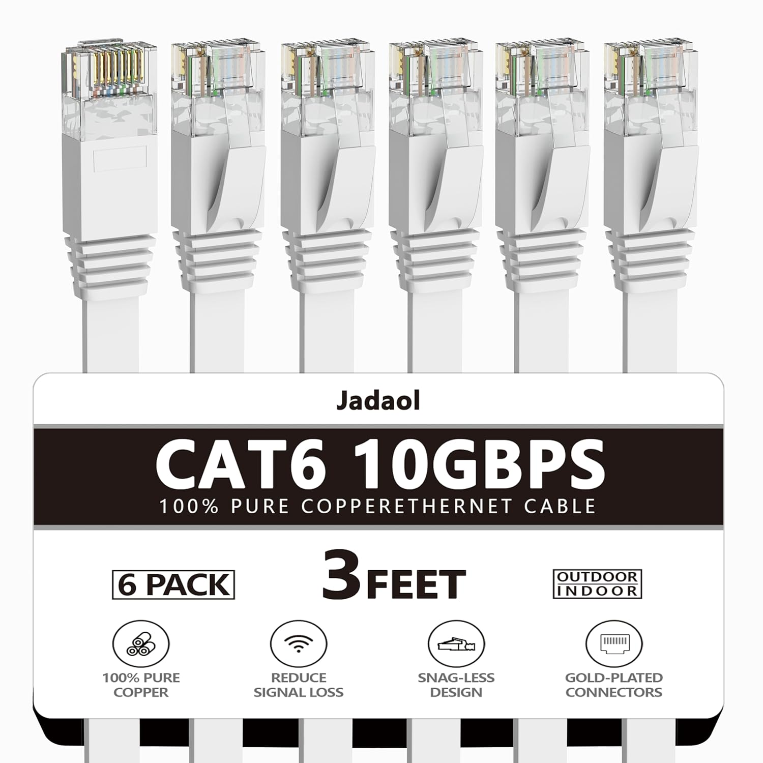 Jadaol Cat 6 Ethernet Cable 50 ft, Outdoor & Indoor 10Gbps Support Cat8 Cat7 Network, Flat RJ45 Internet LAN Computer Patch Cable for Router, Modem, Switch, Gaming Consoles, Streaming Devices, White