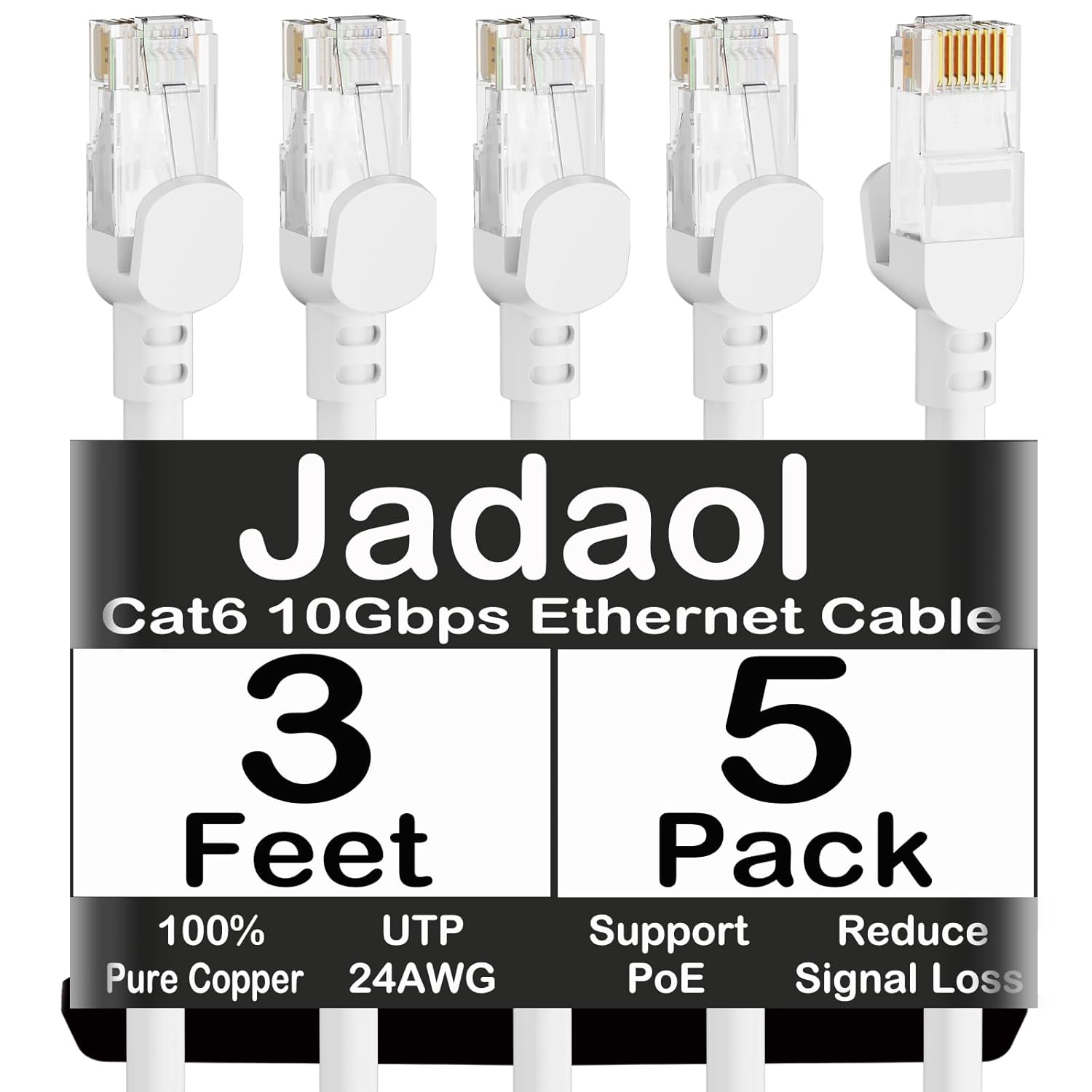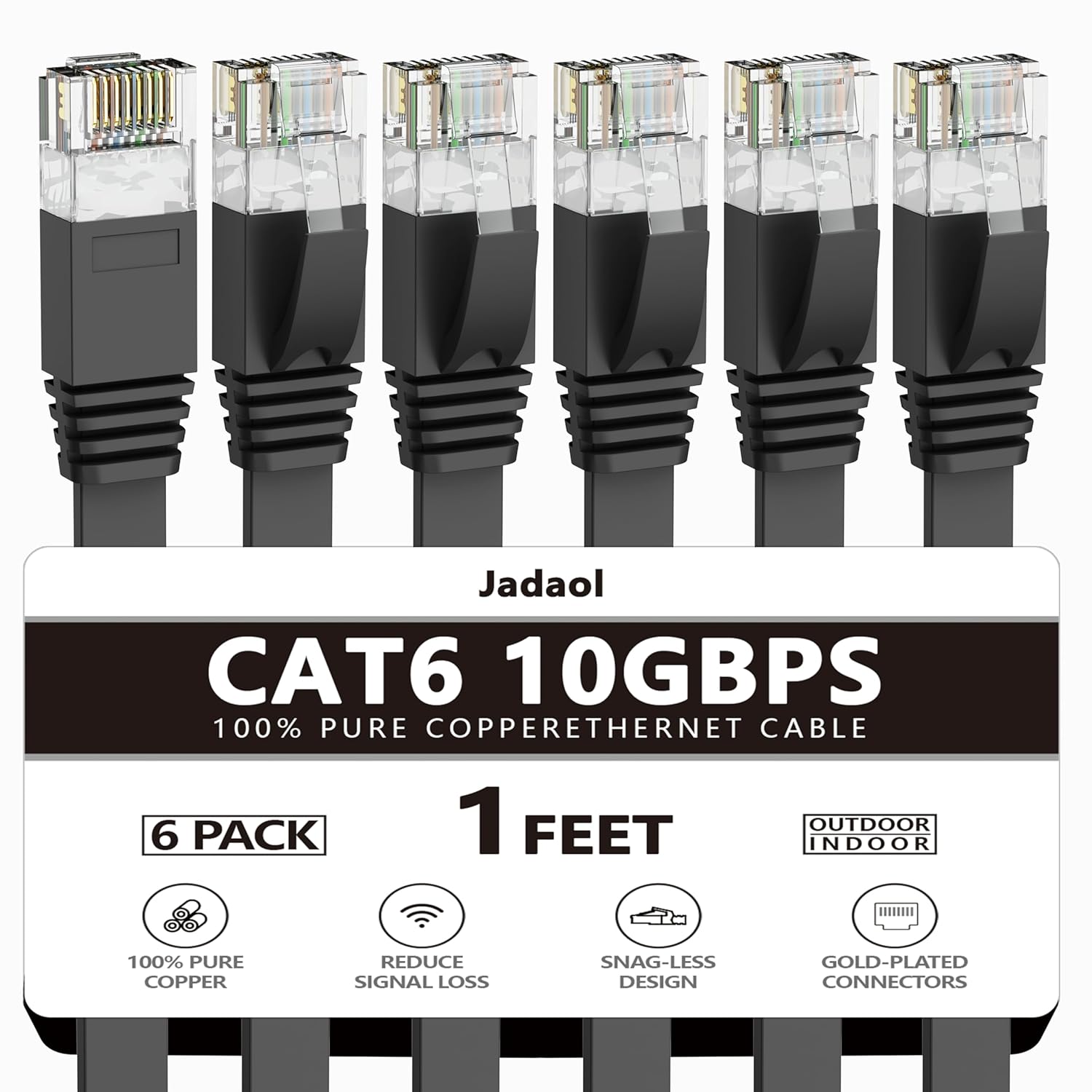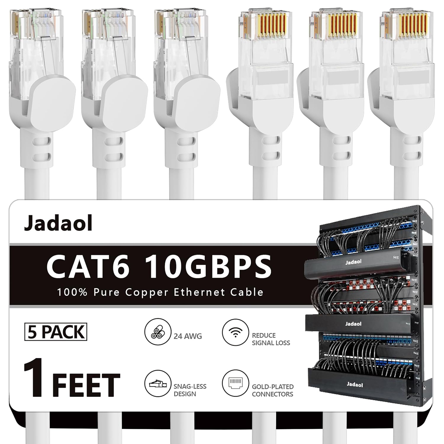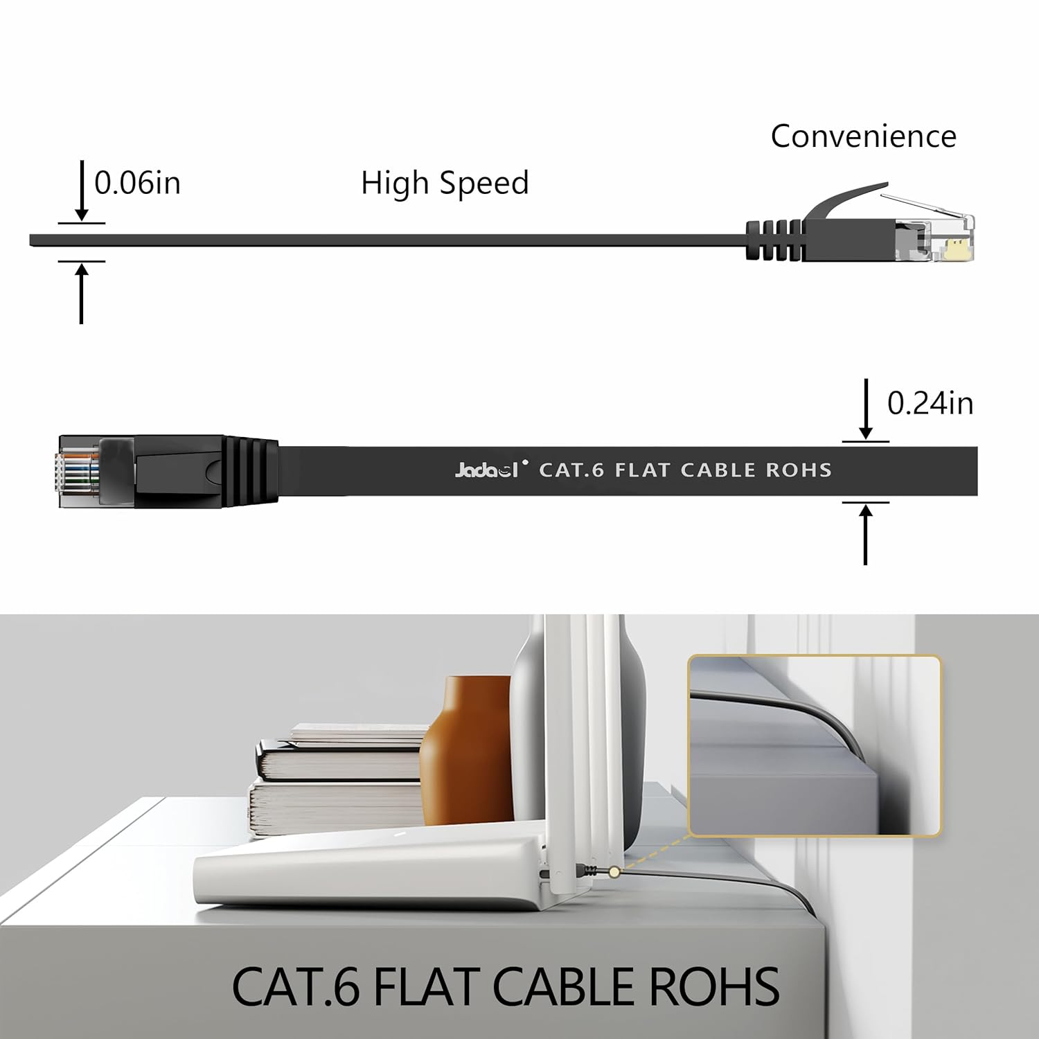 Jadaol Cat 6 Ethernet Cable 50 ft, Outdoor & Indoor 10Gbps Support Cat8 Cat7 Network, Flat RJ45 Internet LAN Computer Patch Cable for Router, Modem, Switch, Gaming Consoles, Streaming Devices, White
