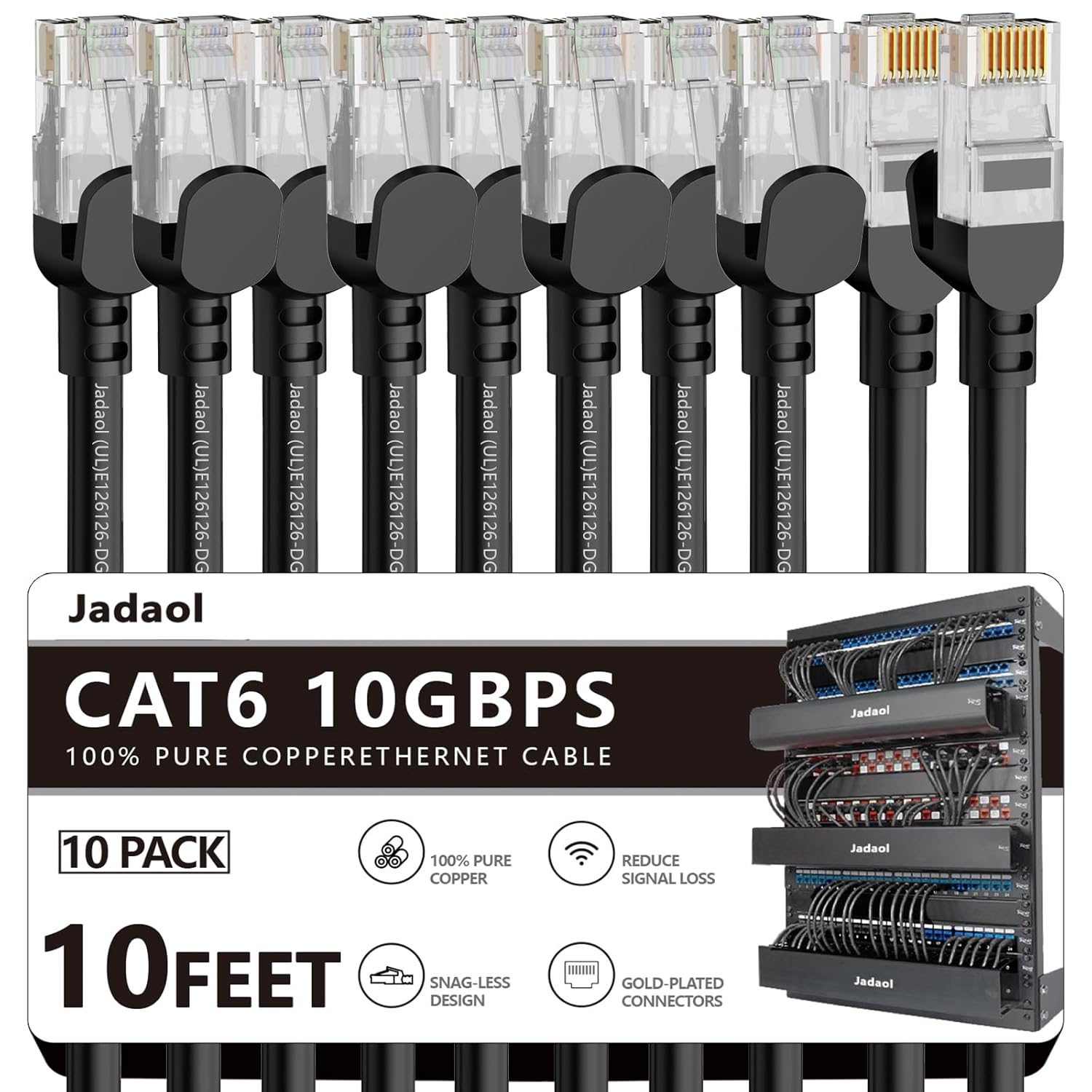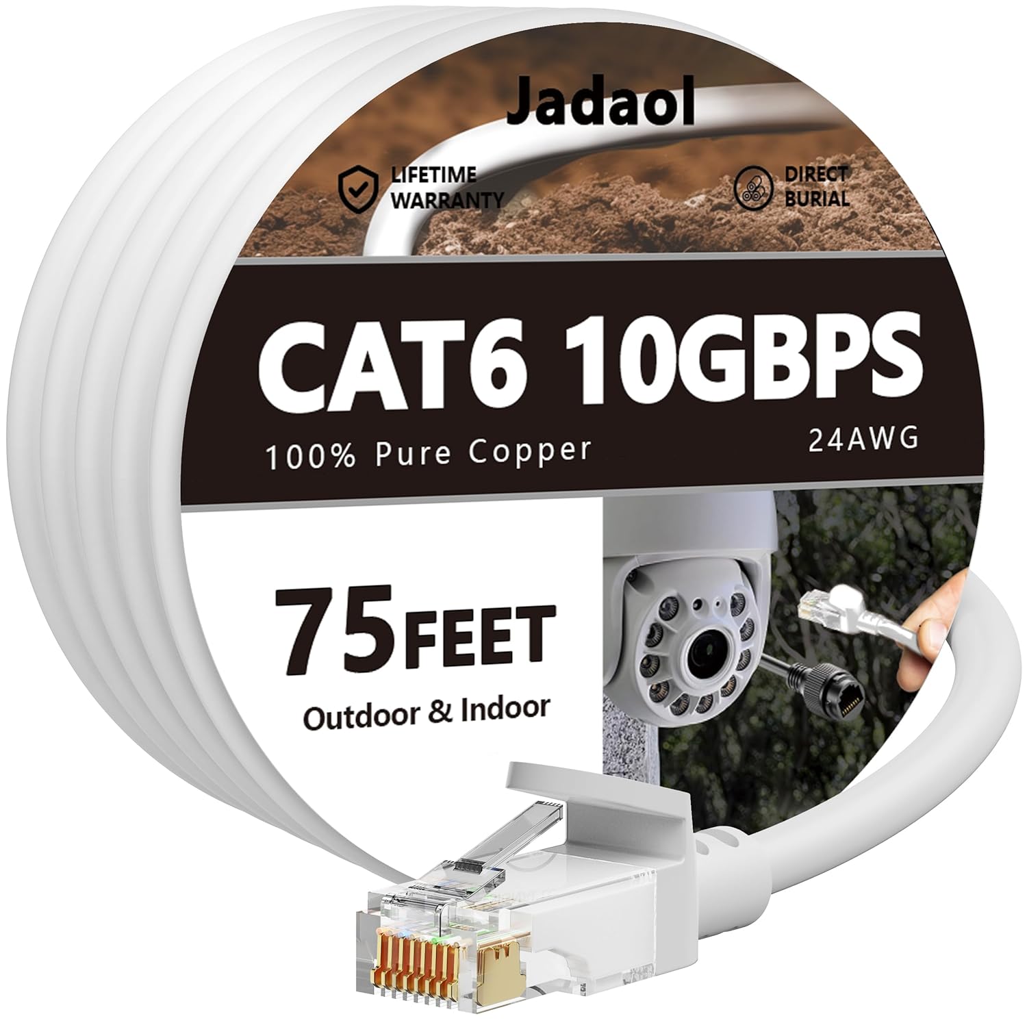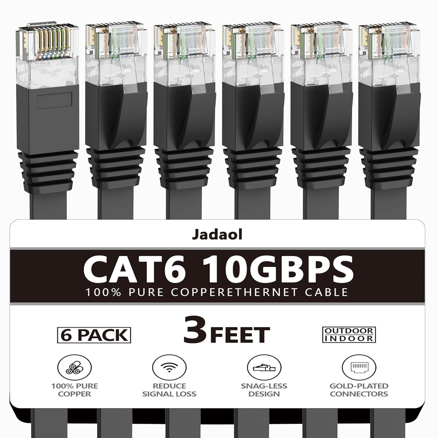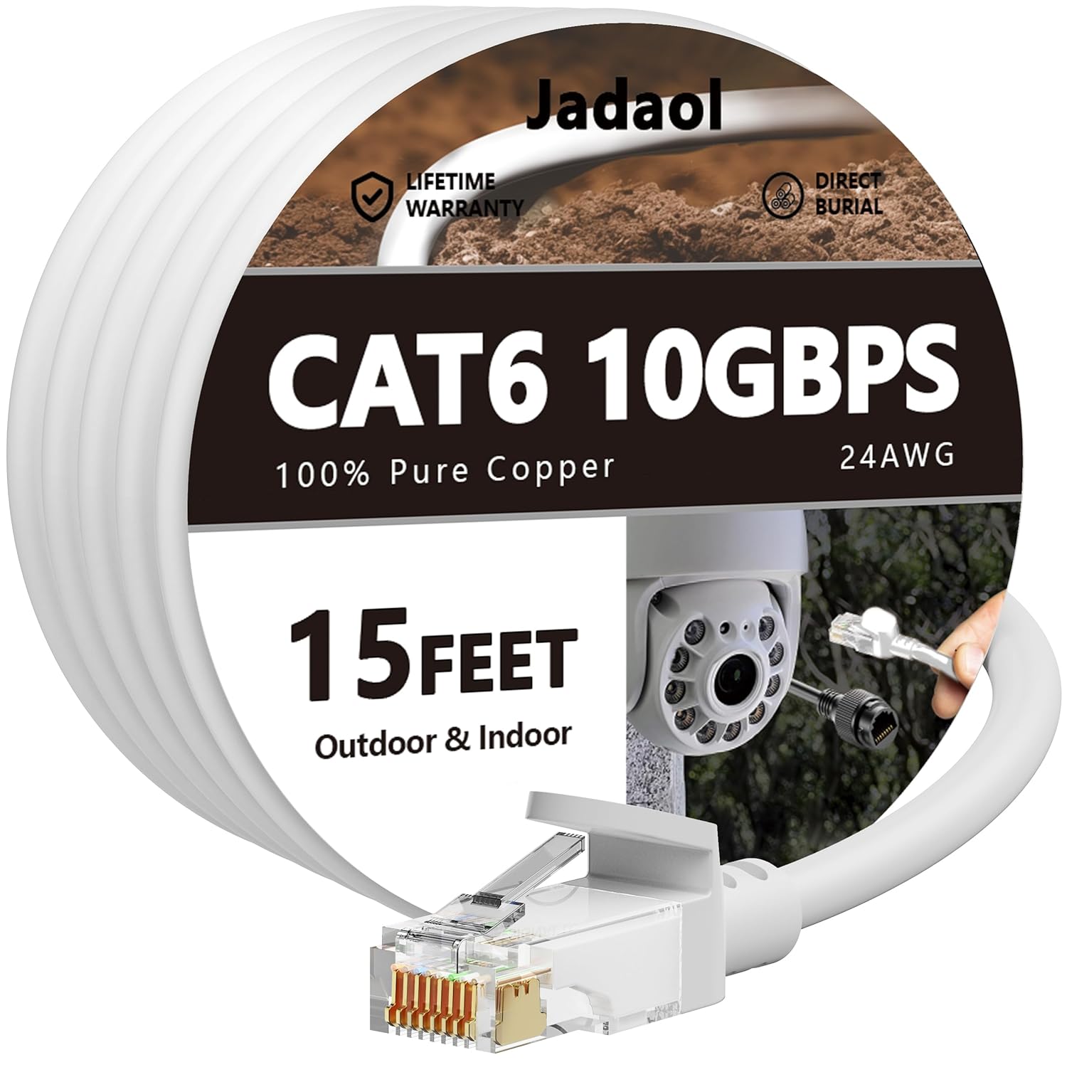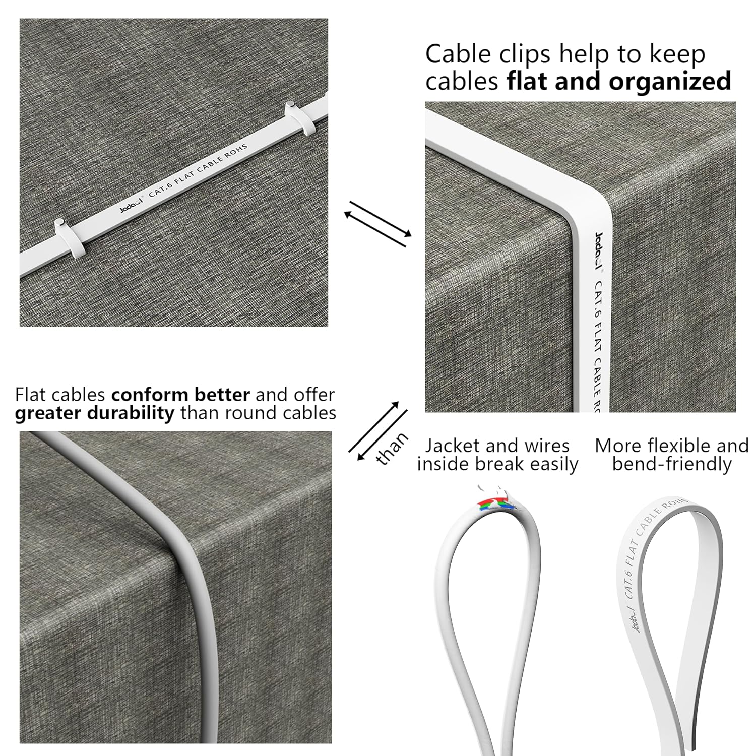 Jadaol Cat 6 Ethernet Cable 50 ft, Outdoor & Indoor 10Gbps Support Cat8 Cat7 Network, Flat RJ45 Internet LAN Computer Patch Cable for Router, Modem, Switch, Gaming Consoles, Streaming Devices, White