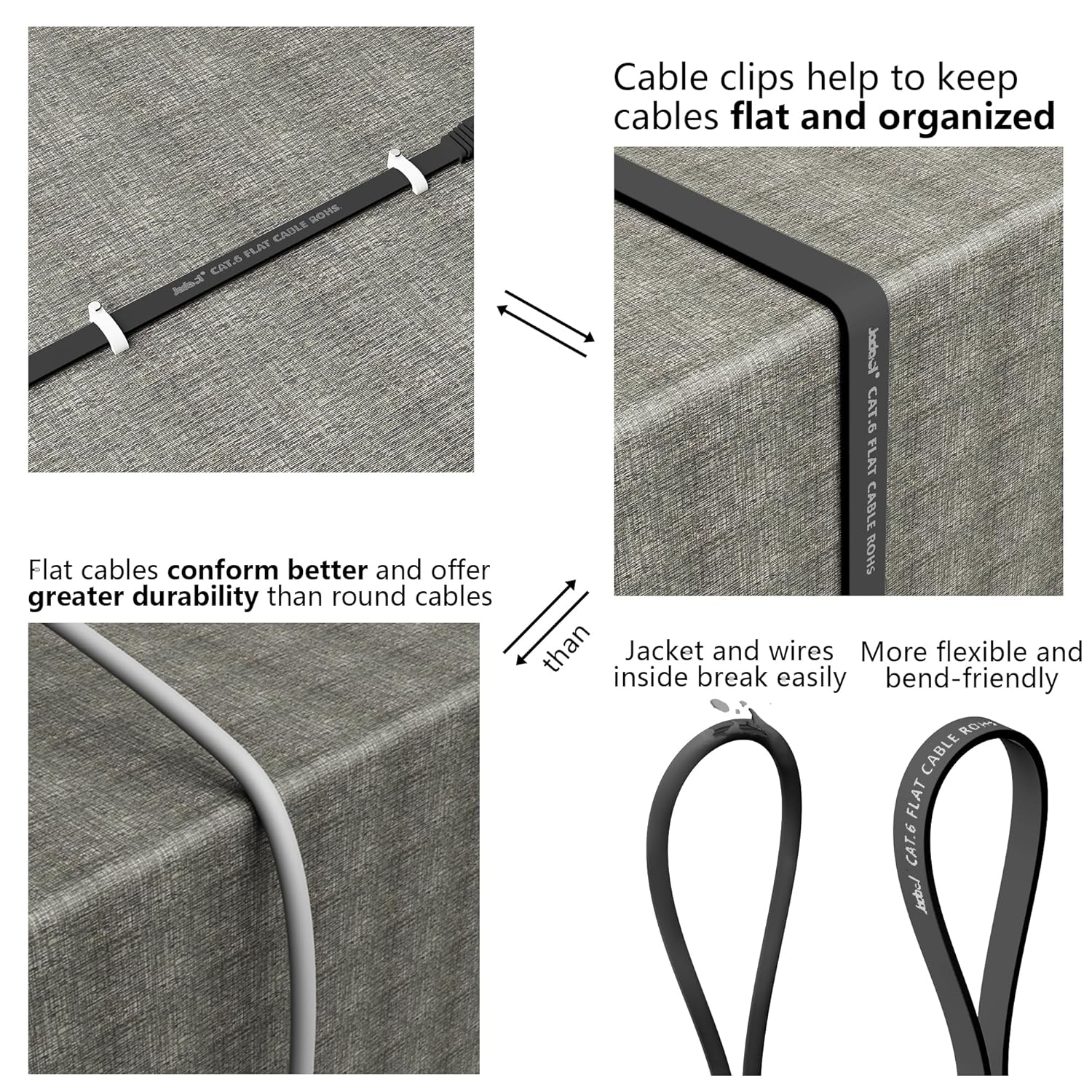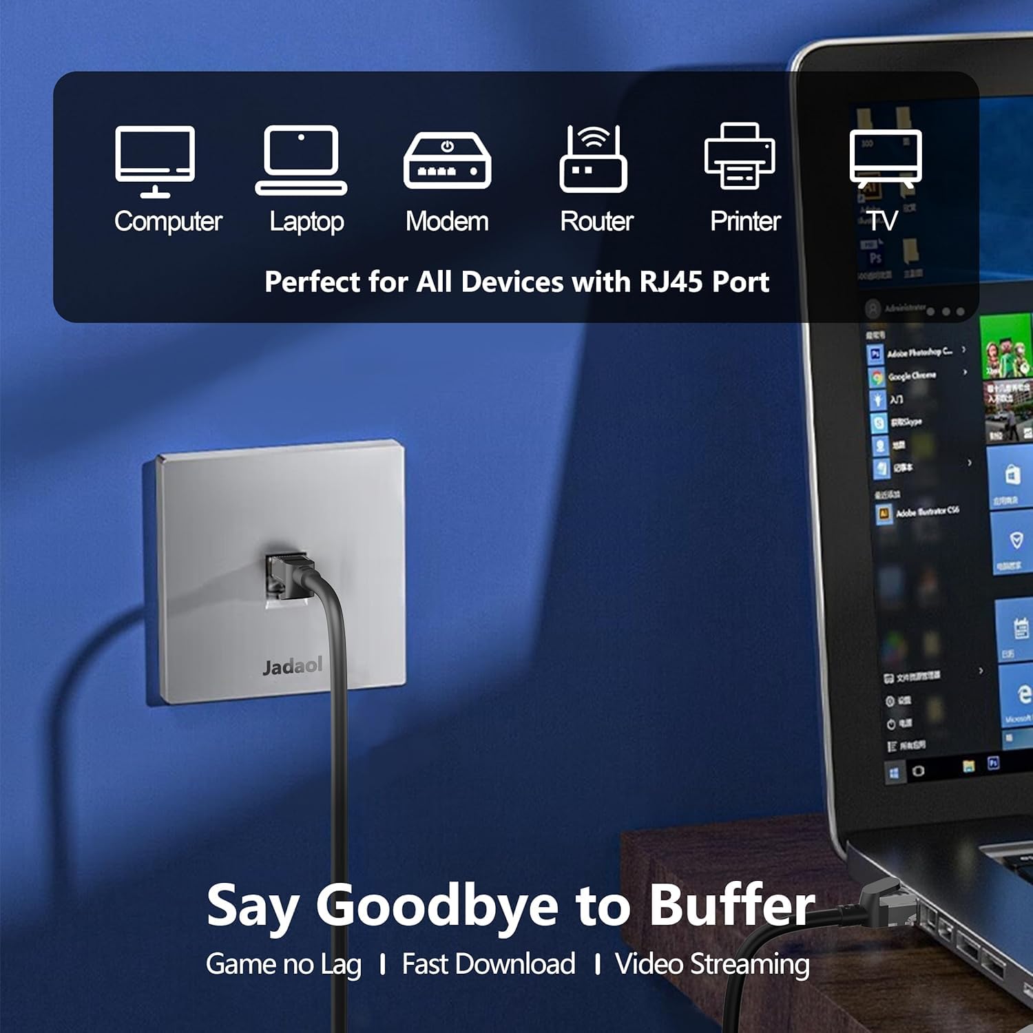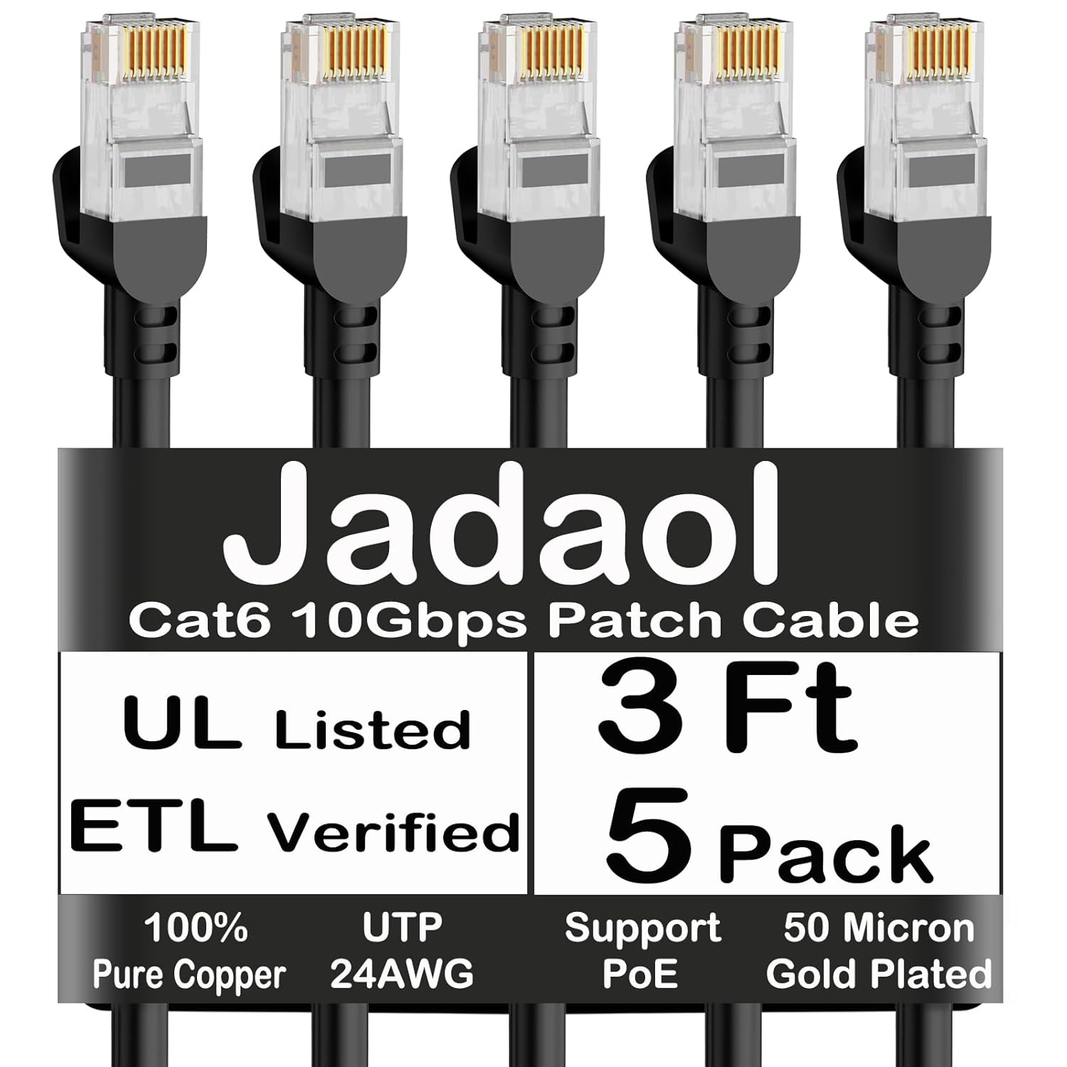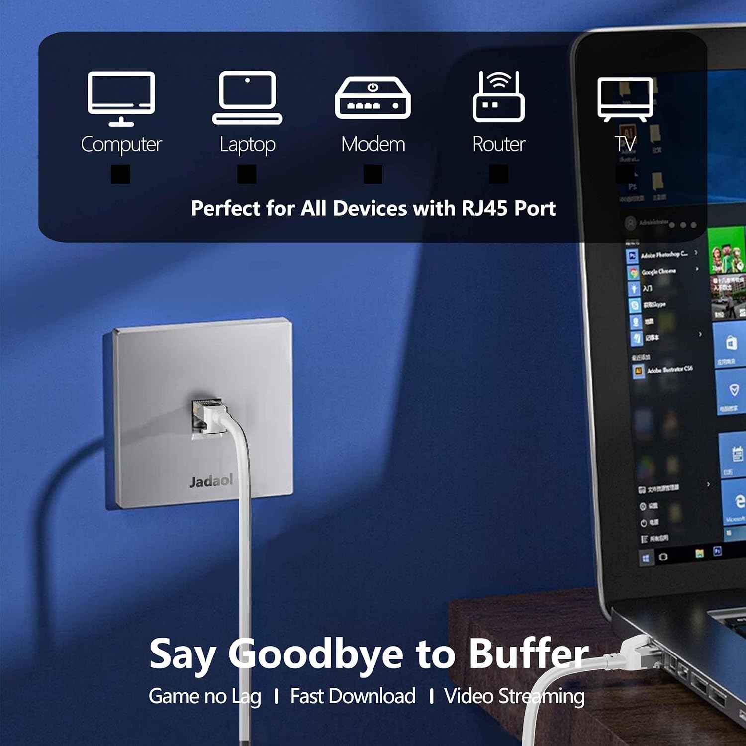 Jadaol Cat 6 Ethernet Cable 50 ft, Outdoor & Indoor 10Gbps Support Cat8 Cat7 Network, Flat RJ45 Internet LAN Computer Patch Cable for Router, Modem, Switch, Gaming Consoles, Streaming Devices, White