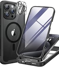 Miracase 磁性适用于 iPhone 16 Pro 手机壳全身手机,内置玻璃屏幕保护膜,[兼容 MagSafe] 军用防摔 16 Pro 保护套保险杠 6.3 英寸,黑色