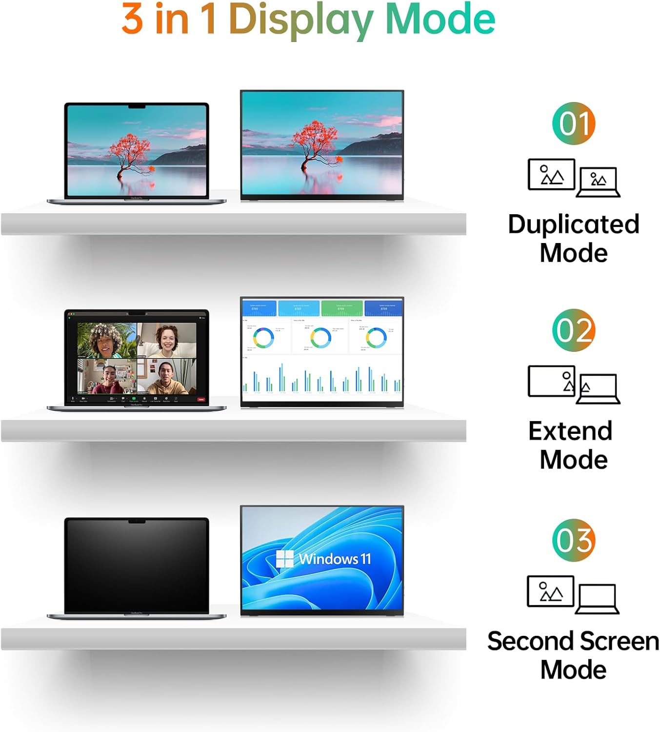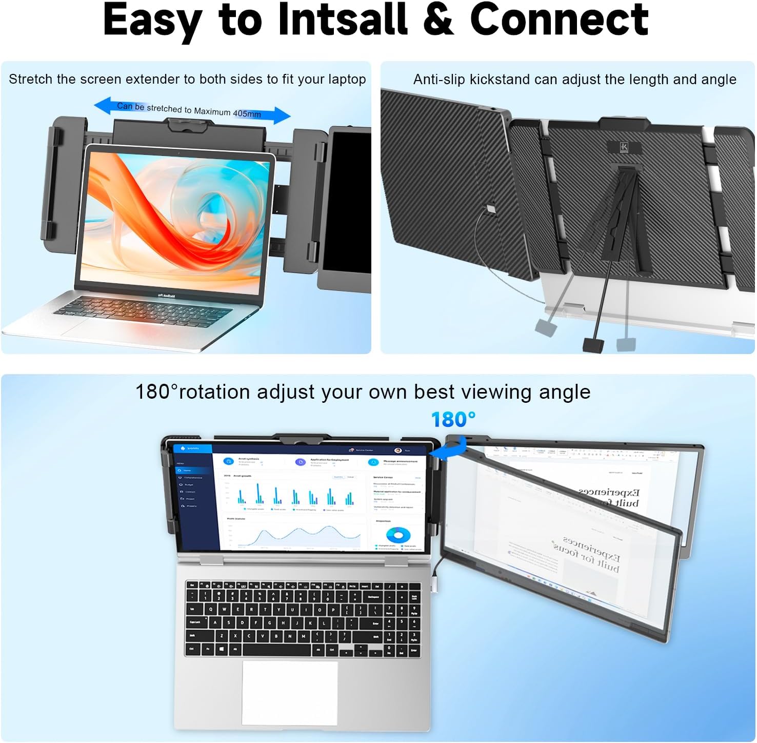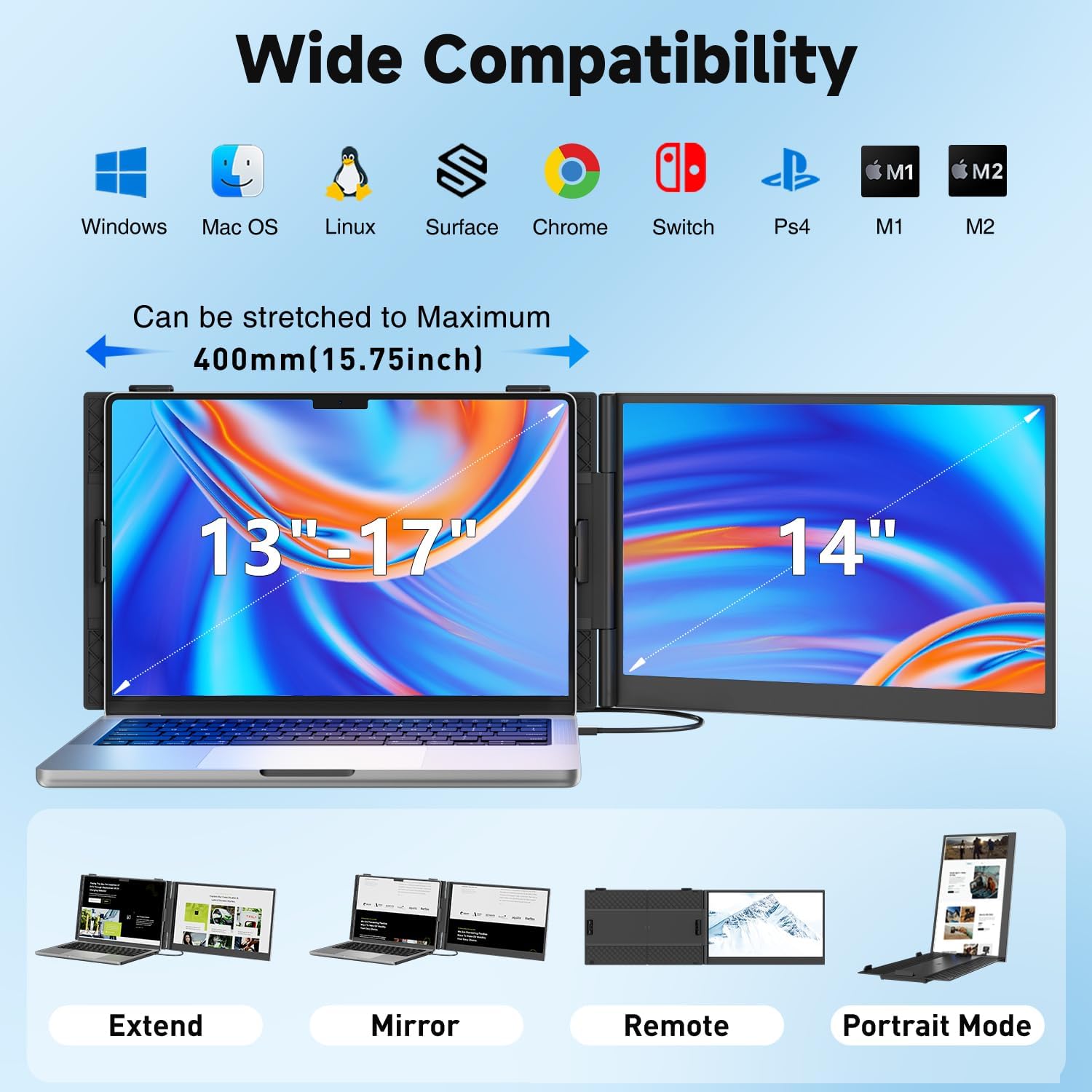 KEFEYA Laptop Screen Extender, 14" FHD 1080P IPS Laptop Monitor Extender Dual Screen, Portable Monitor for Laptops 13-17" with USB-C/HDMI Port, Plug n Play for Windows/Mac/Android/Switch/PS5