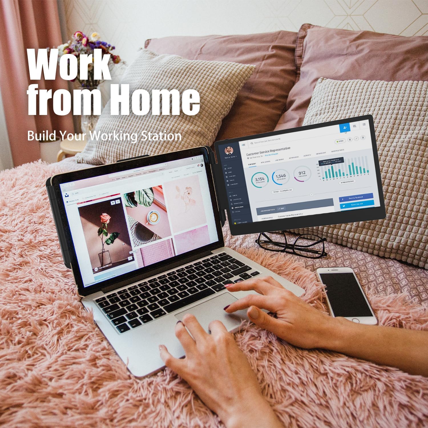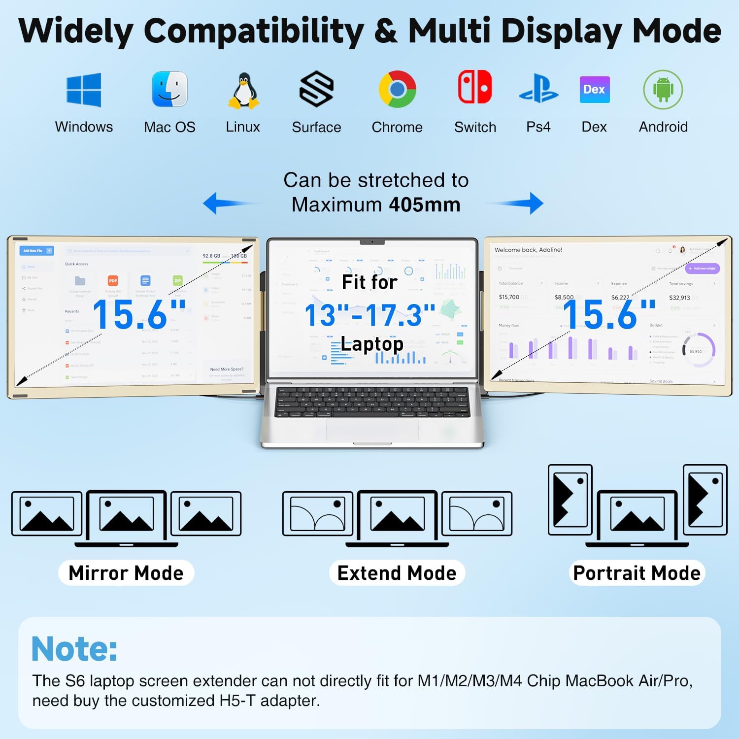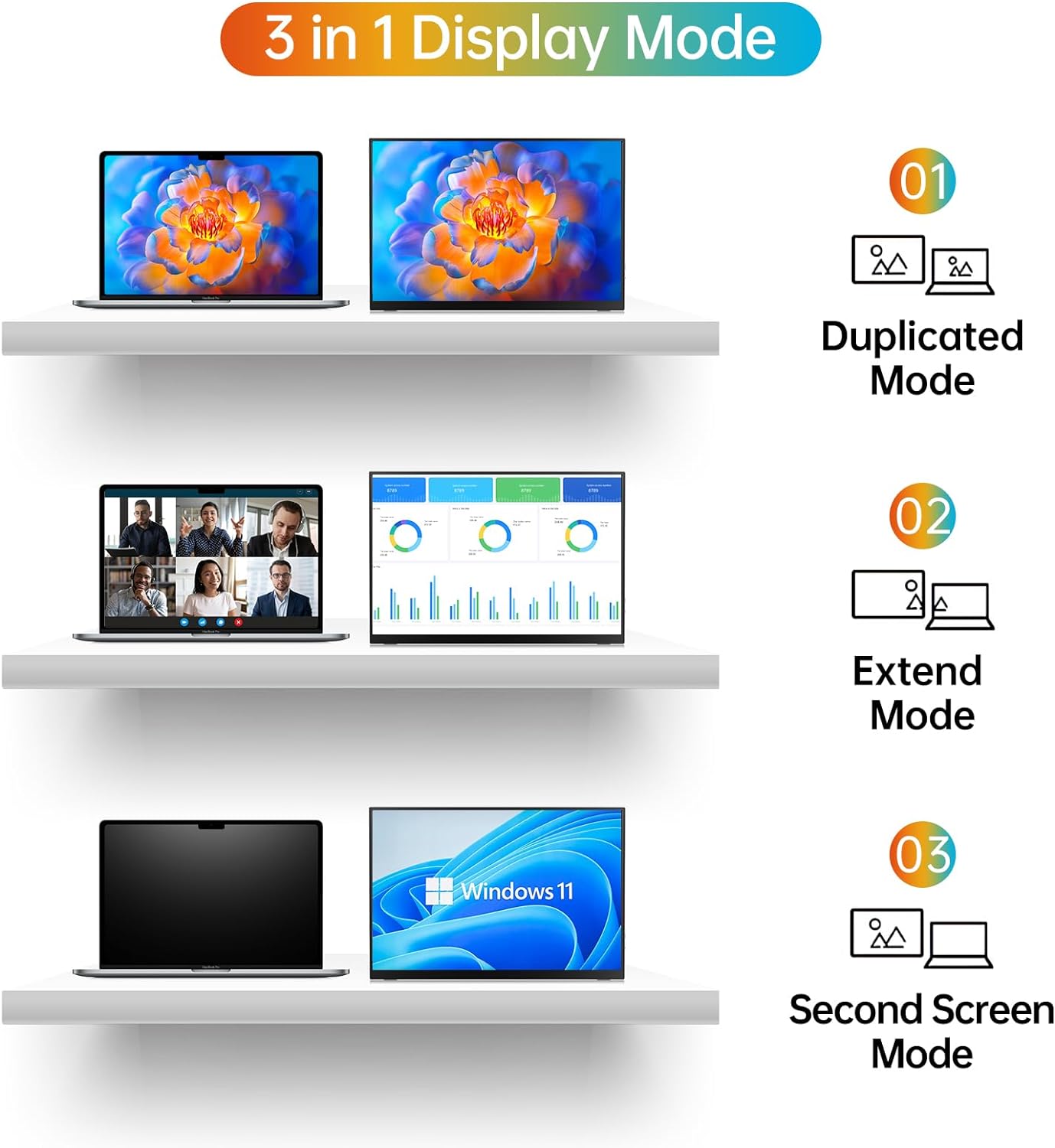 KEFEYA Laptop Screen Extender, 14" FHD 1080P IPS Laptop Monitor Extender Dual Screen, Portable Monitor for Laptops 13-17" with USB-C/HDMI Port, Plug n Play for Windows/Mac/Android/Switch/PS5