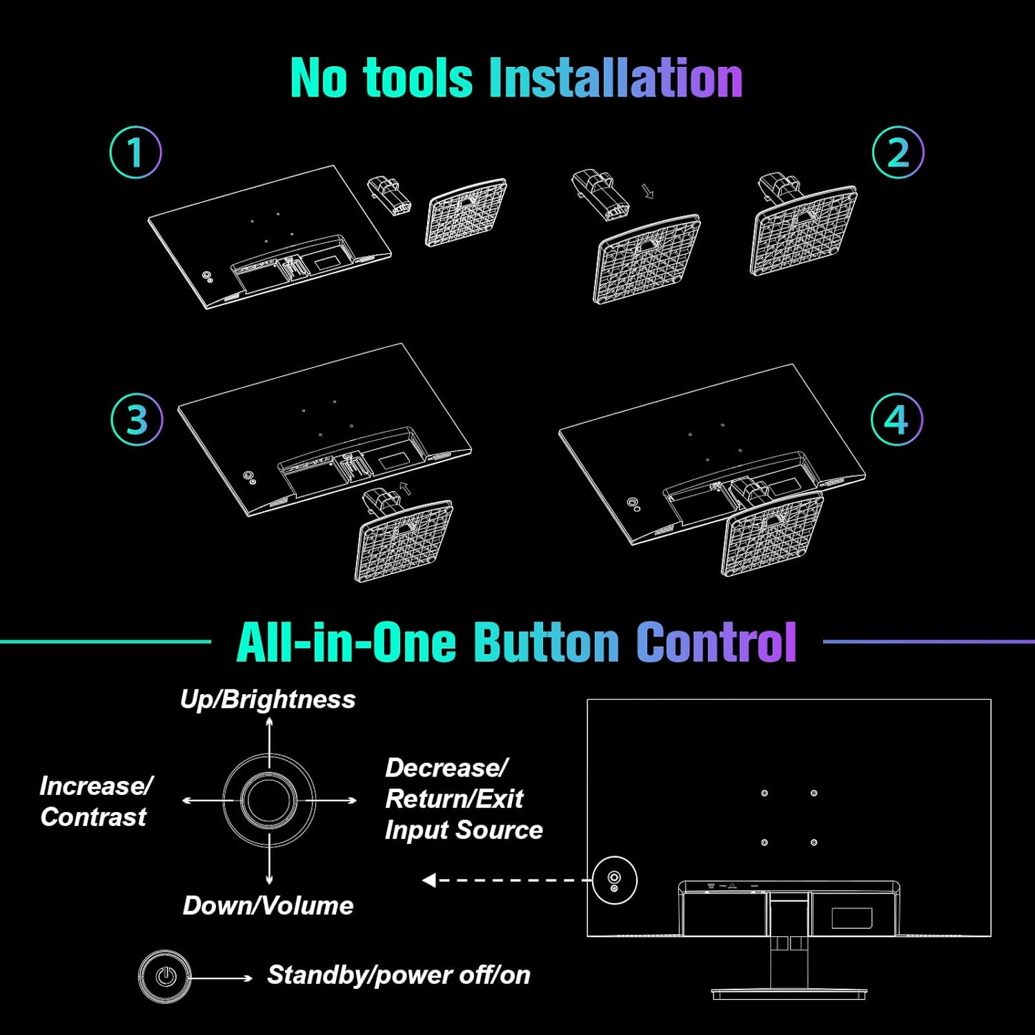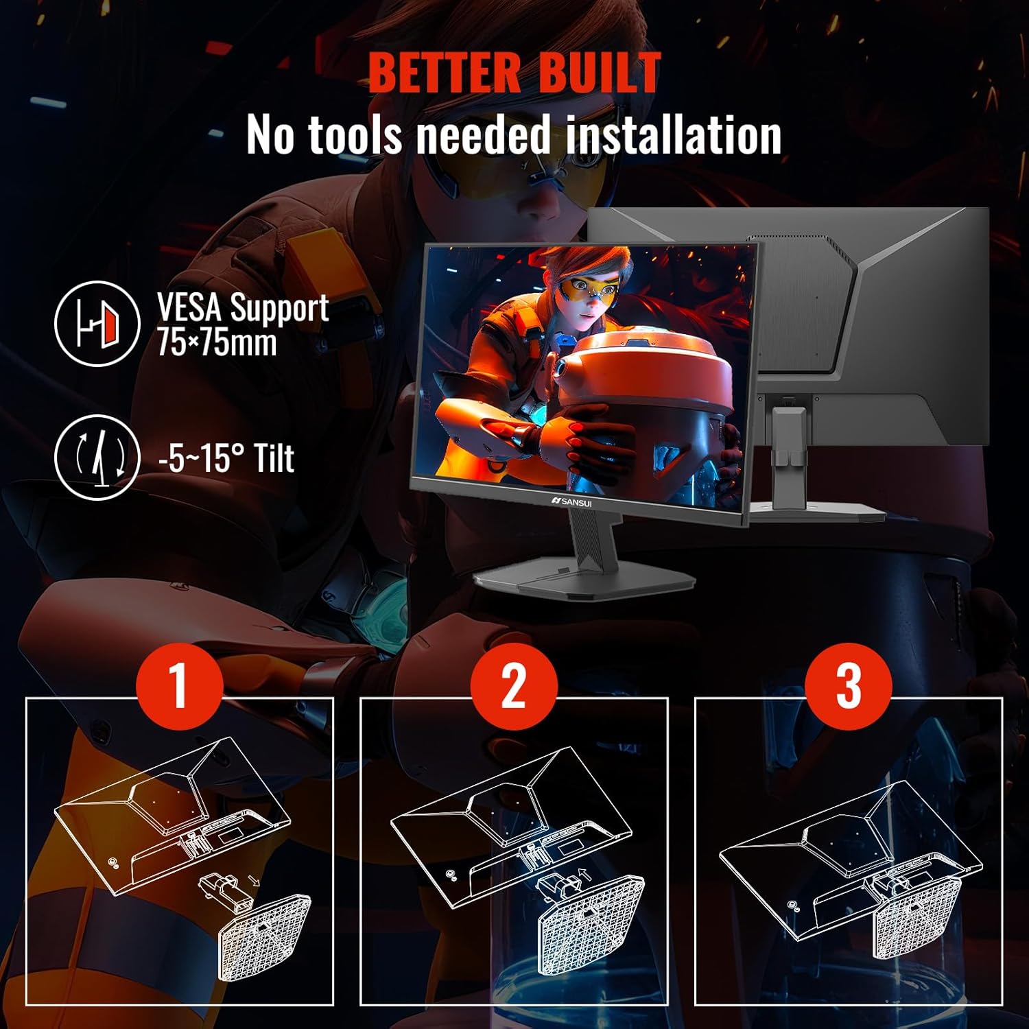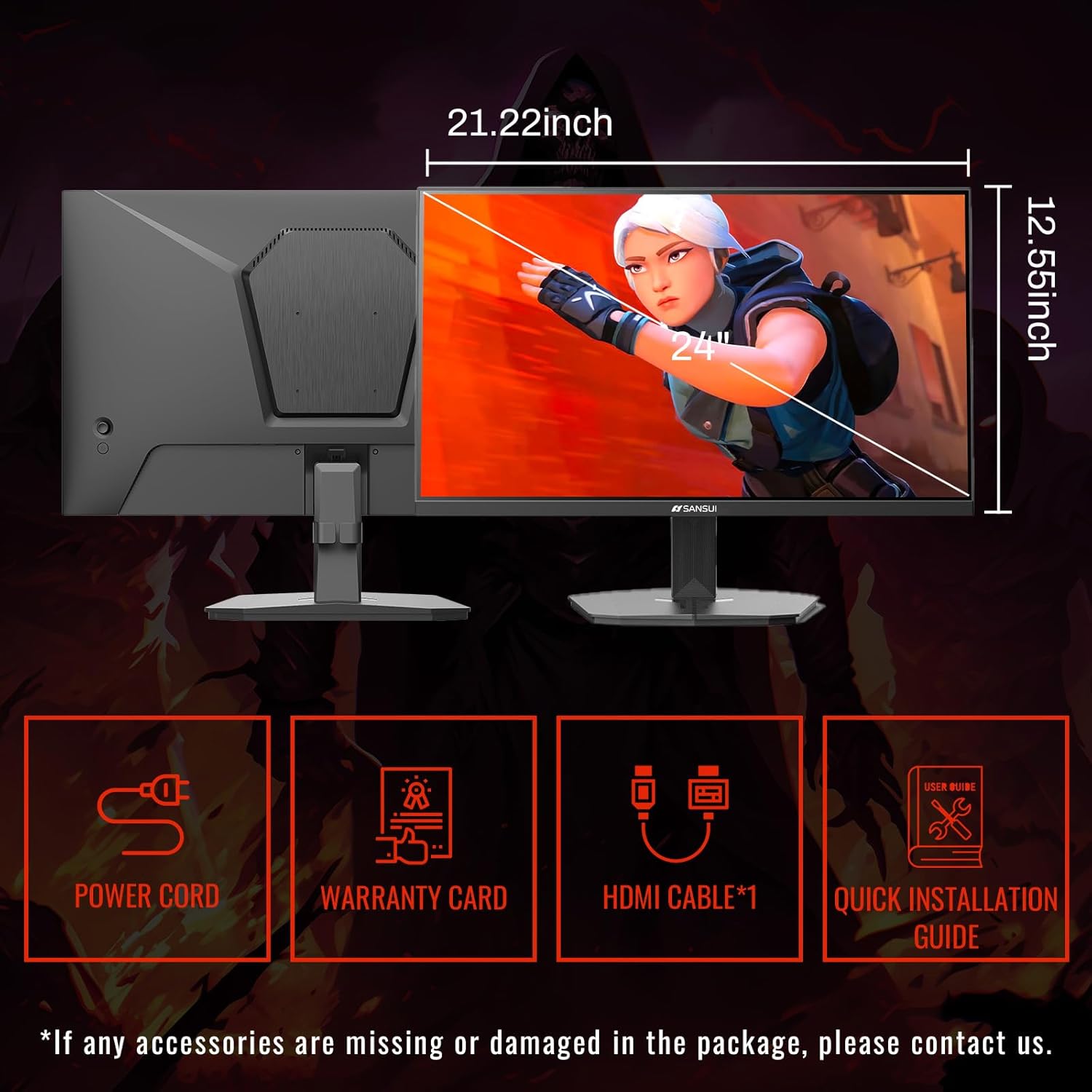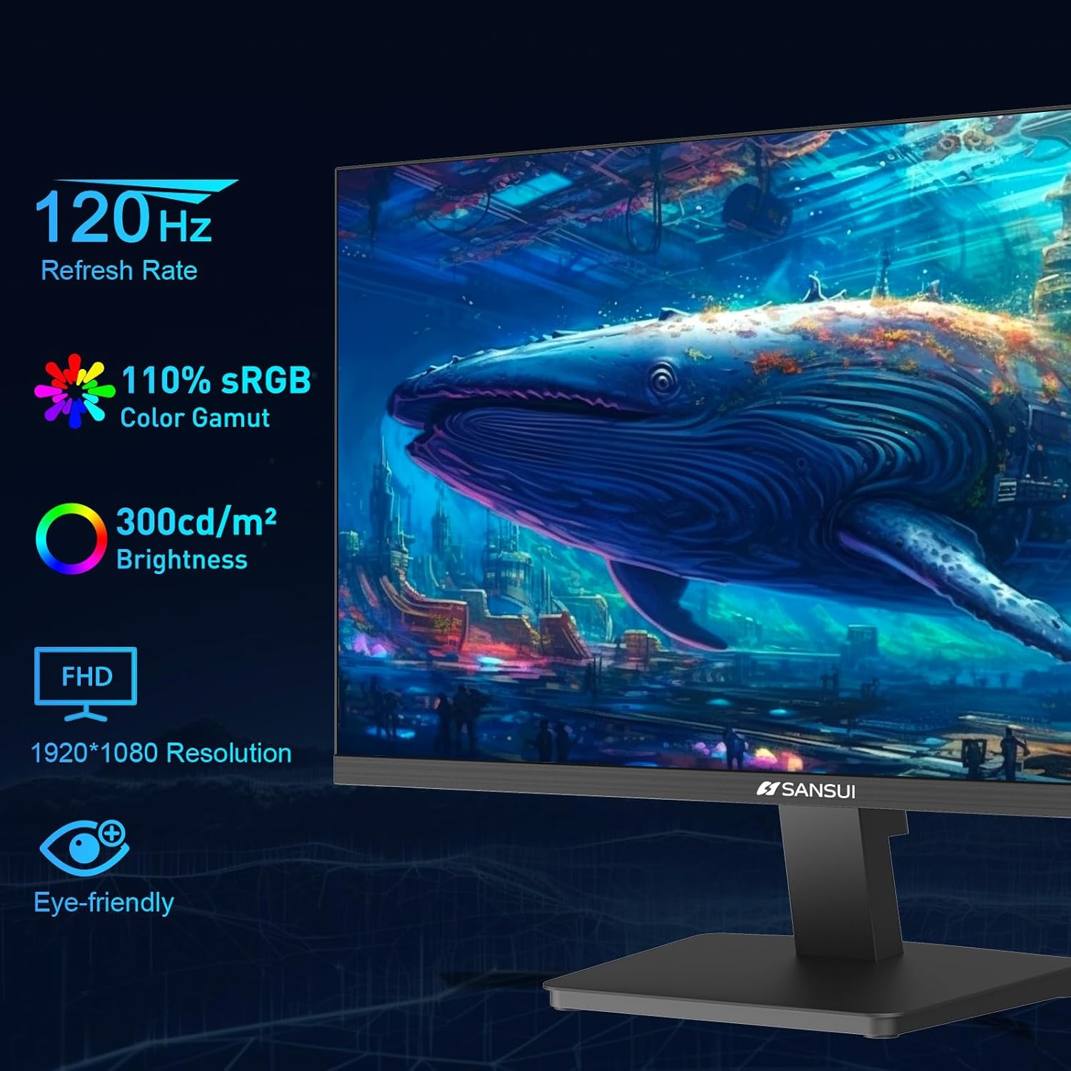 SANSUI Computer Monitor 24 inch Eye Care 1080P Display HDMI,VGA Ports with 178° Viewing Angle/Frame-Less/Tilt/VESA Compatible for Office and Home