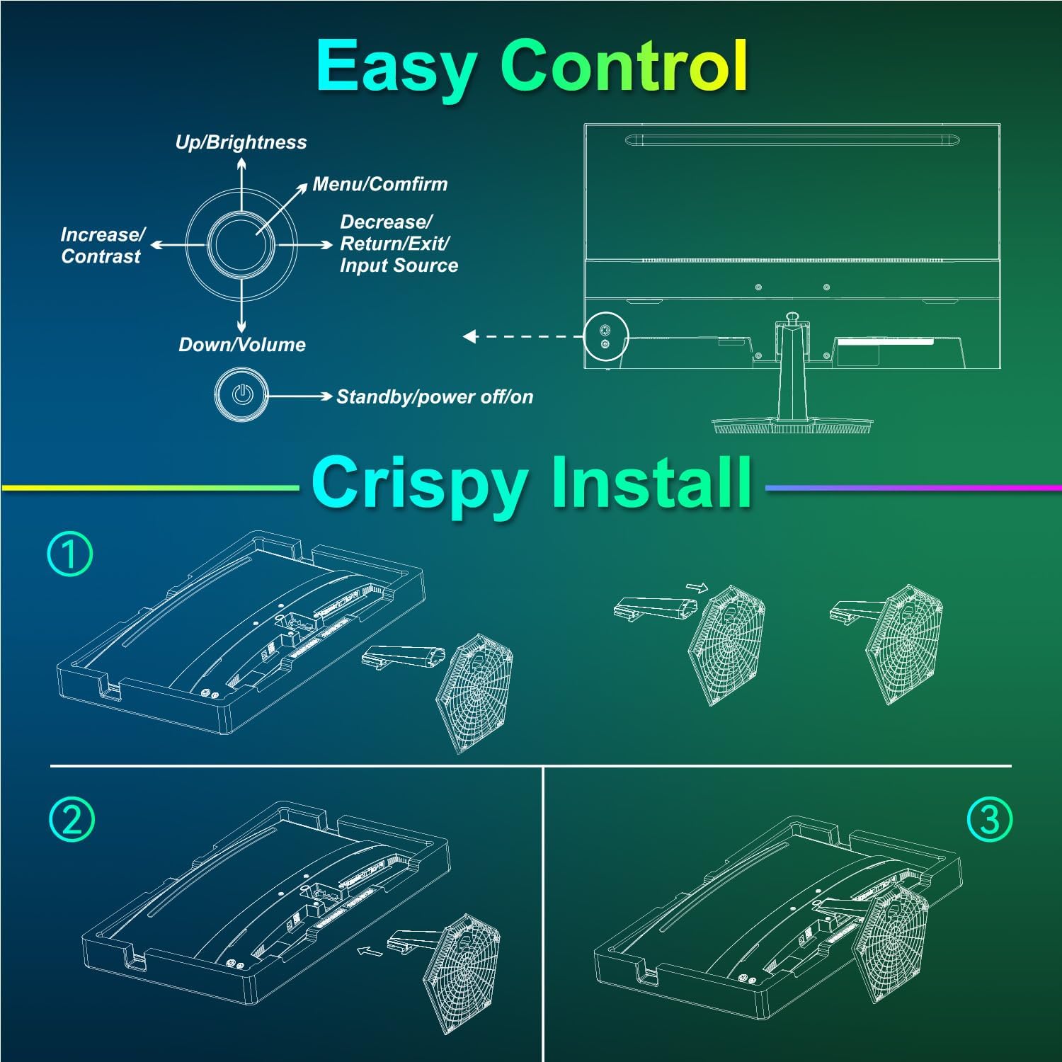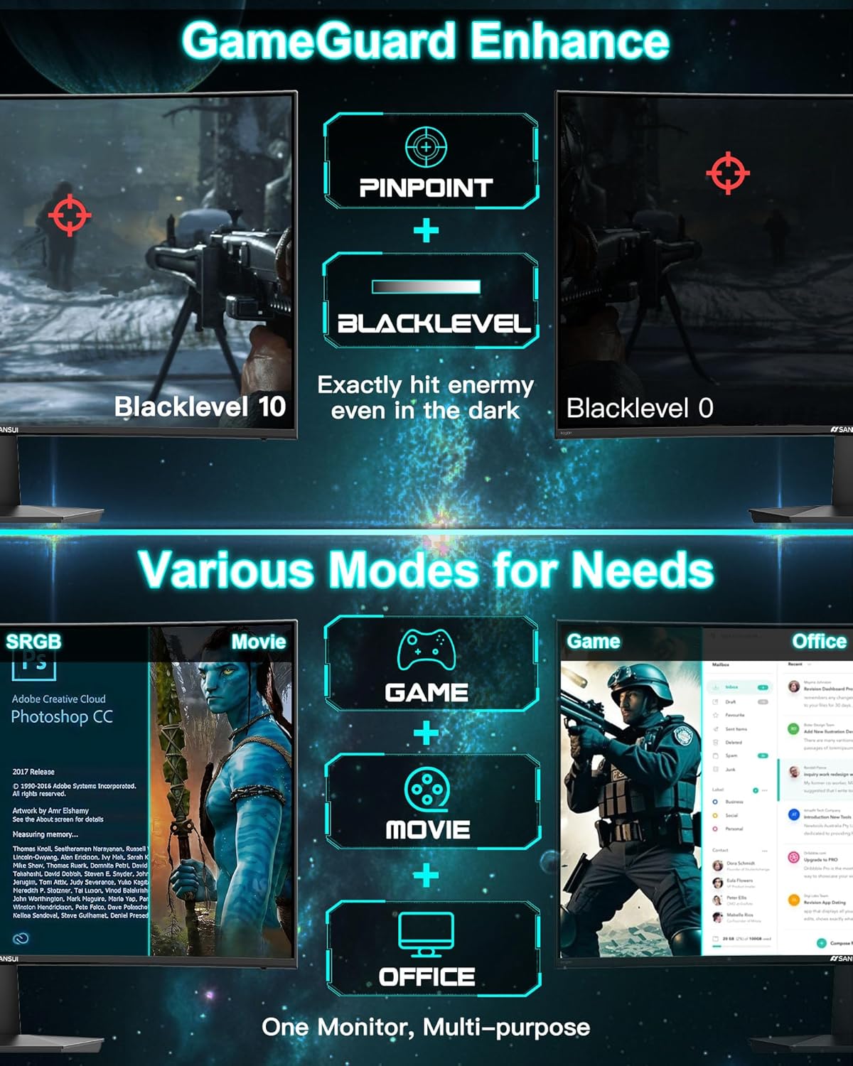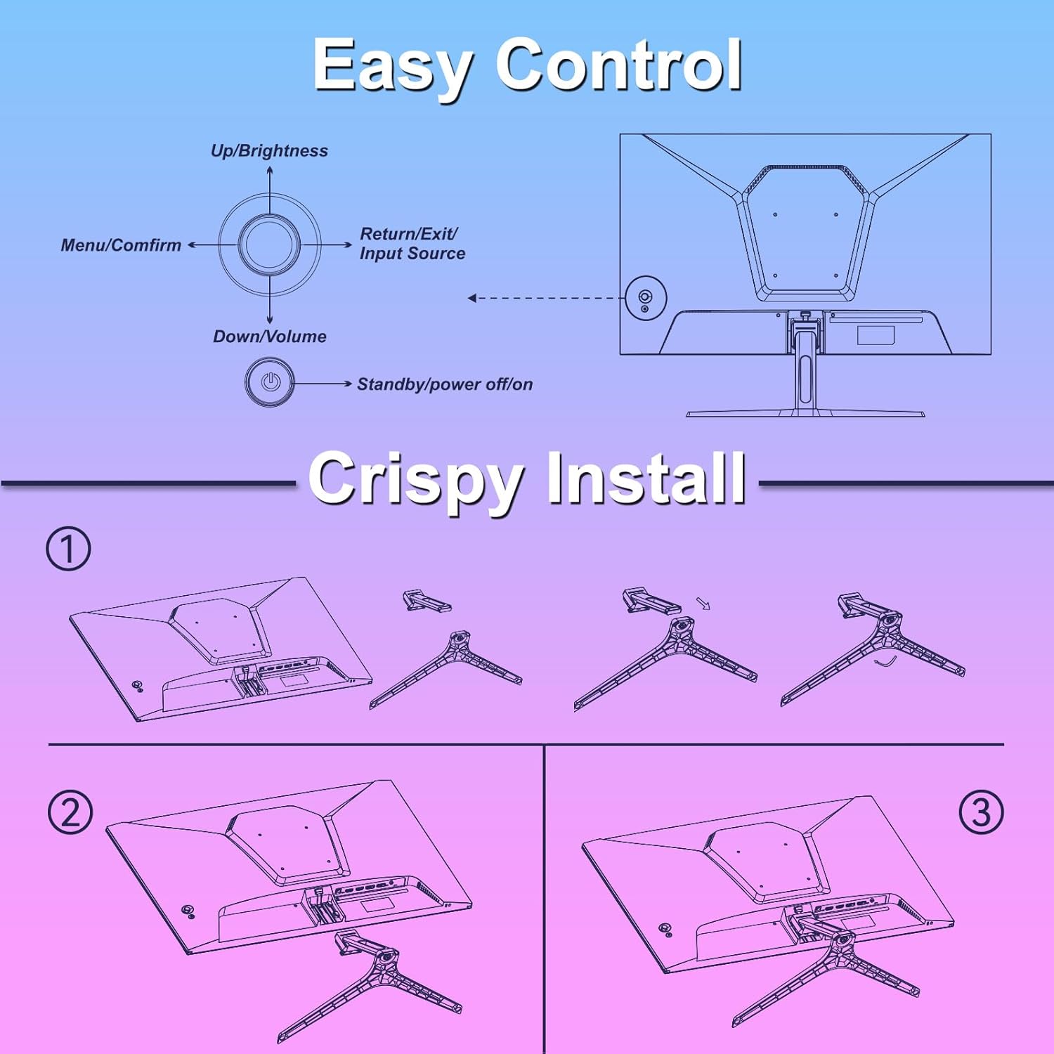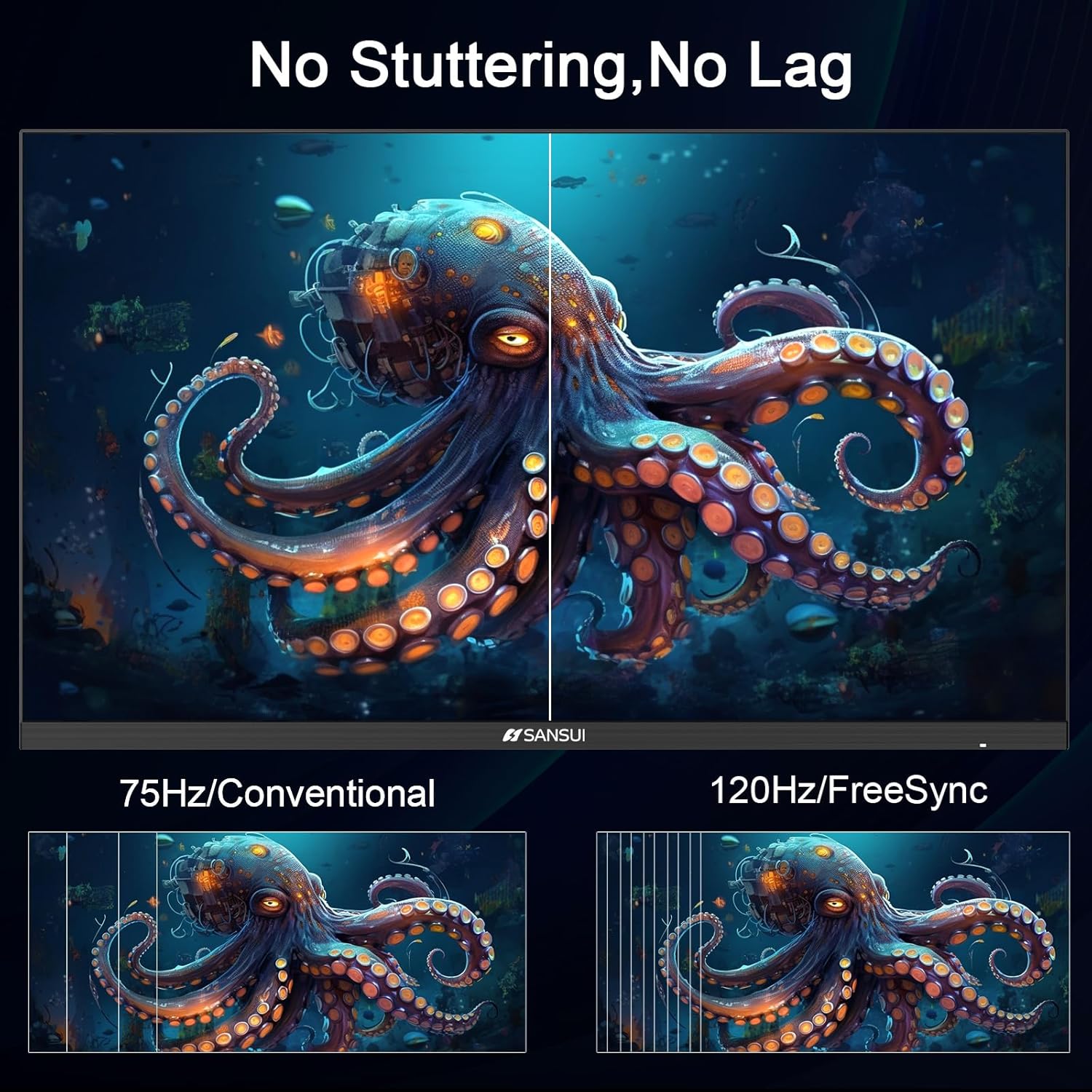 SANSUI Computer Monitor 24 inch Eye Care 1080P Display HDMI,VGA Ports with 178° Viewing Angle/Frame-Less/Tilt/VESA Compatible for Office and Home