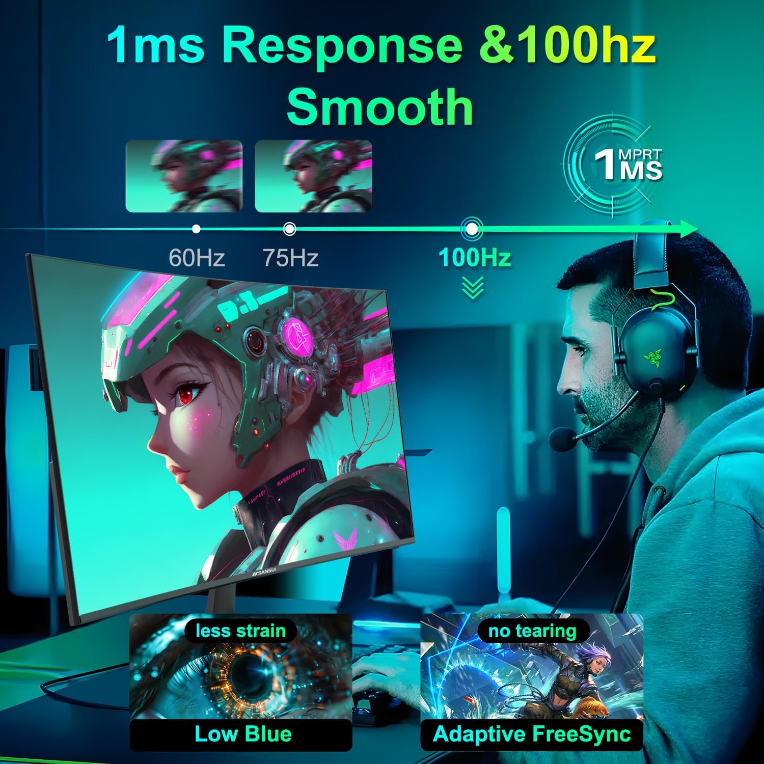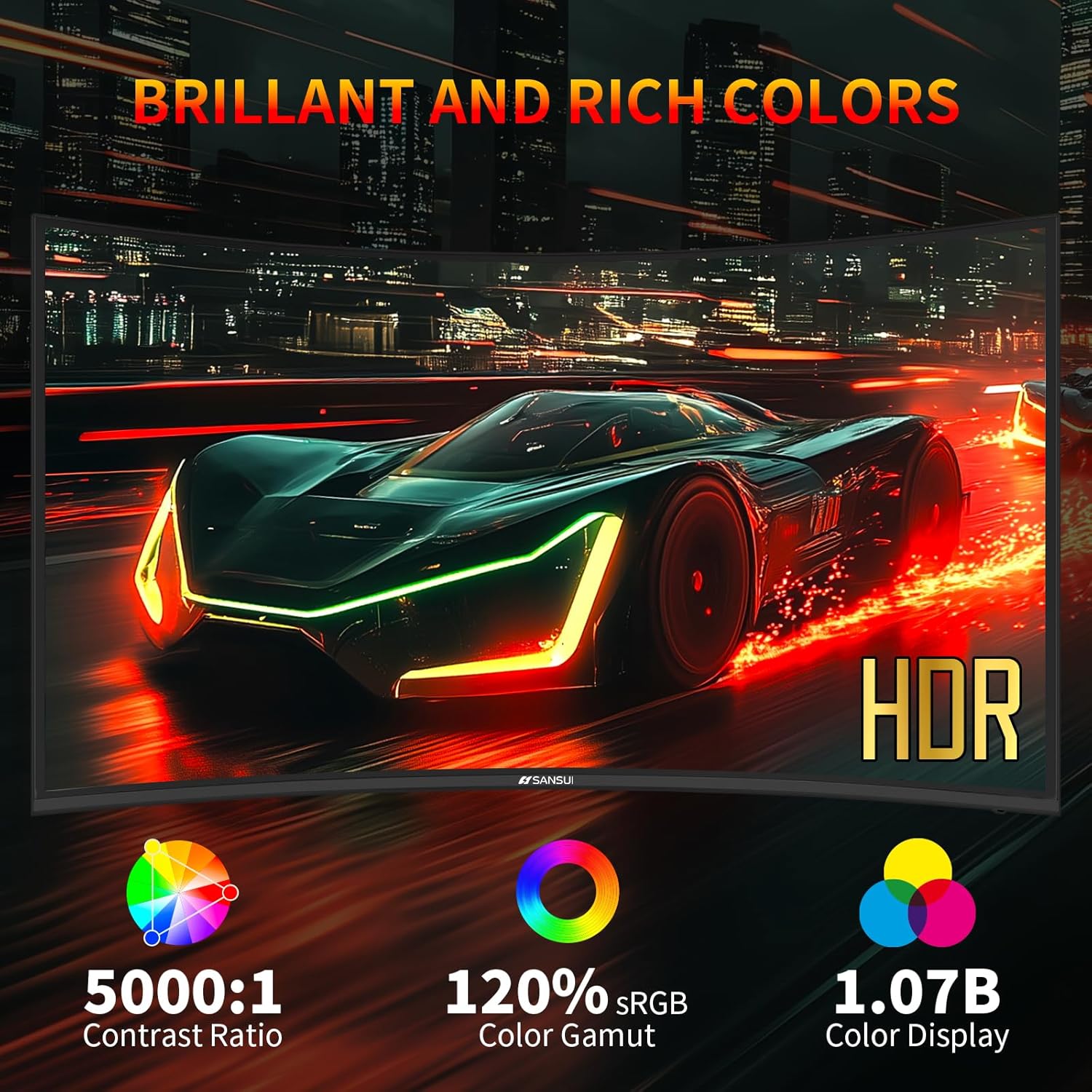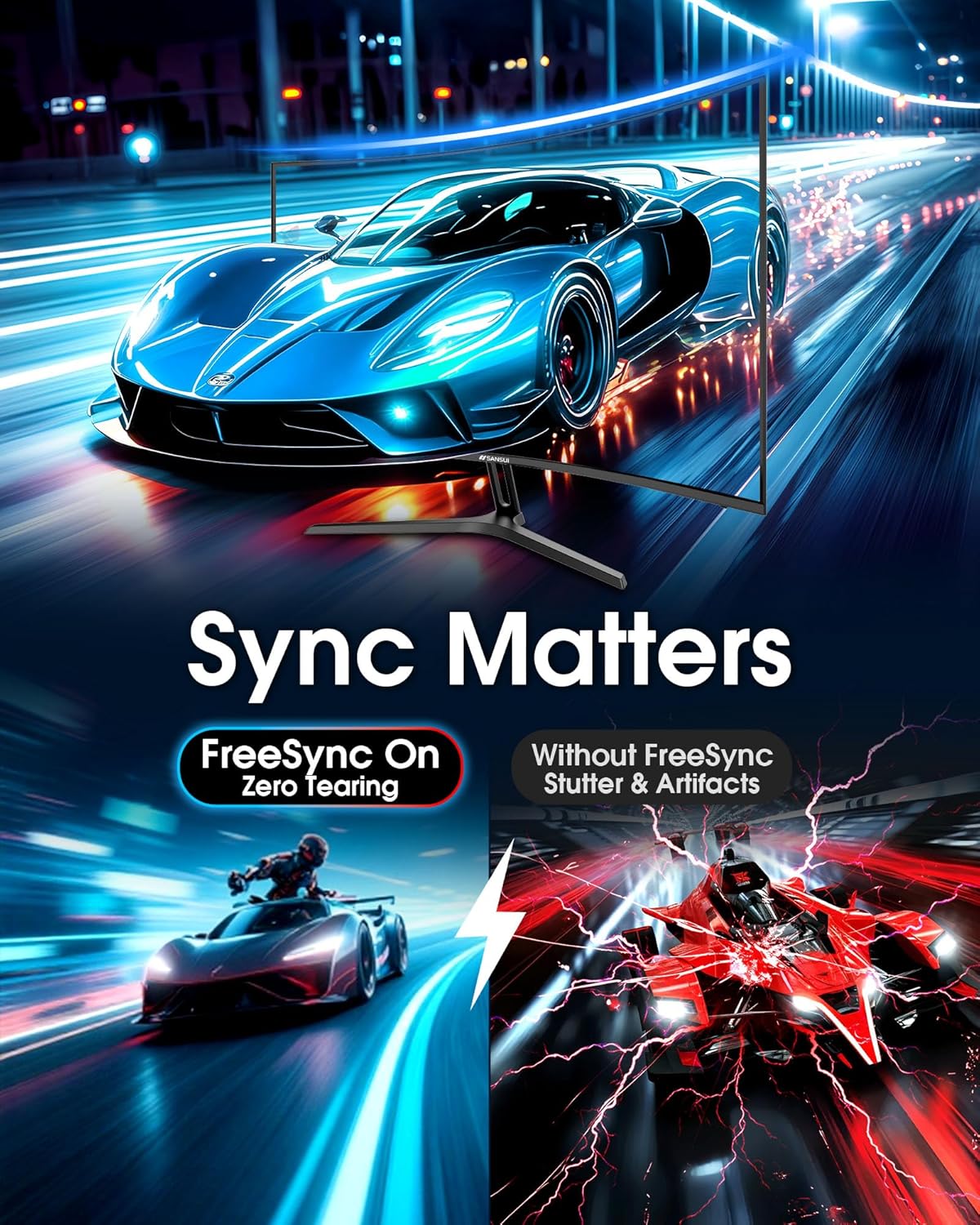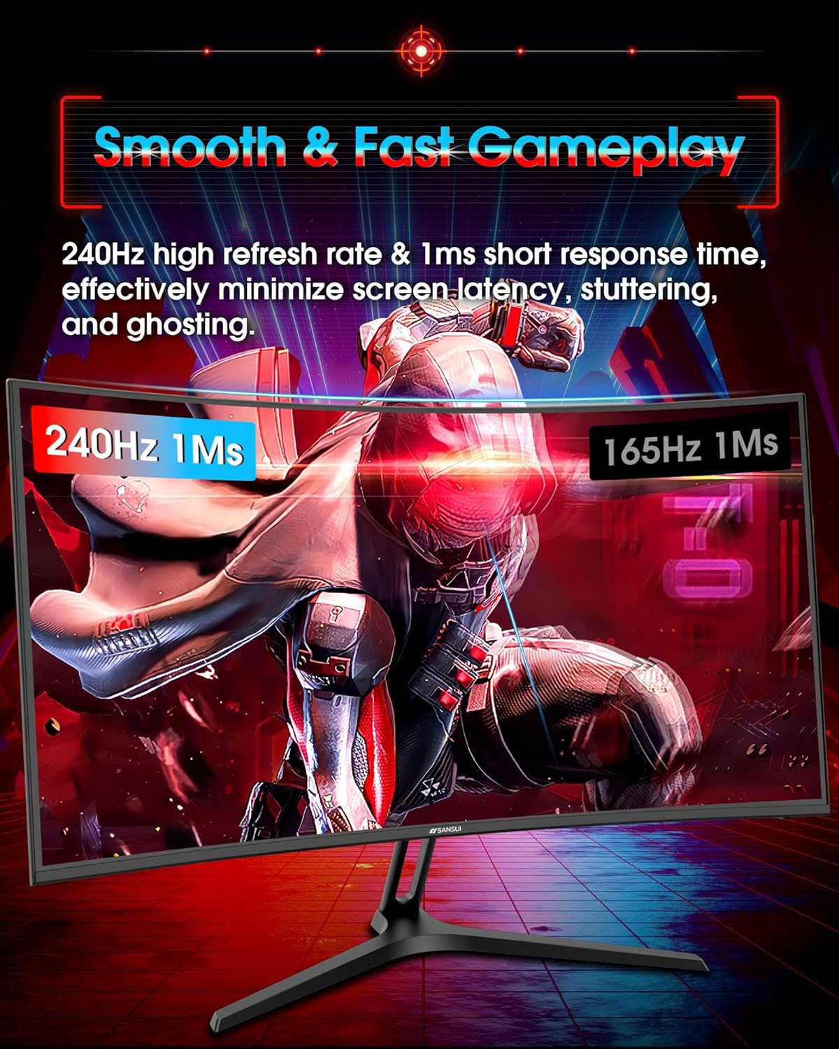 SANSUI 32 Inch Curved 240Hz Gaming Monitor High Refresh Rate, FHD 1080P Gaming PC Monitor HDMI DP1.4, Curved 1500R, 1Ms MPRT, HDR,Metal Stand,VESA Compatible(DP Cable Incl.)