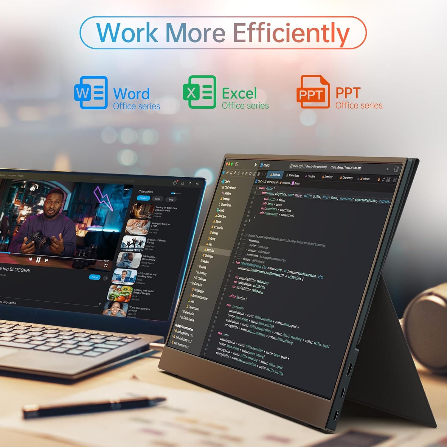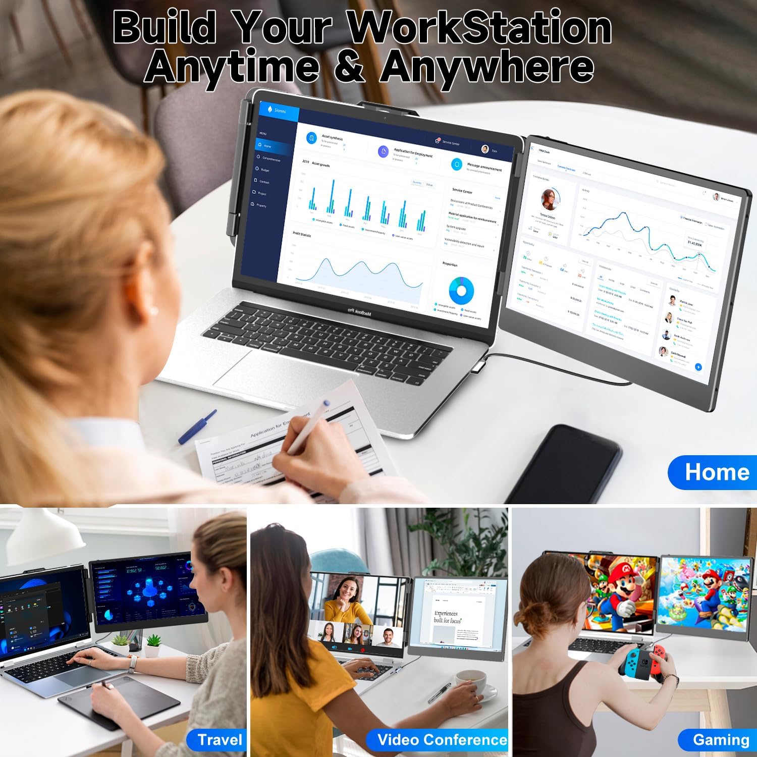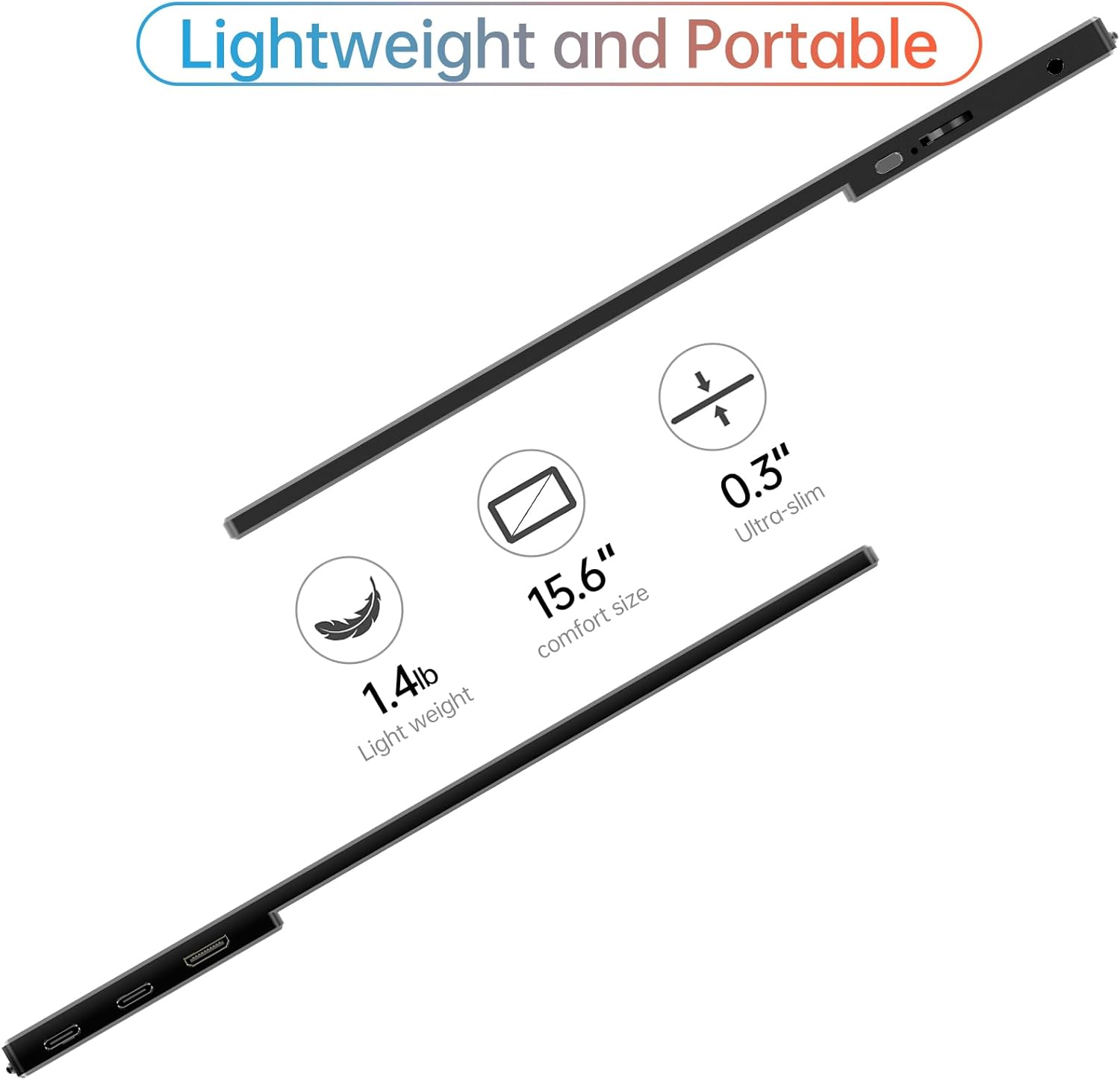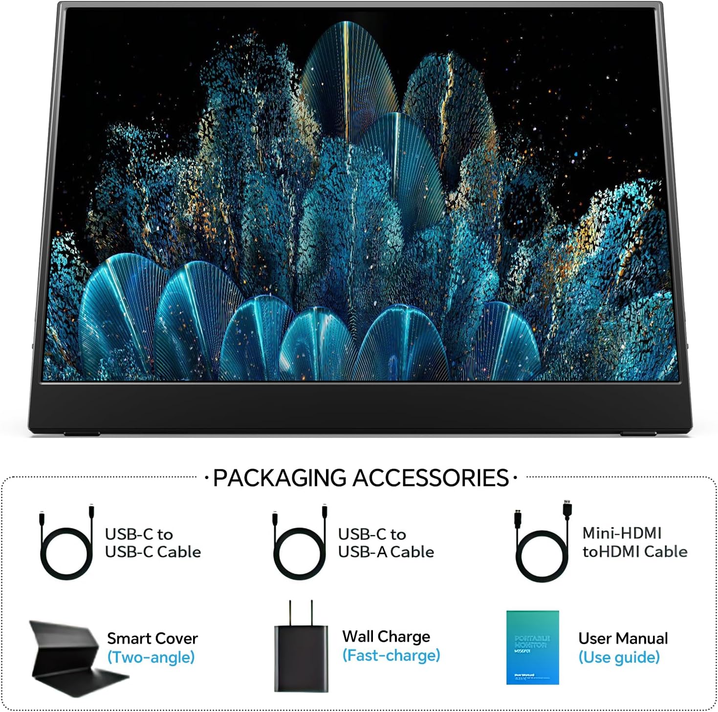 MNN Portable Monitor 15.6inch FHD 1080P USB C HDMI Gaming Ultra-Slim IPS Display w/Smart Cover & Speakers,HDR Plug&Play, External Monitor for Laptop PC Phone Mac (15.6'' 1080P)