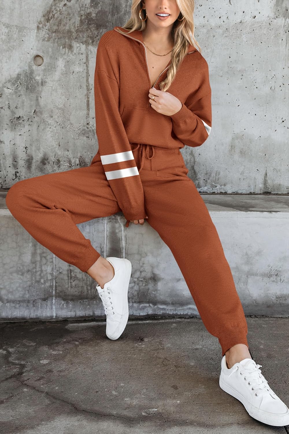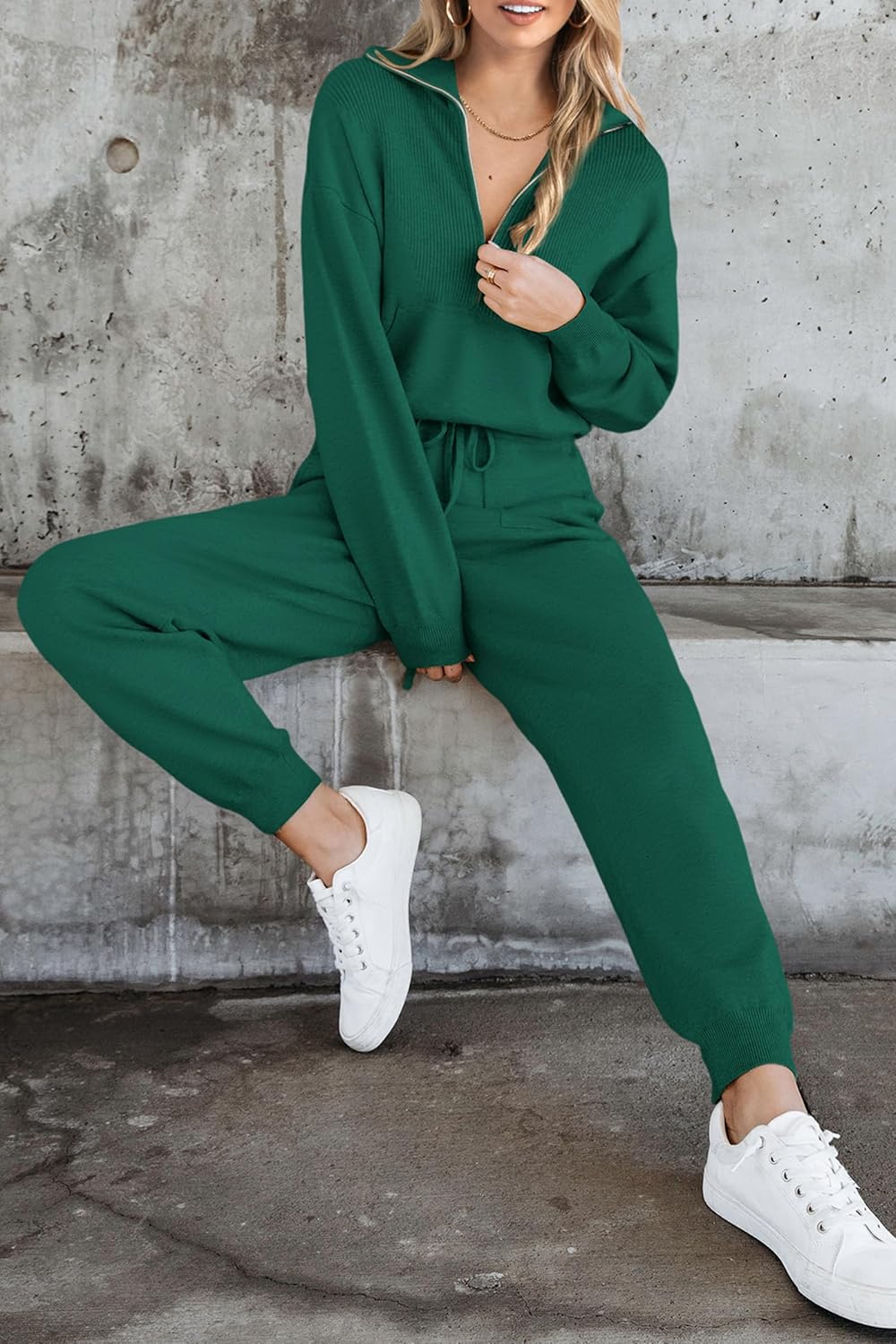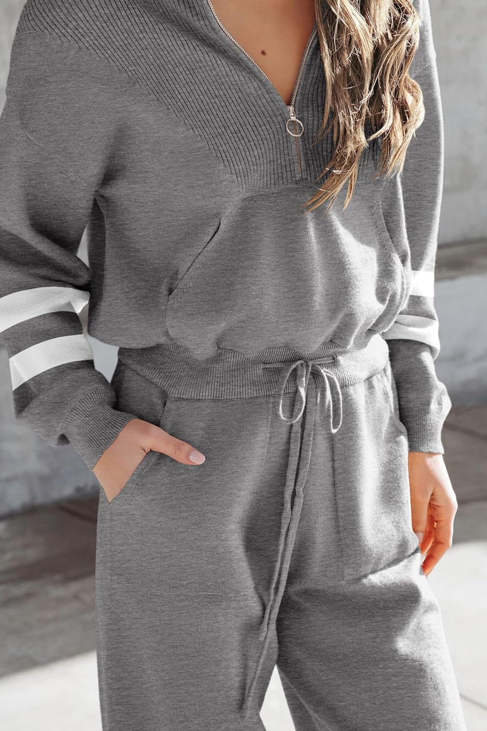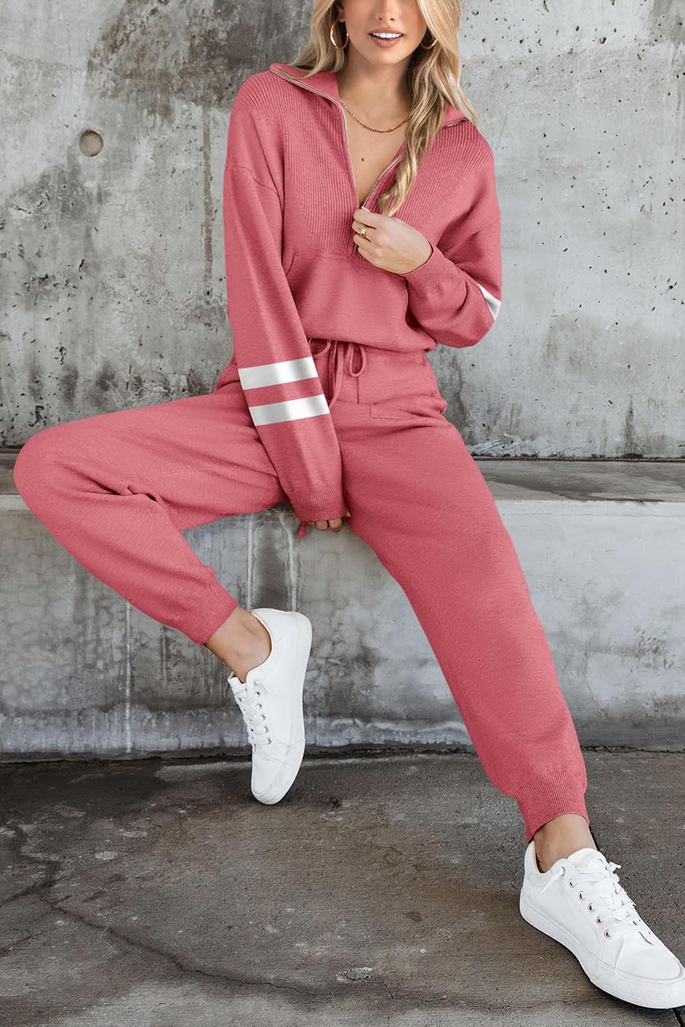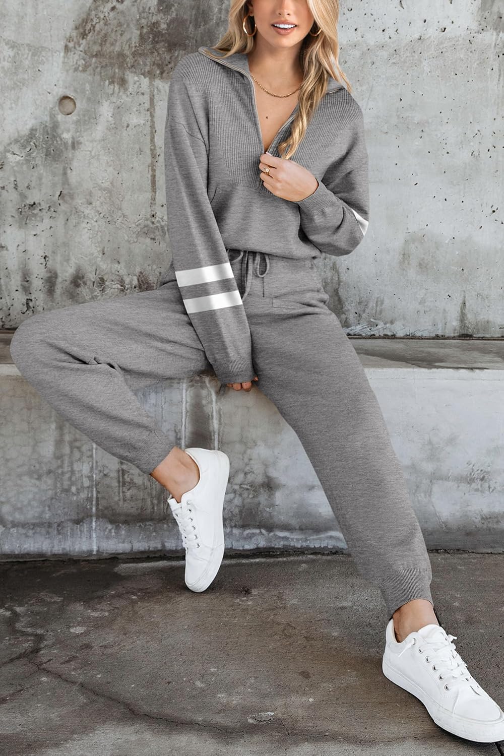 PRETTYGARDEN Women's 2 Piece Sweater Set Pullover Zip Up Sweatshirt Jogger Sweatpants Tracksuit Casual Outfit