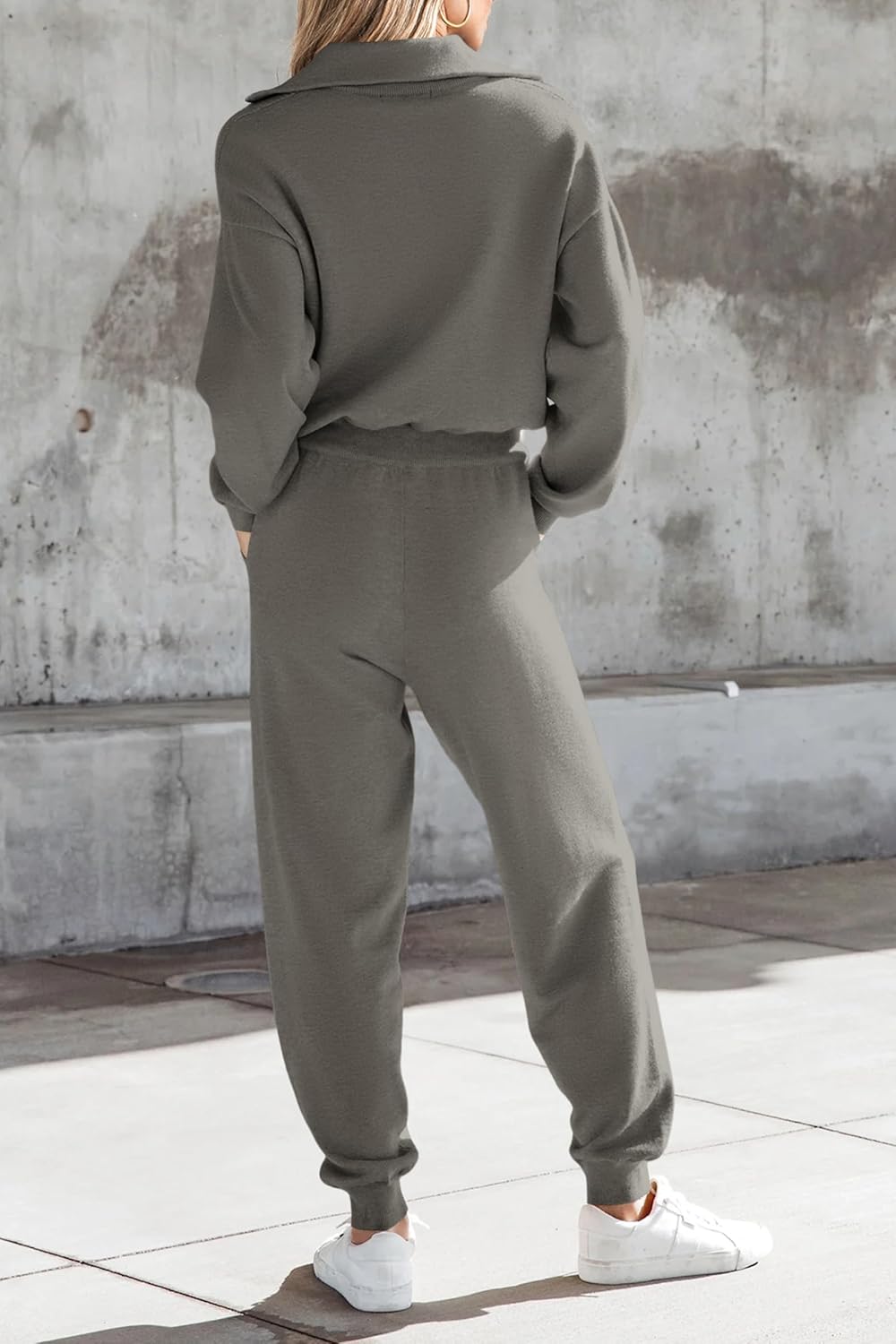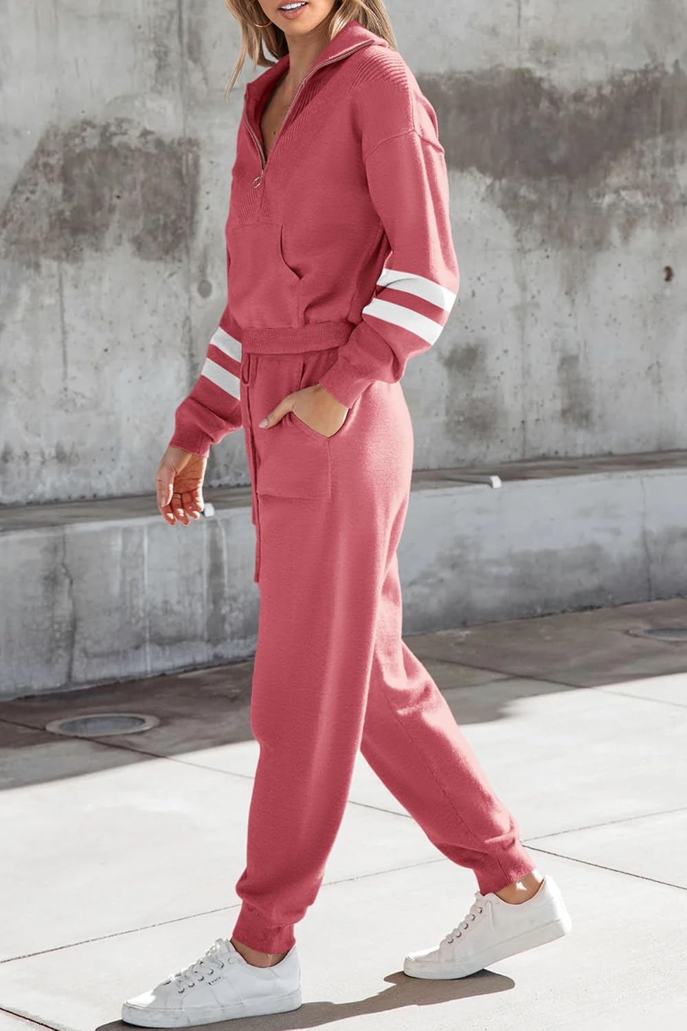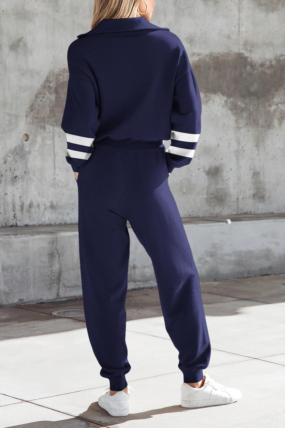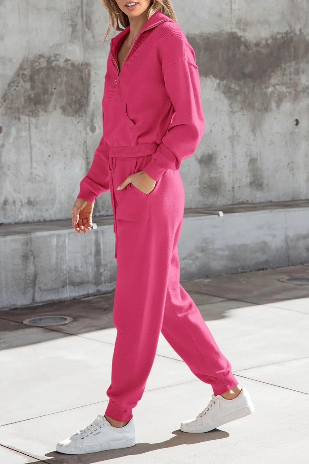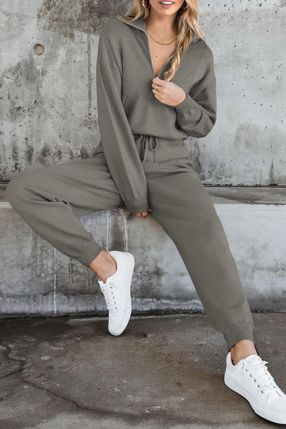 PRETTYGARDEN Women's 2 Piece Sweater Set Pullover Zip Up Sweatshirt Jogger Sweatpants Tracksuit Casual Outfit