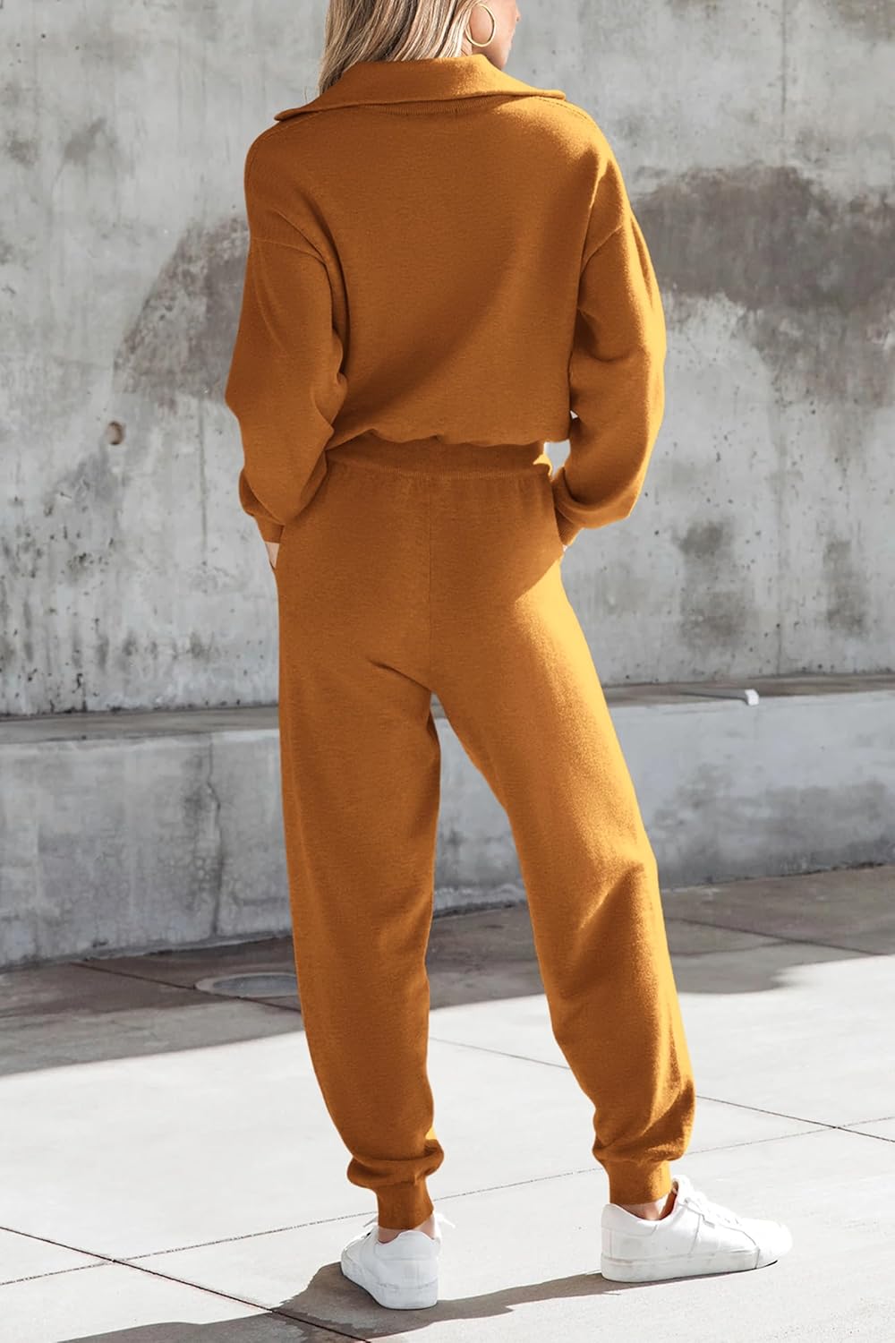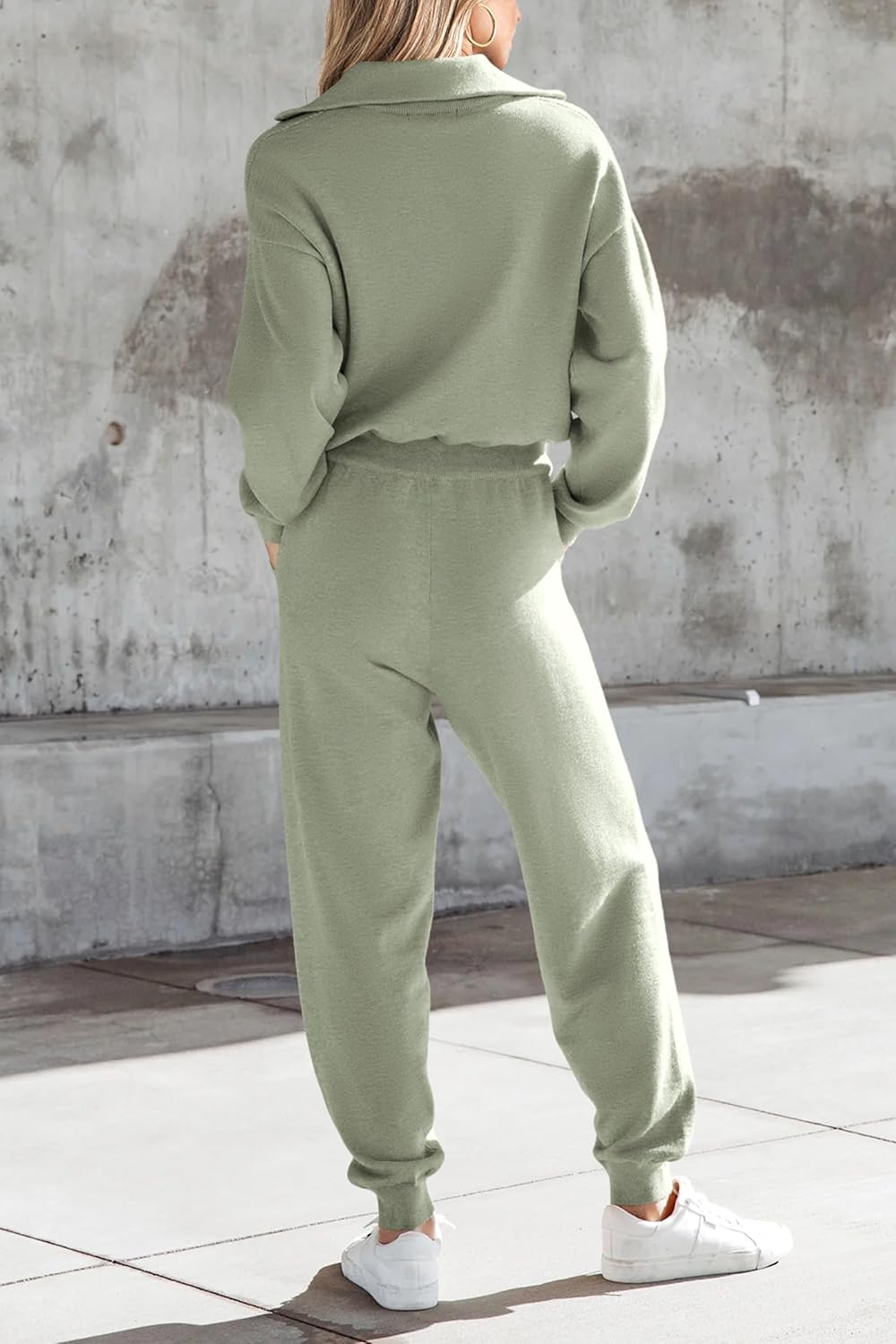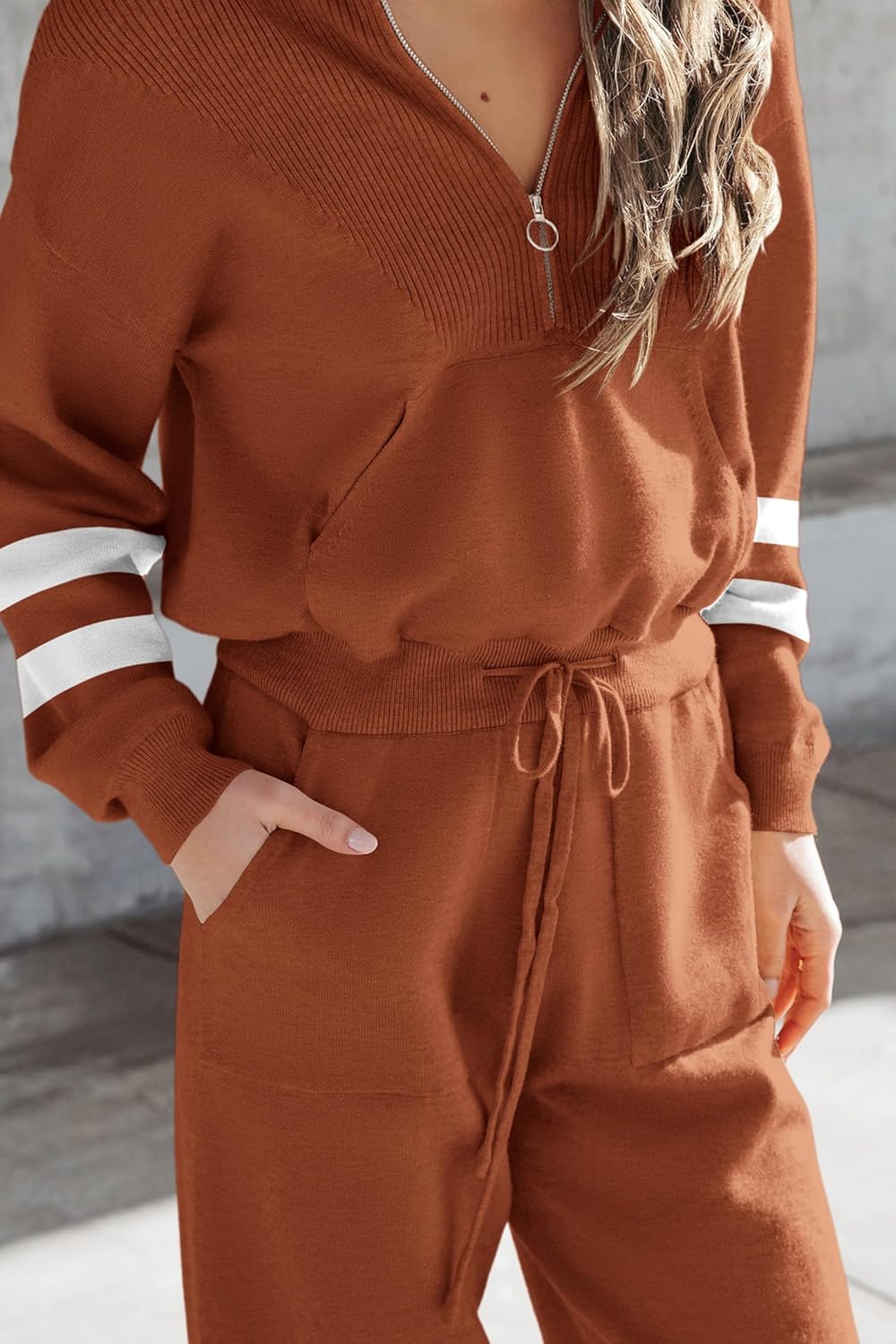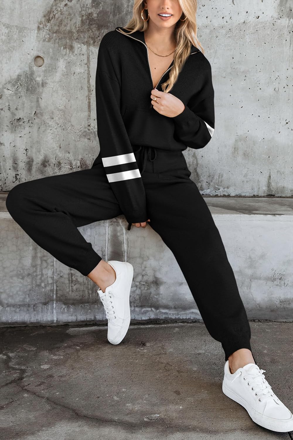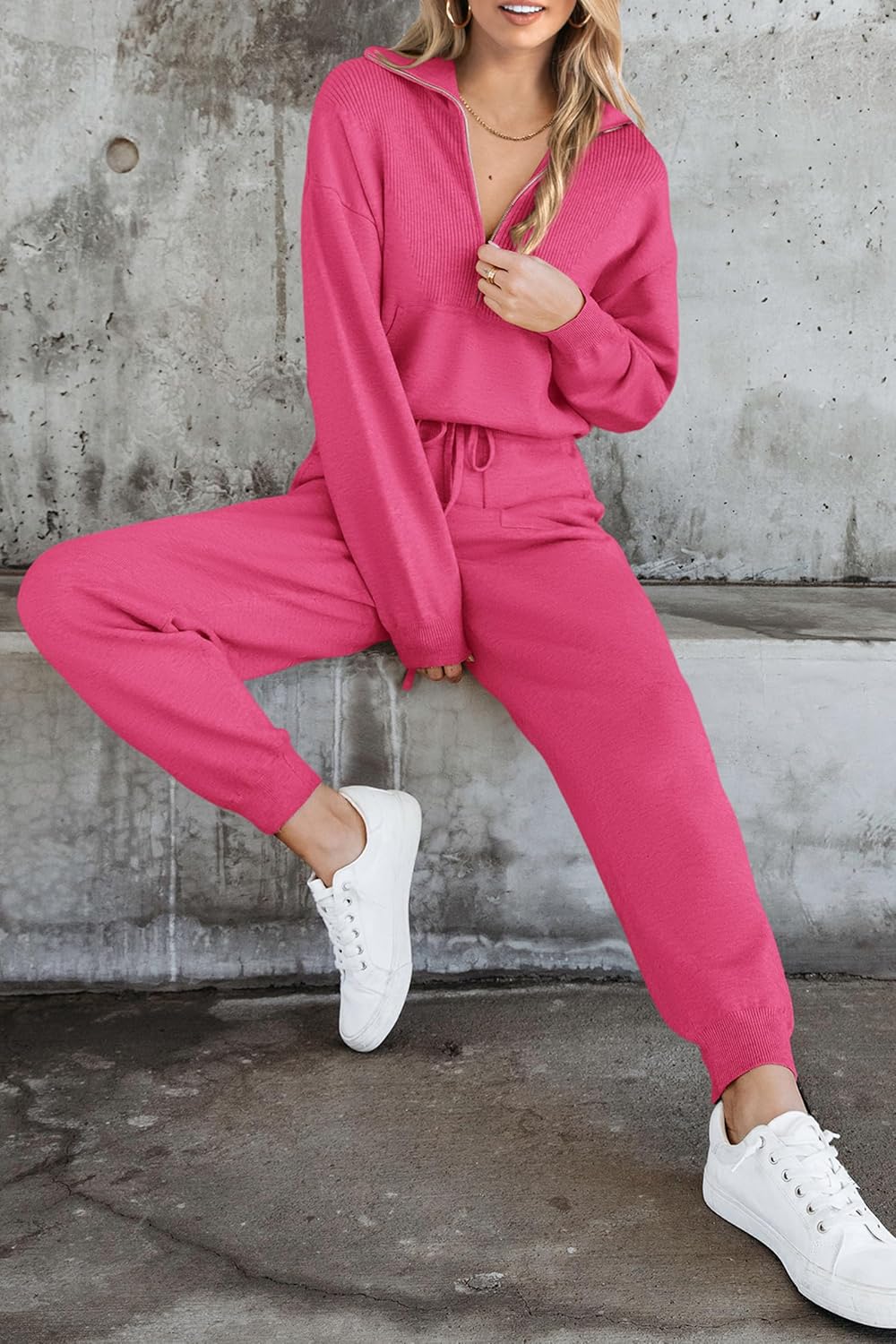PRETTYGARDEN Women's 2 Piece Sweater Set Pullover Zip Up Sweatshirt Jogger Sweatpants Tracksuit Casual Outfit