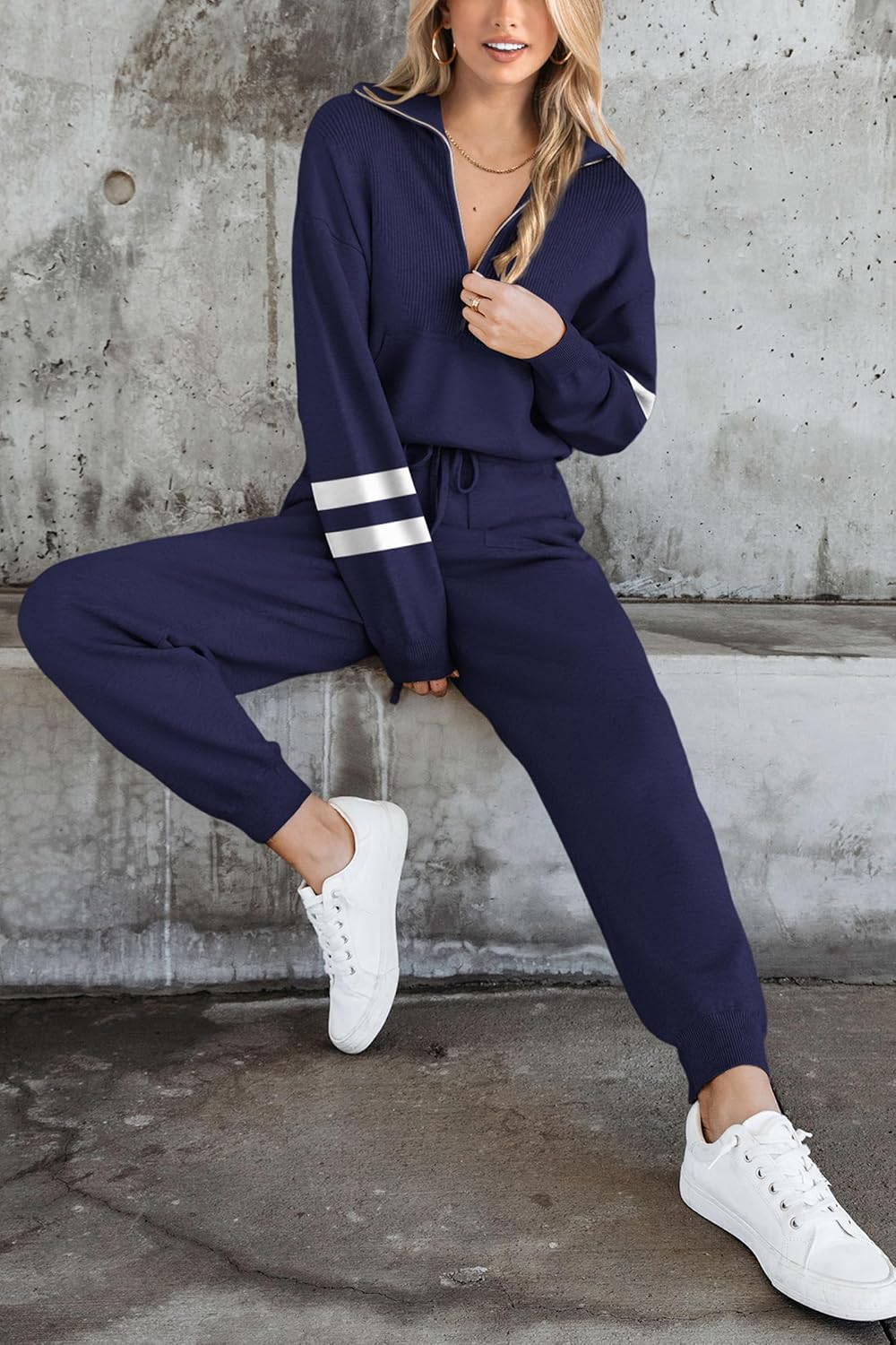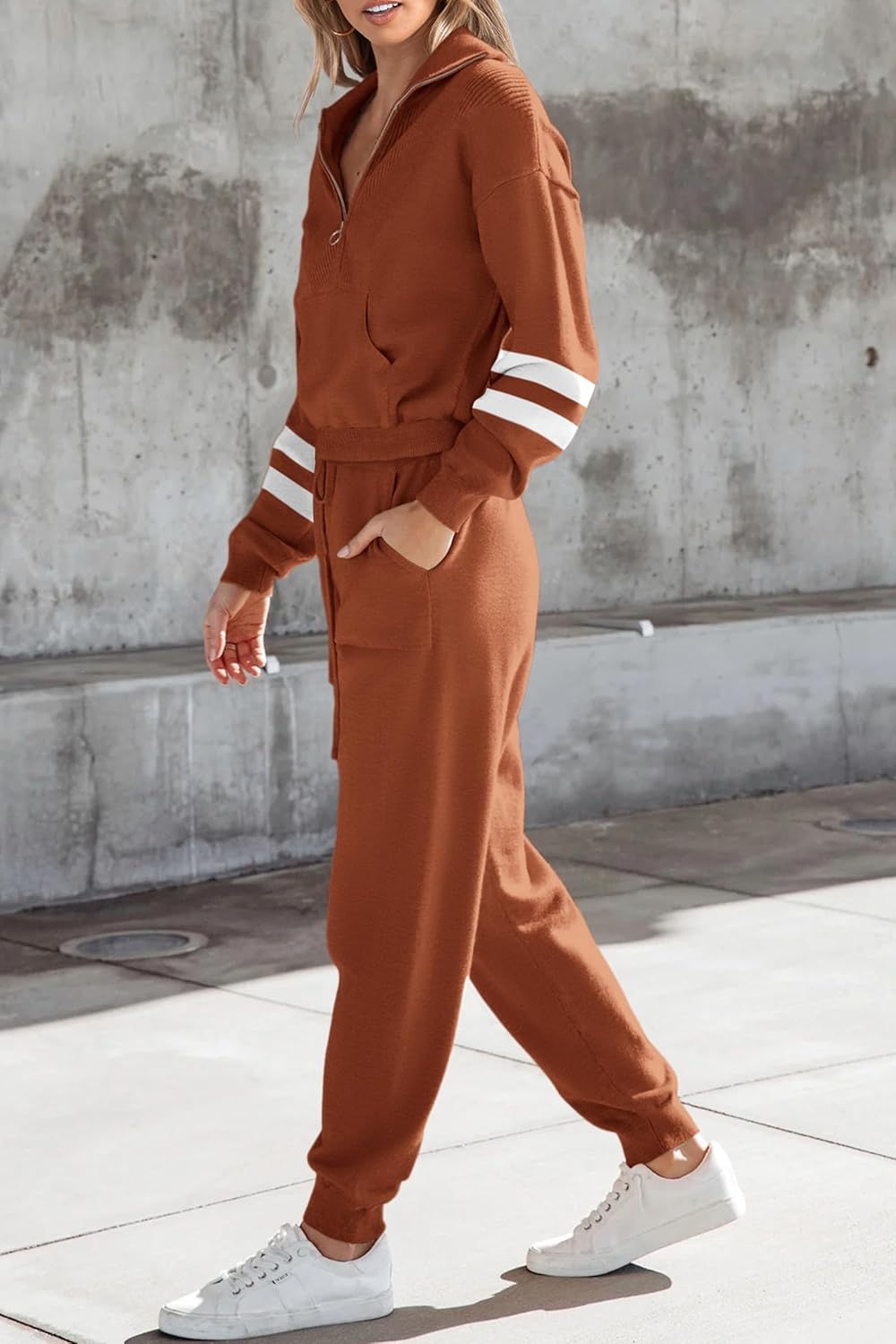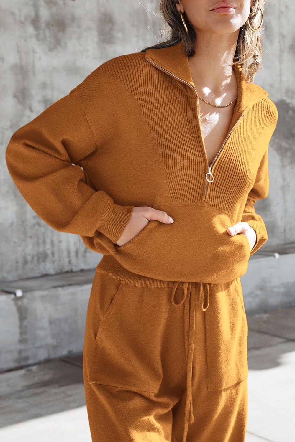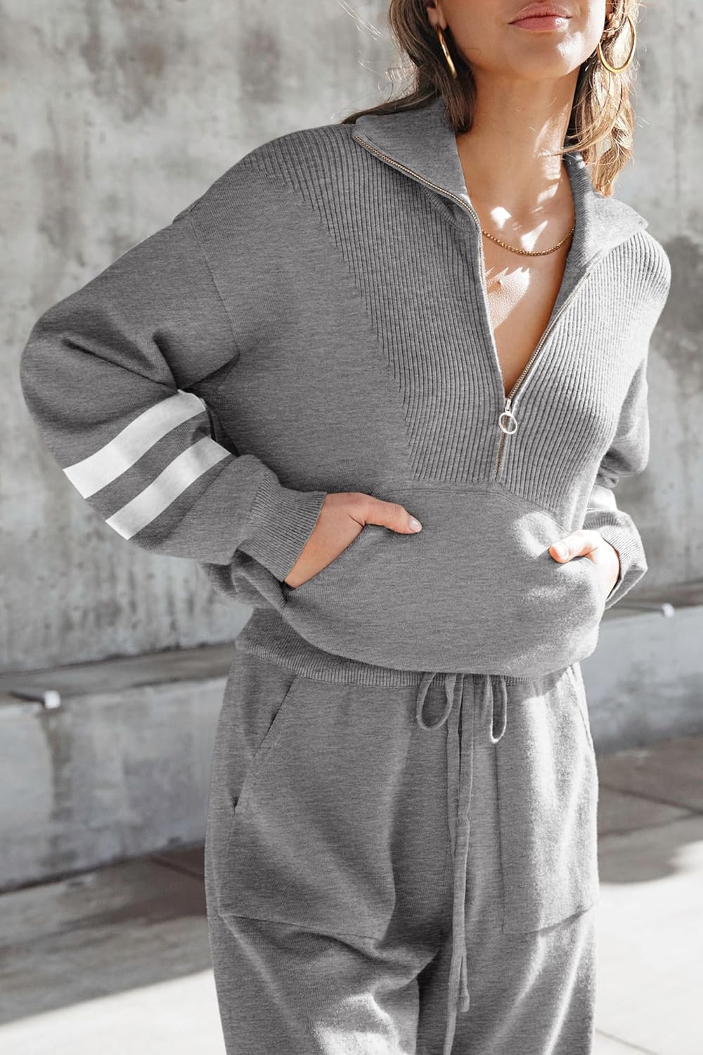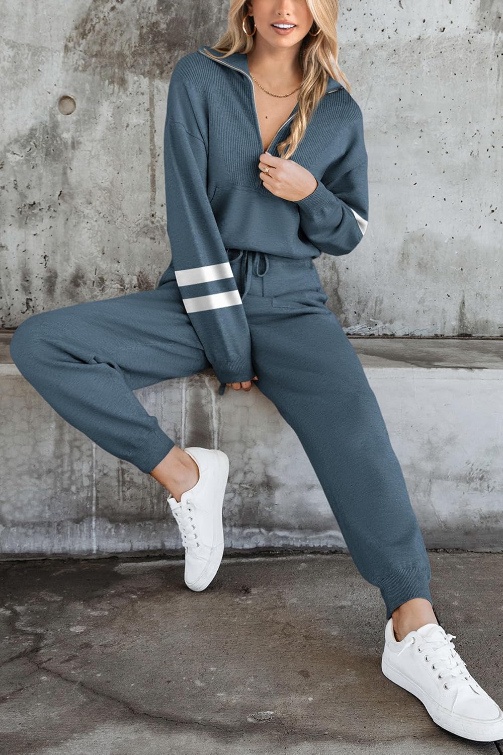 PRETTYGARDEN Women's 2 Piece Sweater Set Pullover Zip Up Sweatshirt Jogger Sweatpants Tracksuit Casual Outfit