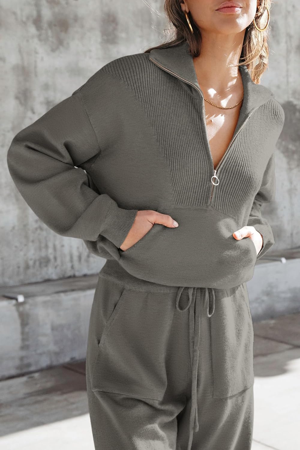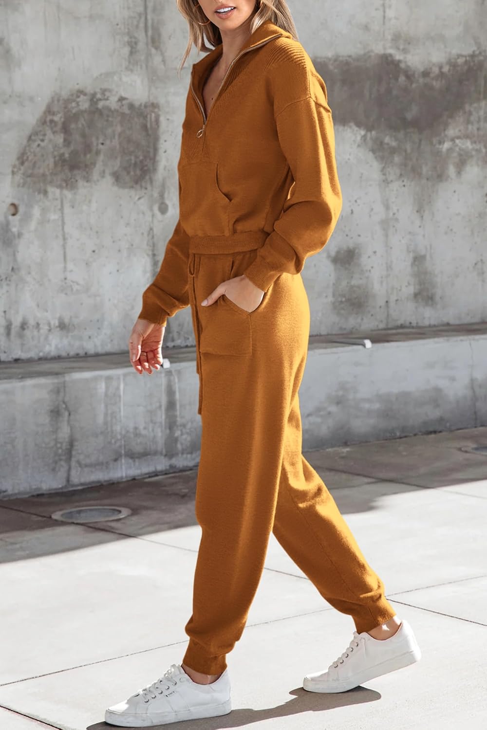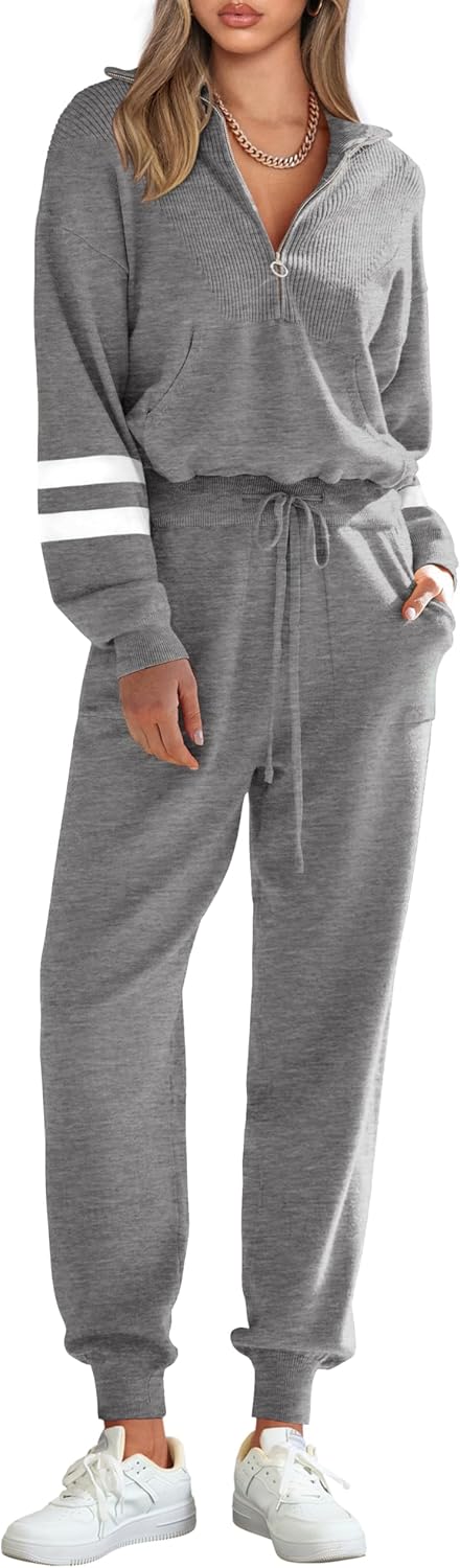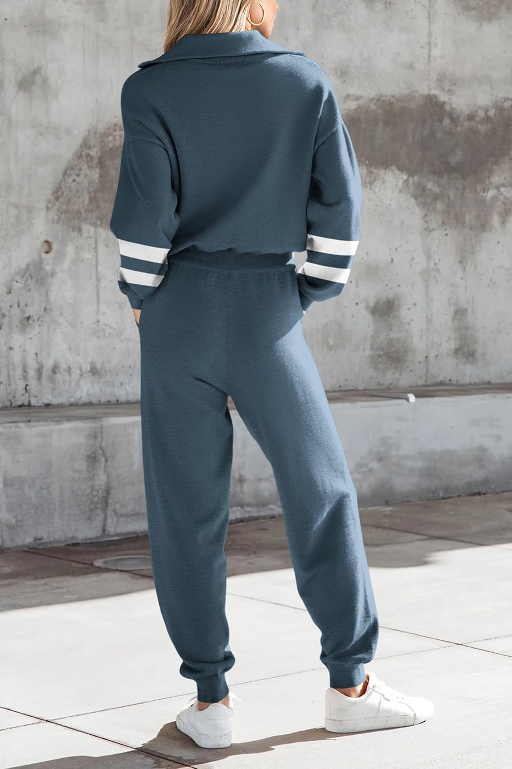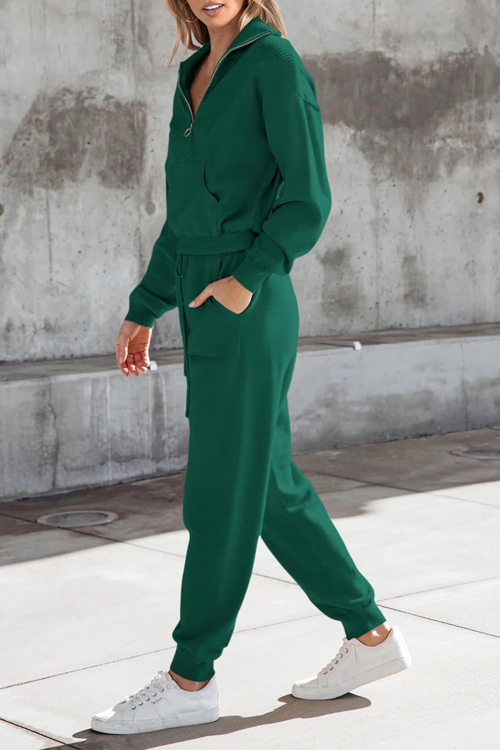 PRETTYGARDEN Women's 2 Piece Sweater Set Pullover Zip Up Sweatshirt Jogger Sweatpants Tracksuit Casual Outfit
