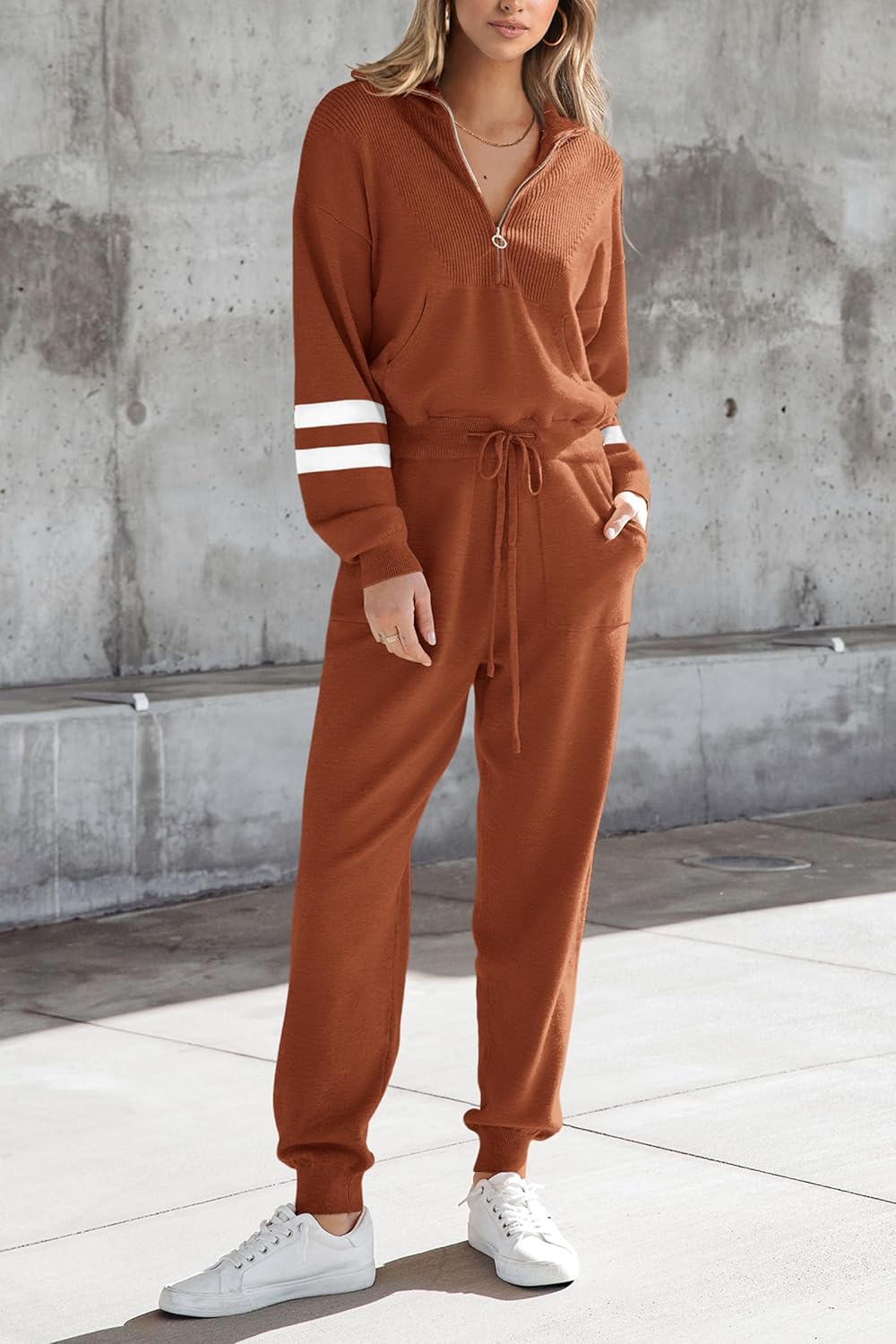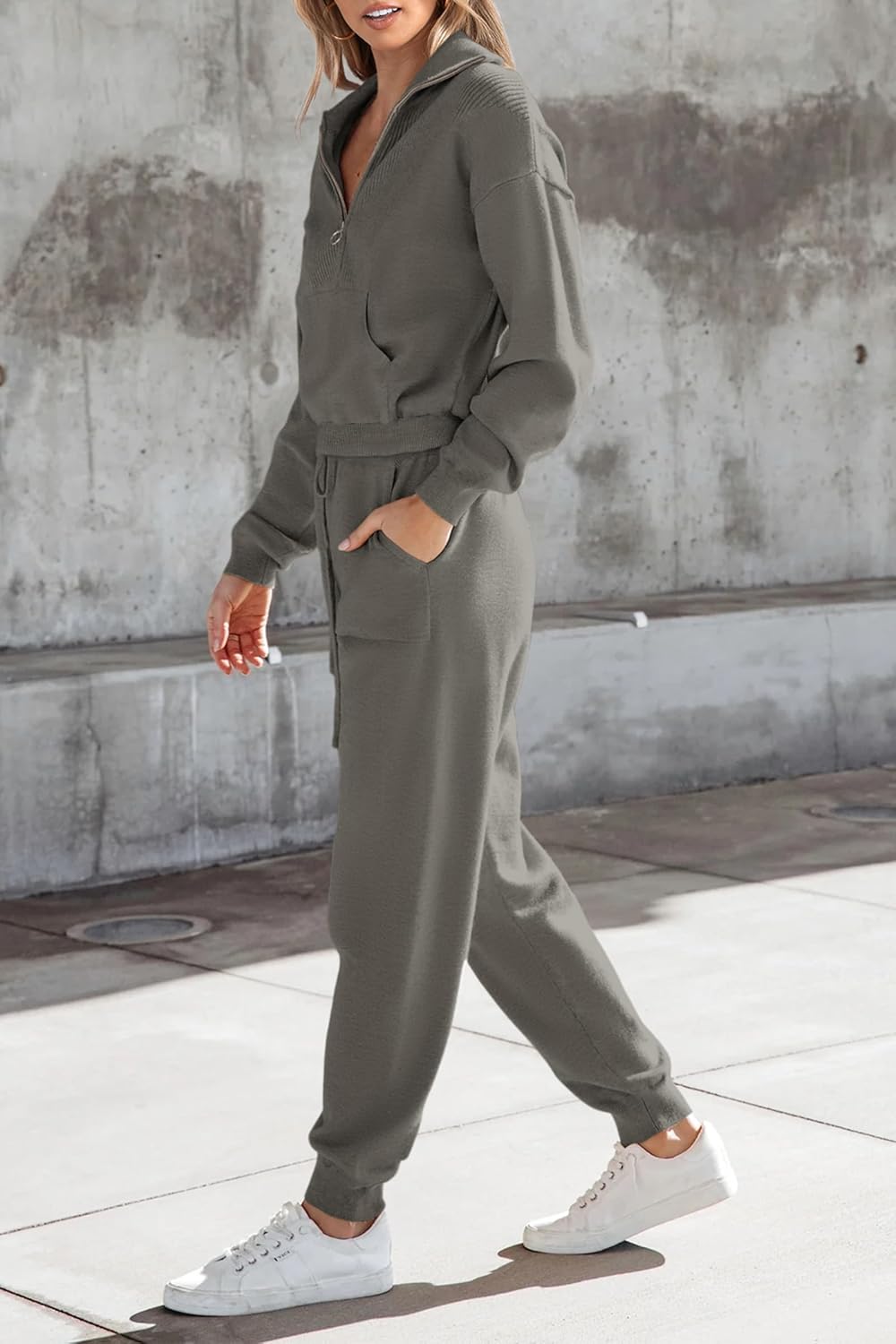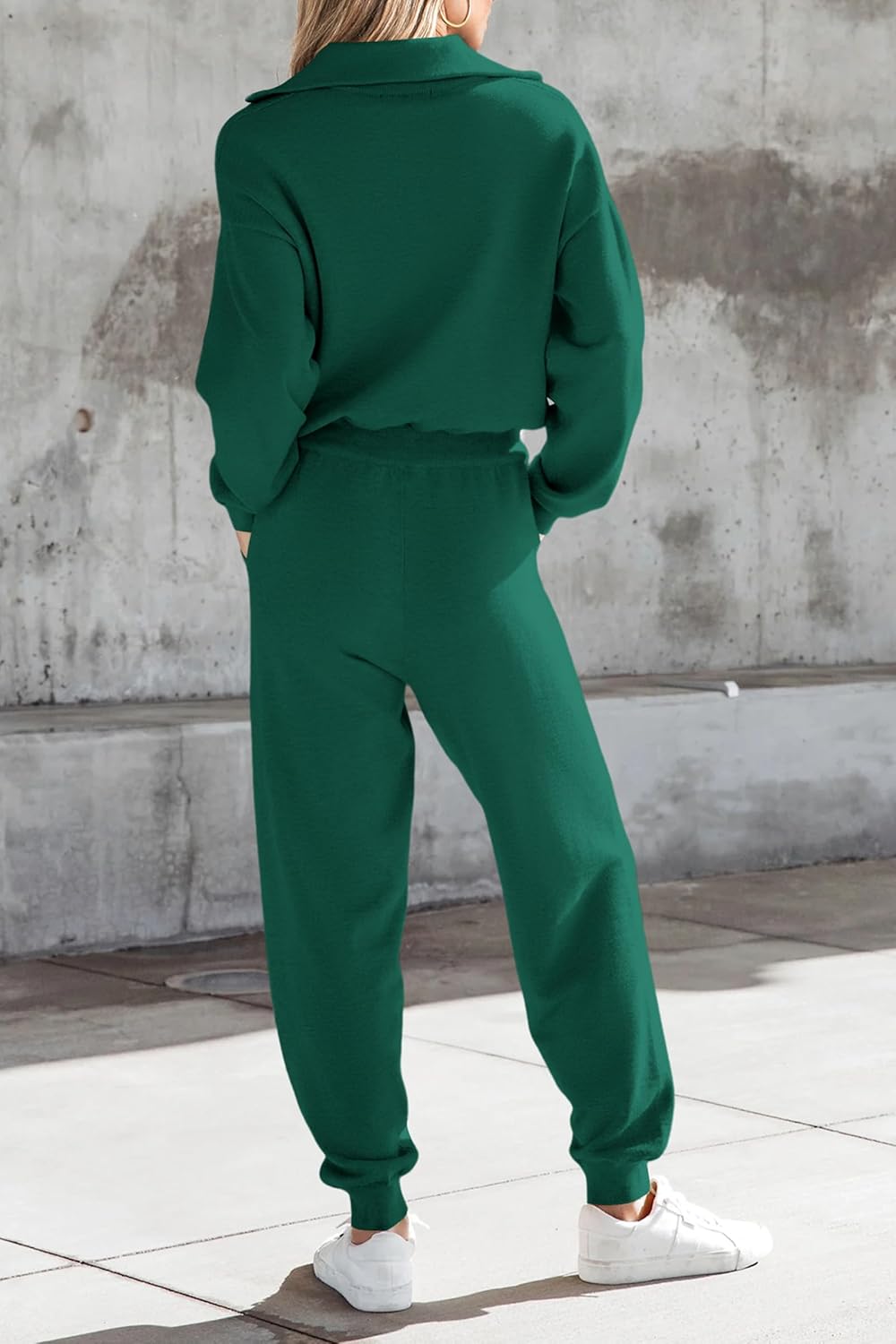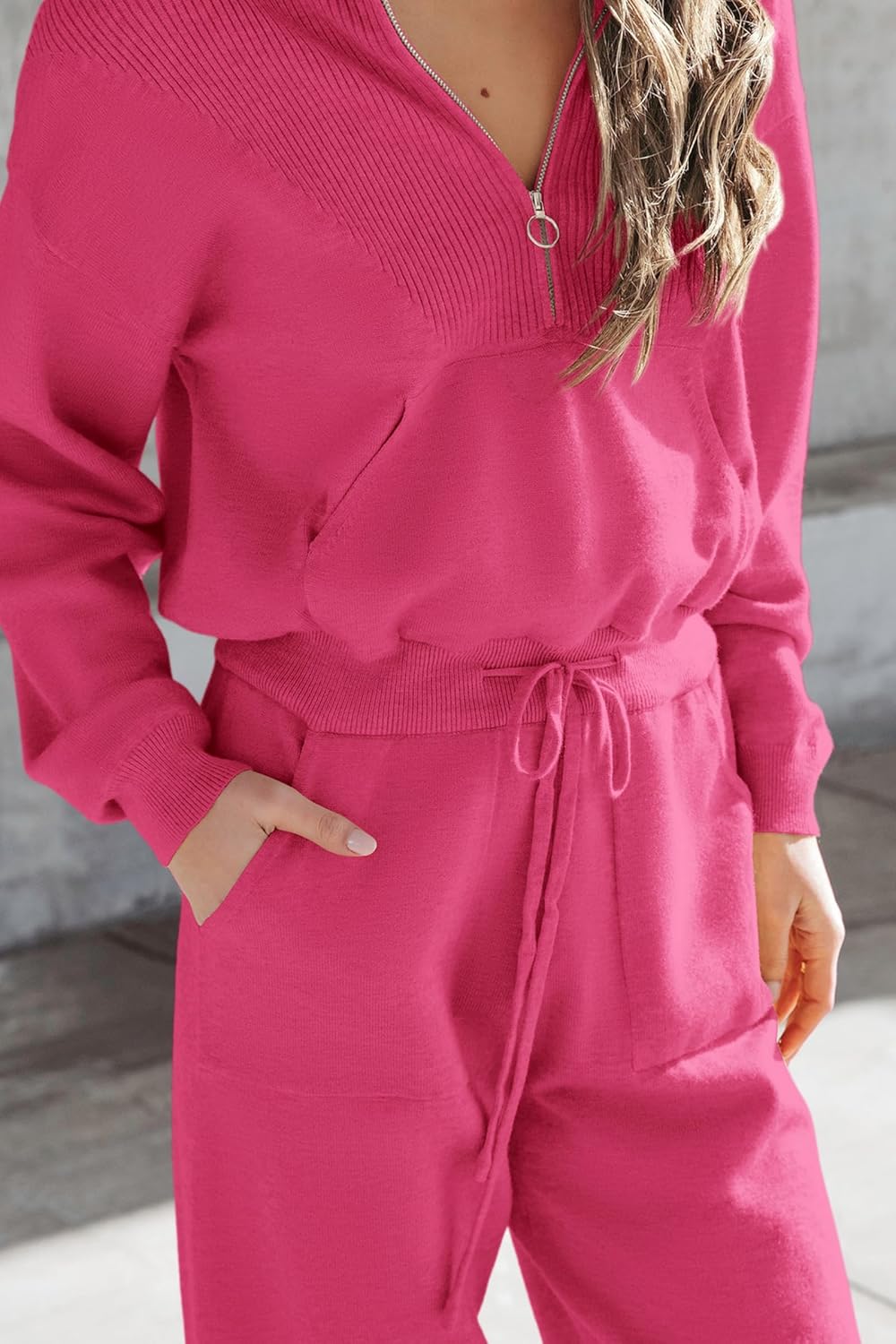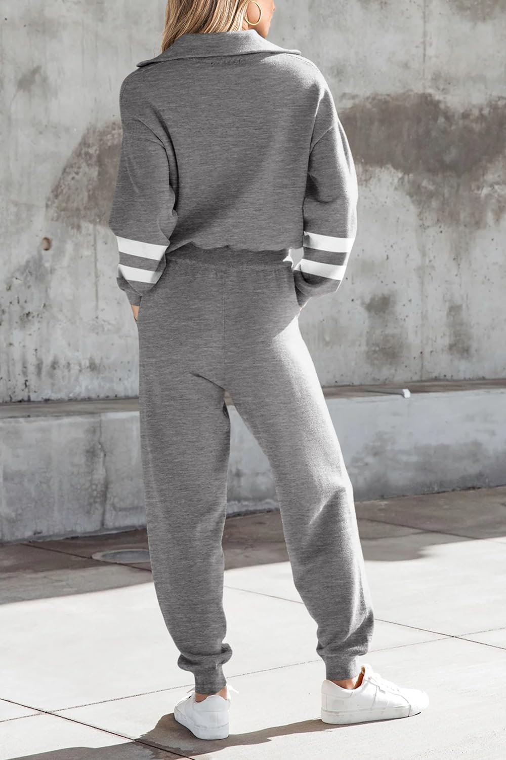 PRETTYGARDEN Women's 2 Piece Sweater Set Pullover Zip Up Sweatshirt Jogger Sweatpants Tracksuit Casual Outfit