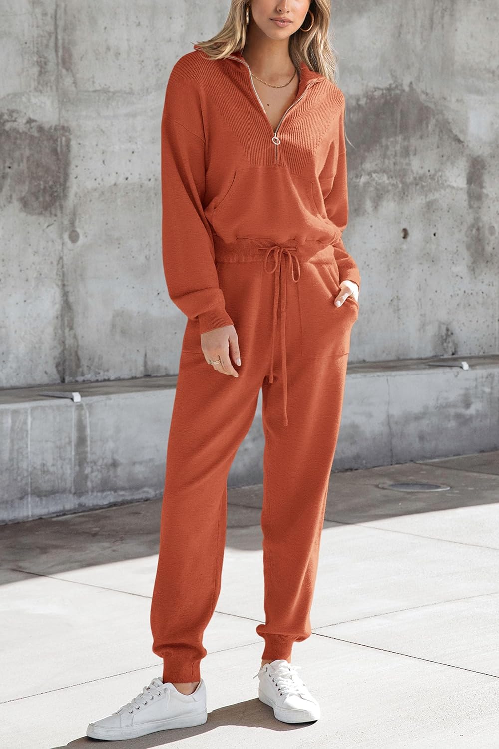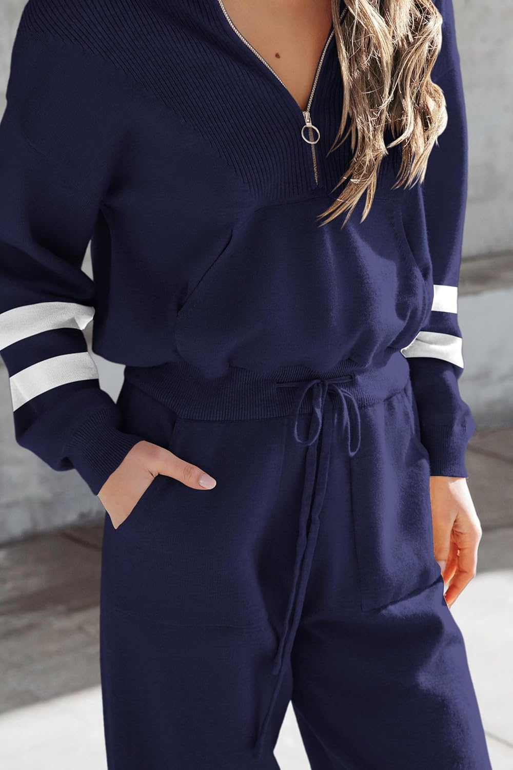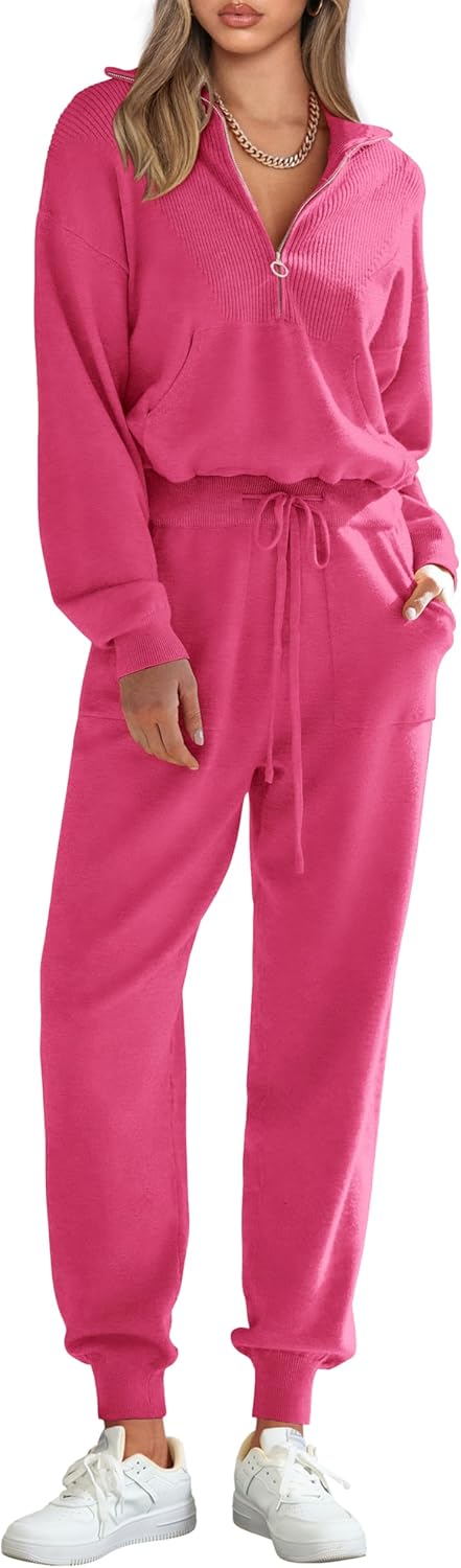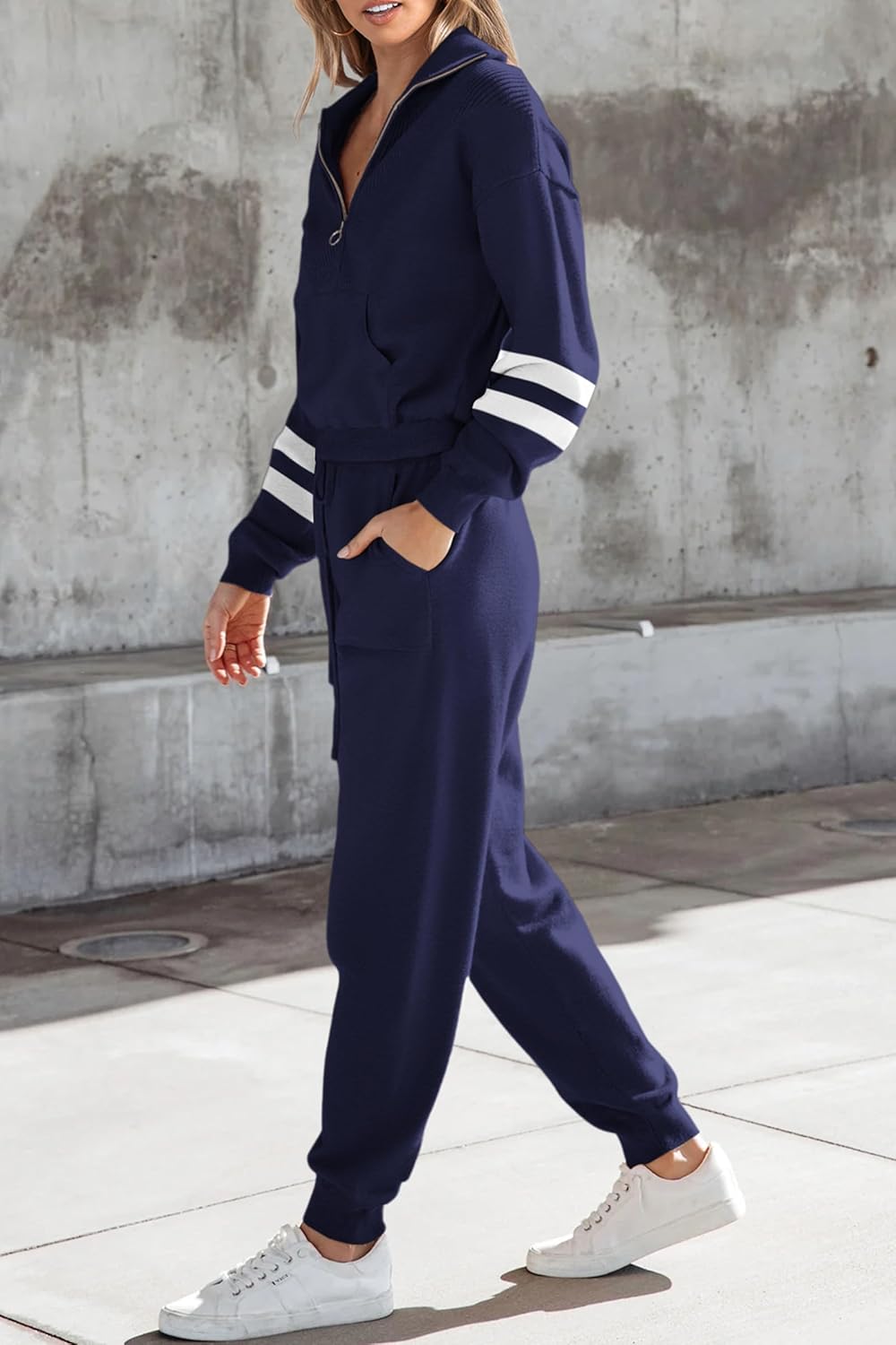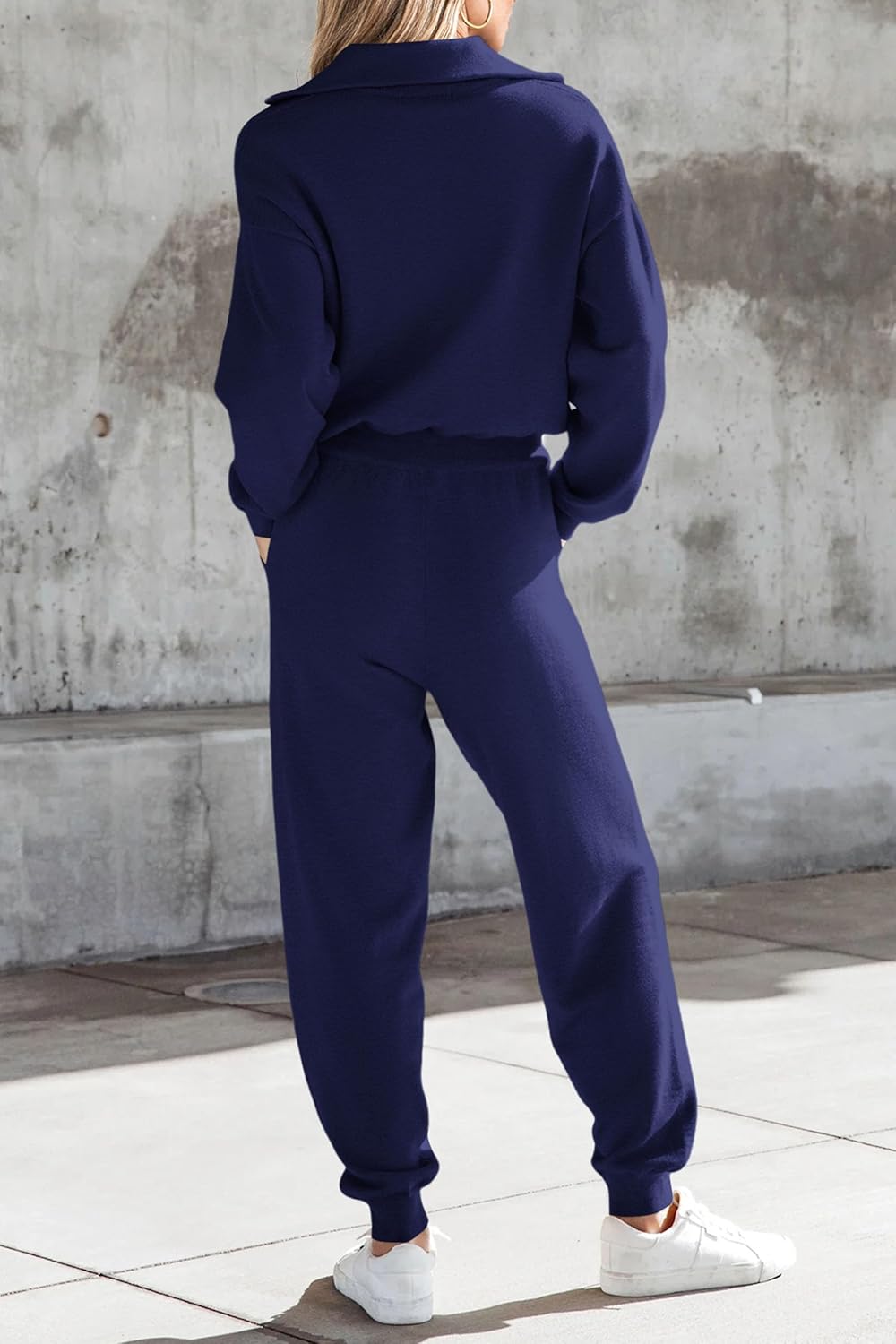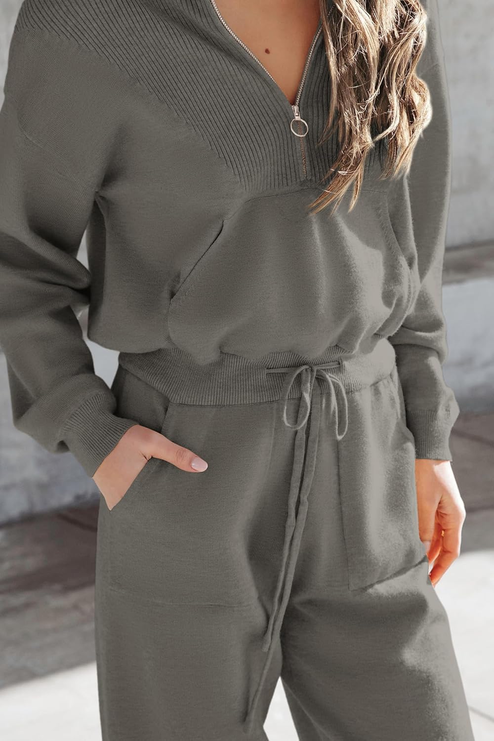PRETTYGARDEN Women's 2 Piece Sweater Set Pullover Zip Up Sweatshirt Jogger Sweatpants Tracksuit Casual Outfit