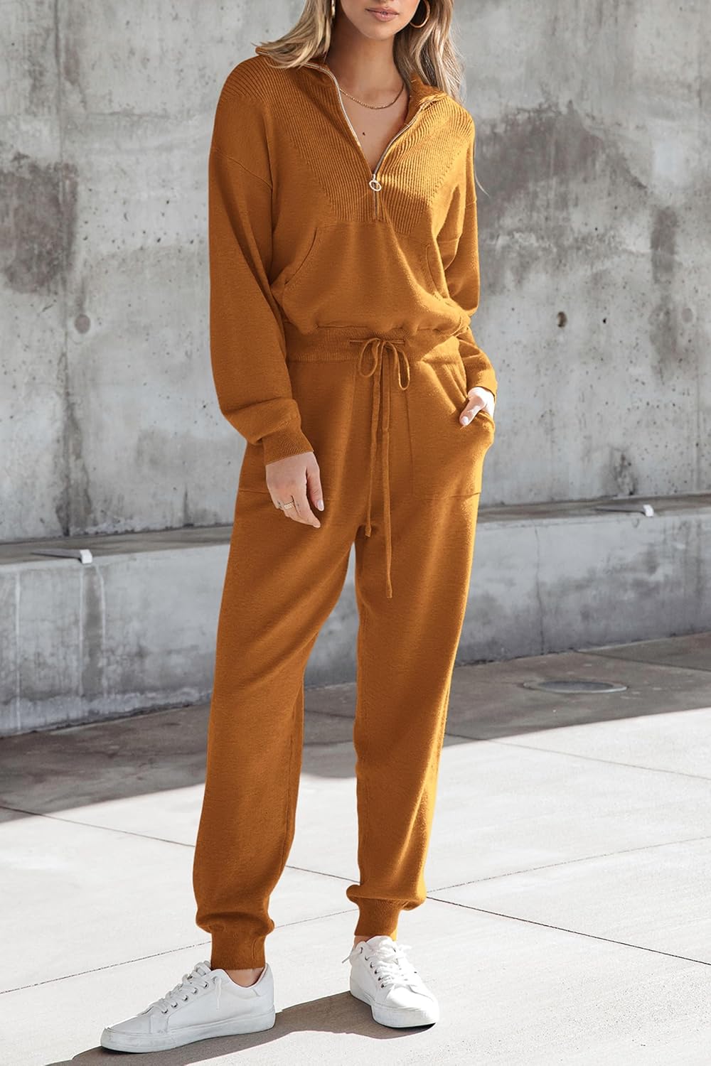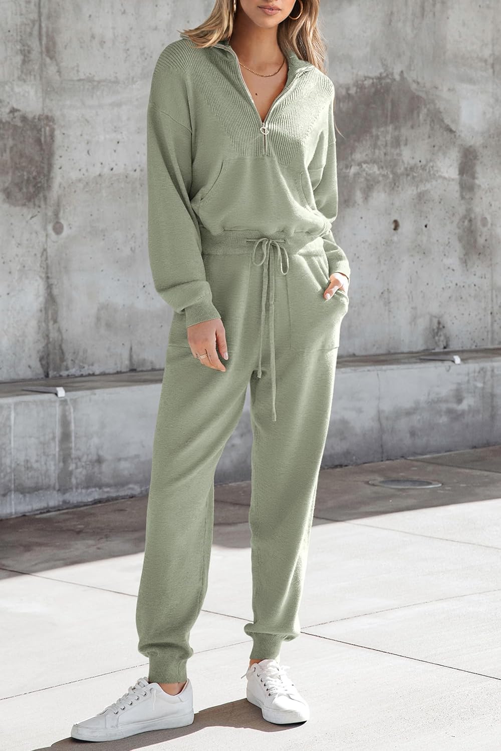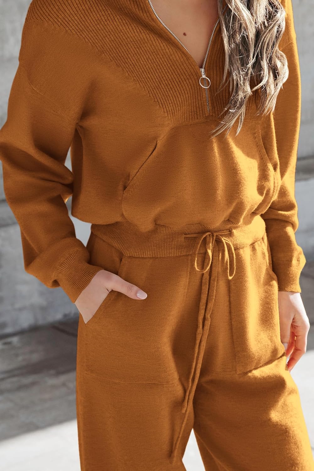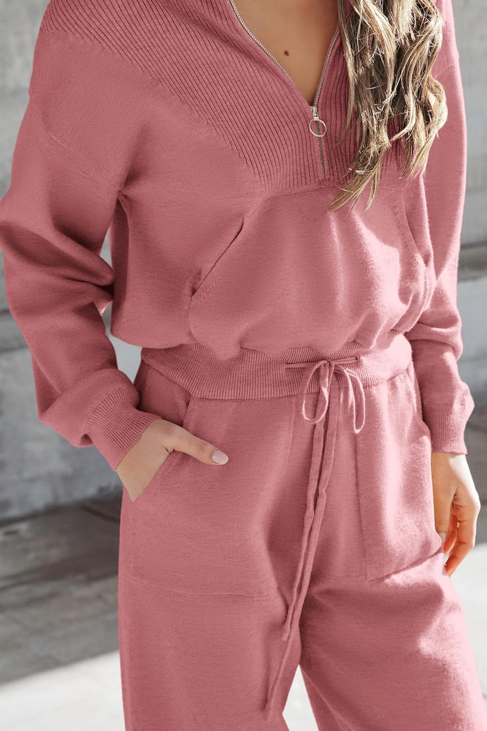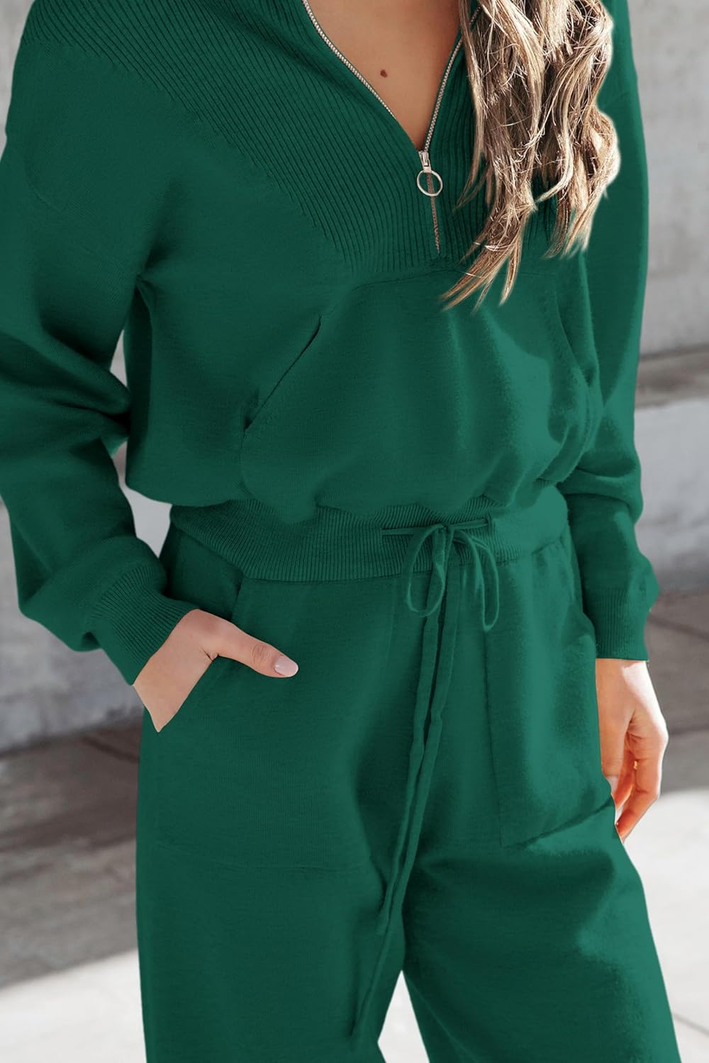PRETTYGARDEN Women's 2 Piece Sweater Set Pullover Zip Up Sweatshirt Jogger Sweatpants Tracksuit Casual Outfit