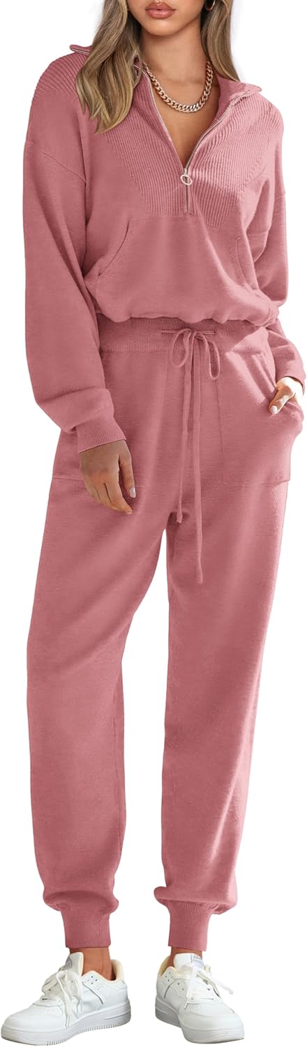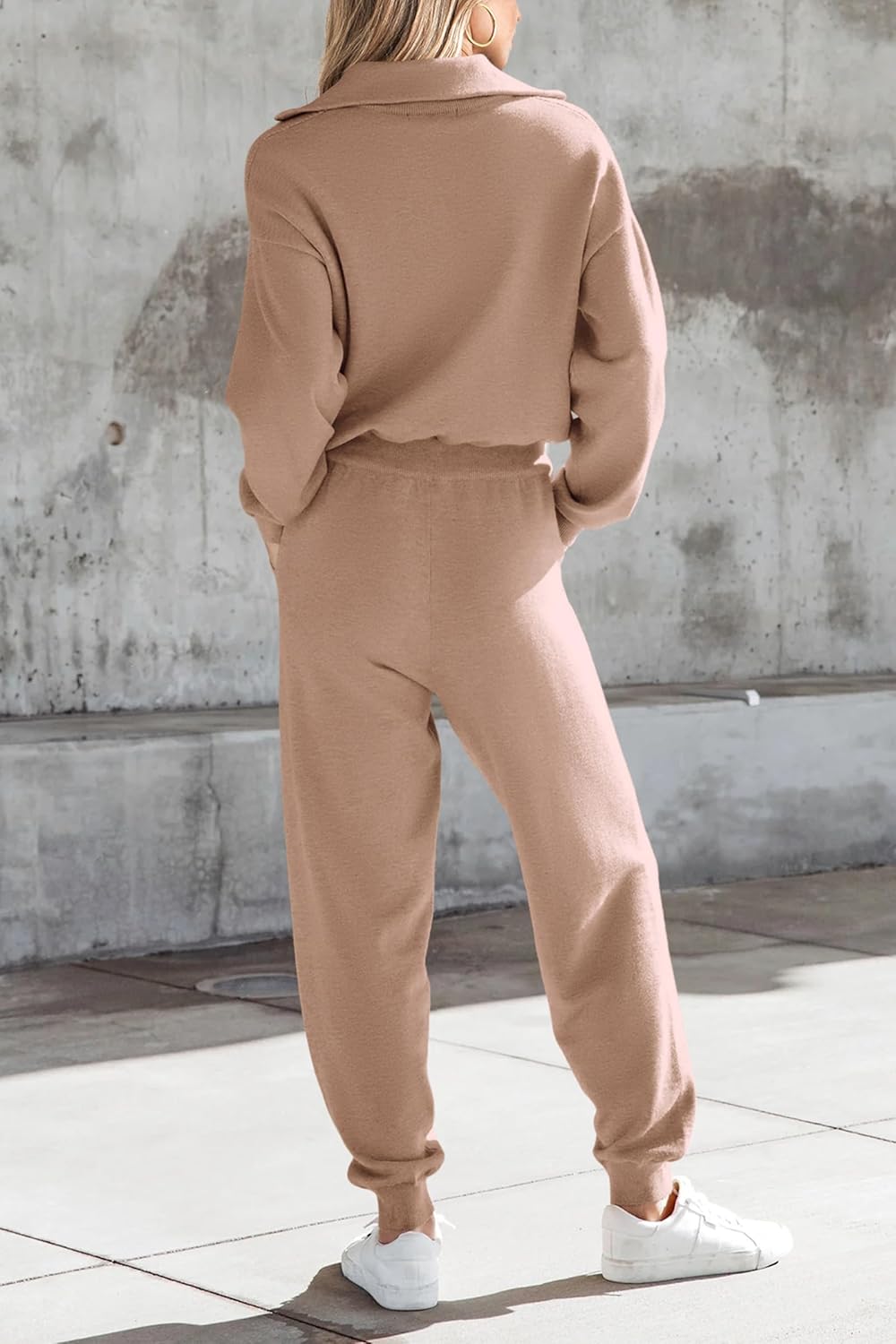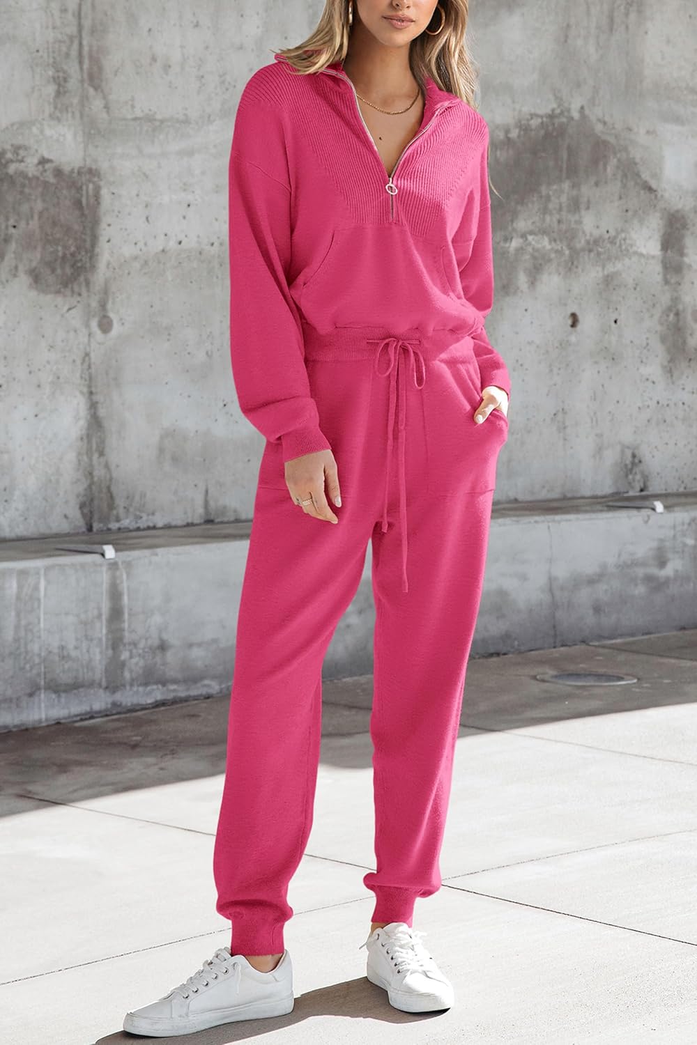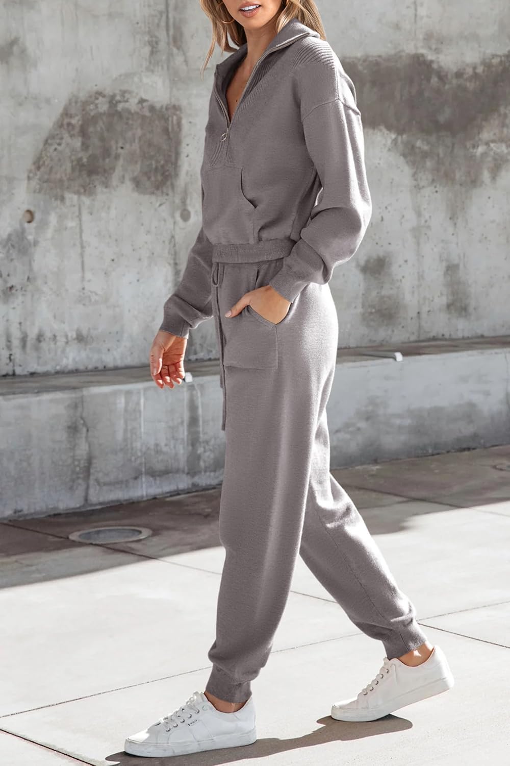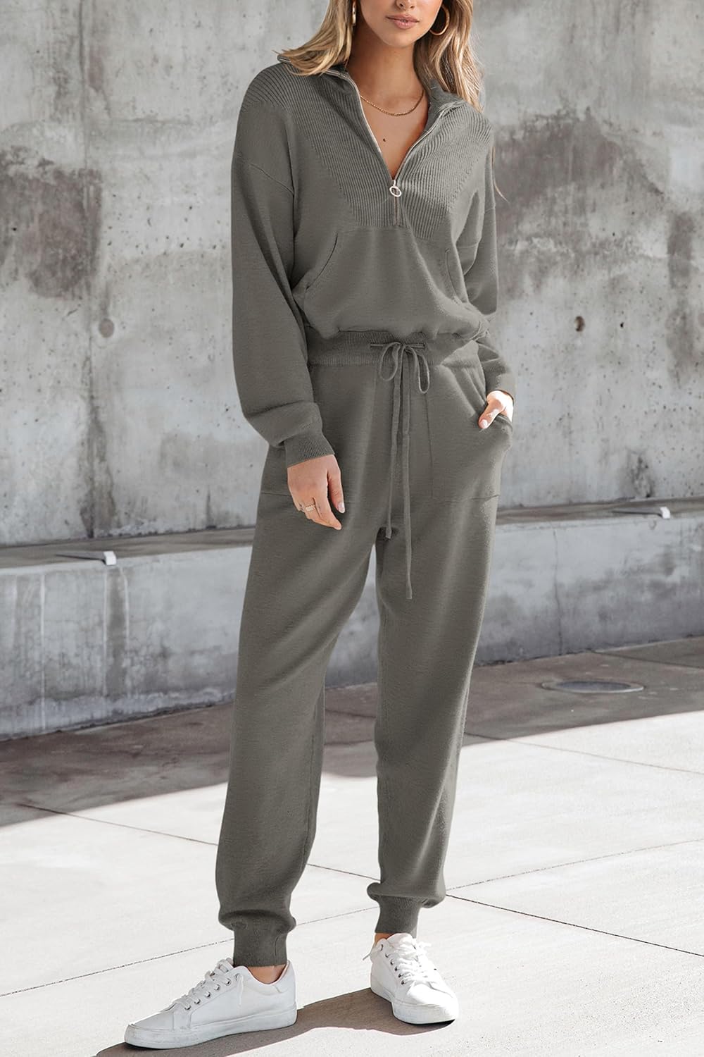 PRETTYGARDEN Women's 2 Piece Sweater Set Pullover Zip Up Sweatshirt Jogger Sweatpants Tracksuit Casual Outfit