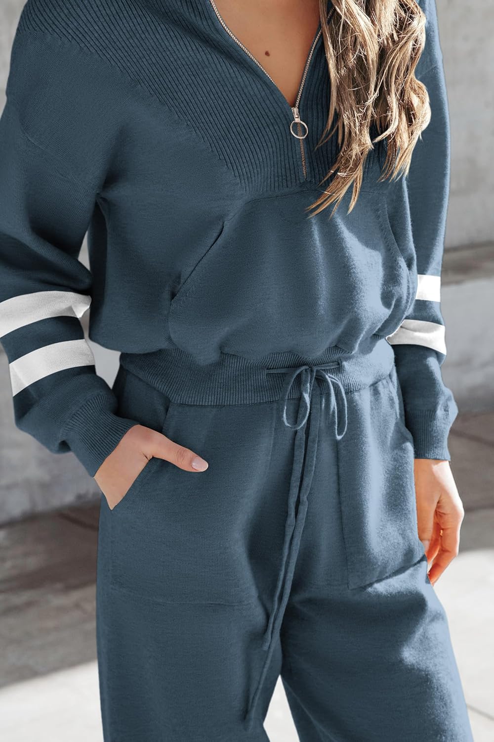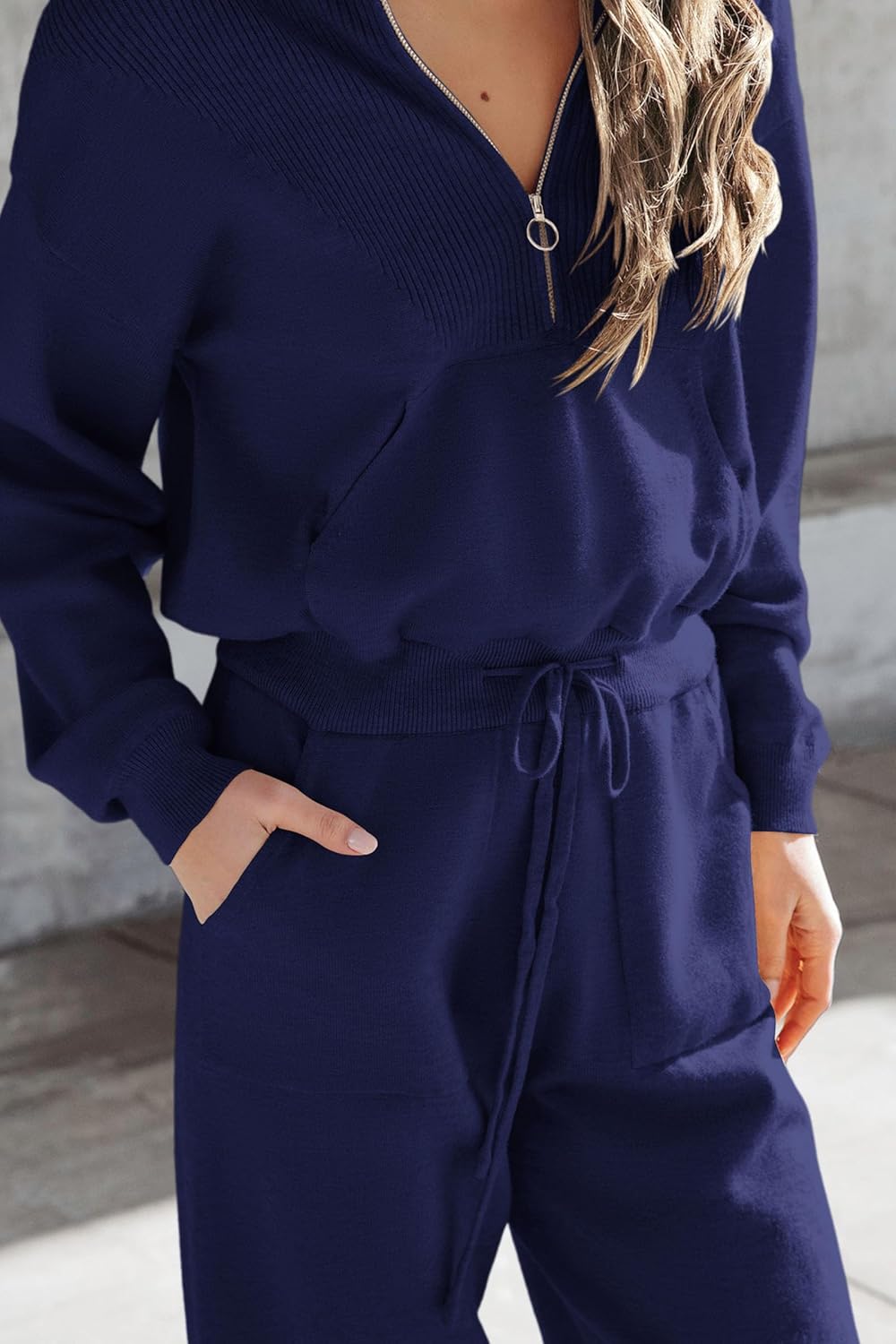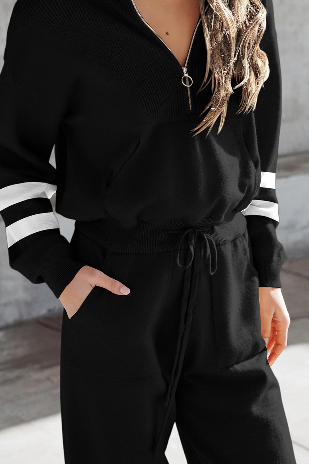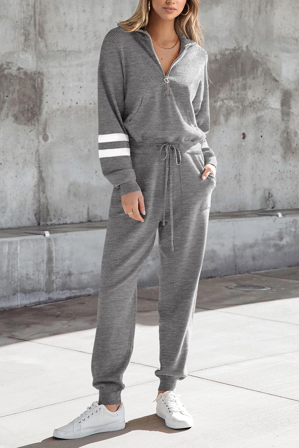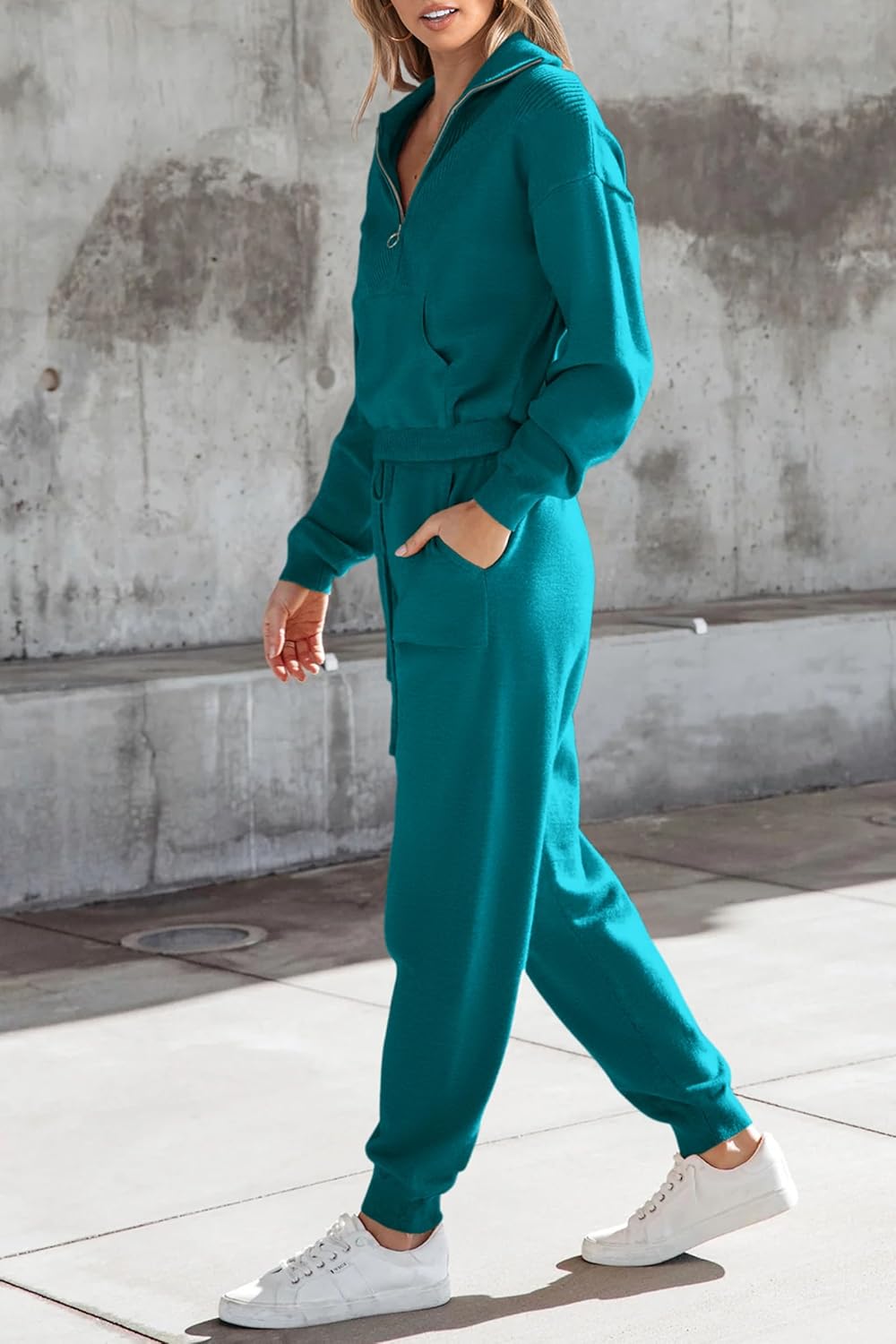PRETTYGARDEN Women's 2 Piece Sweater Set Pullover Zip Up Sweatshirt Jogger Sweatpants Tracksuit Casual Outfit