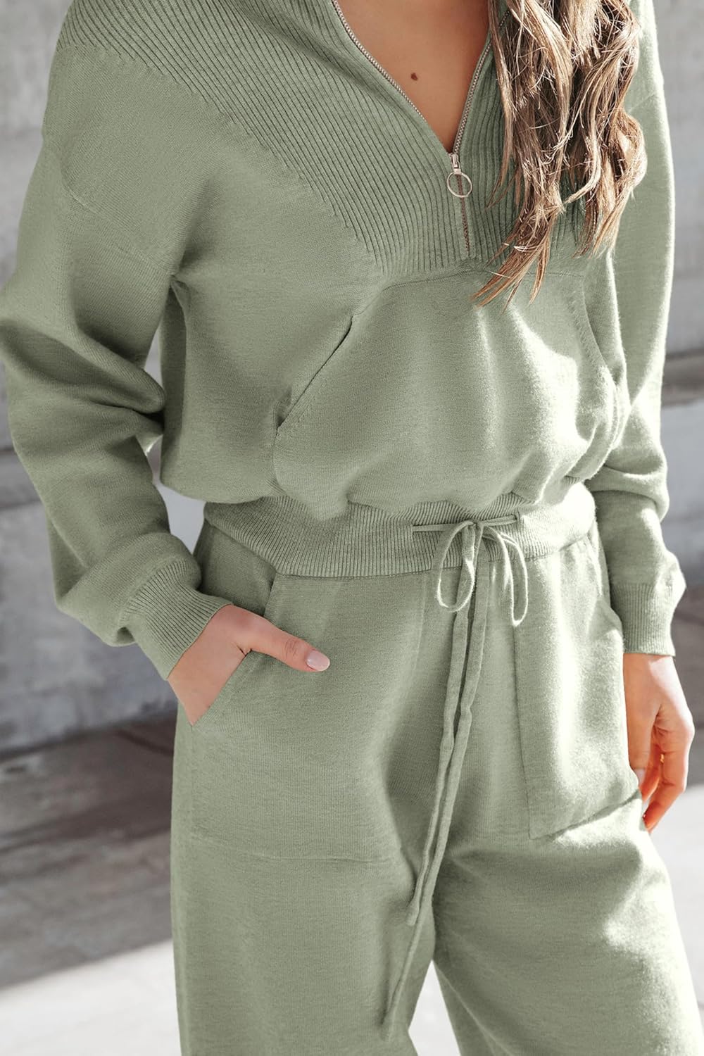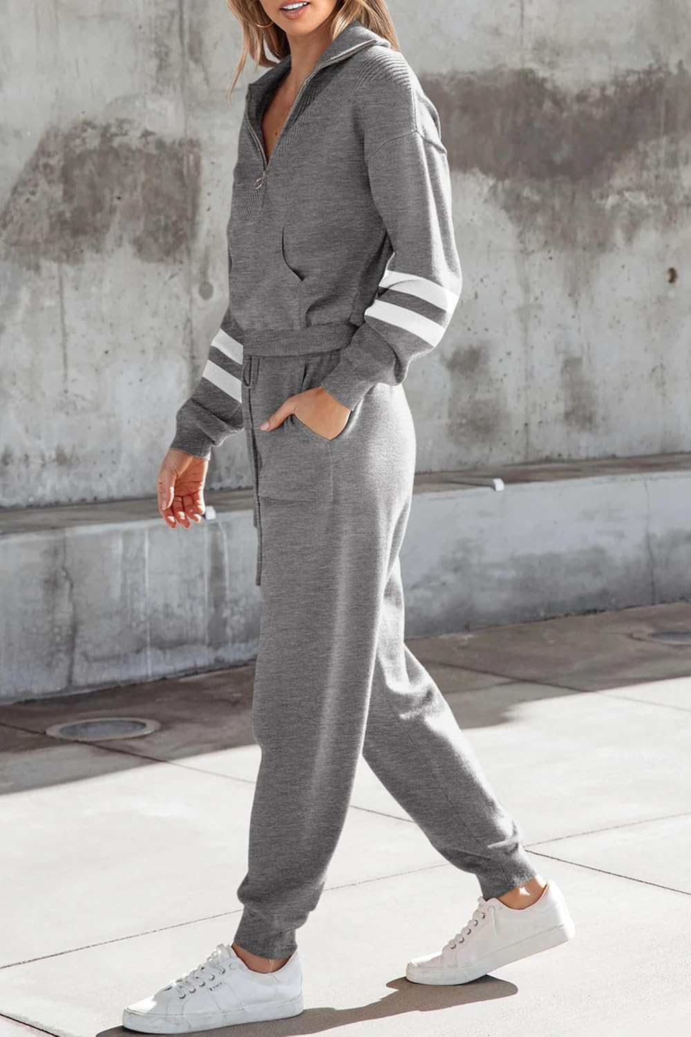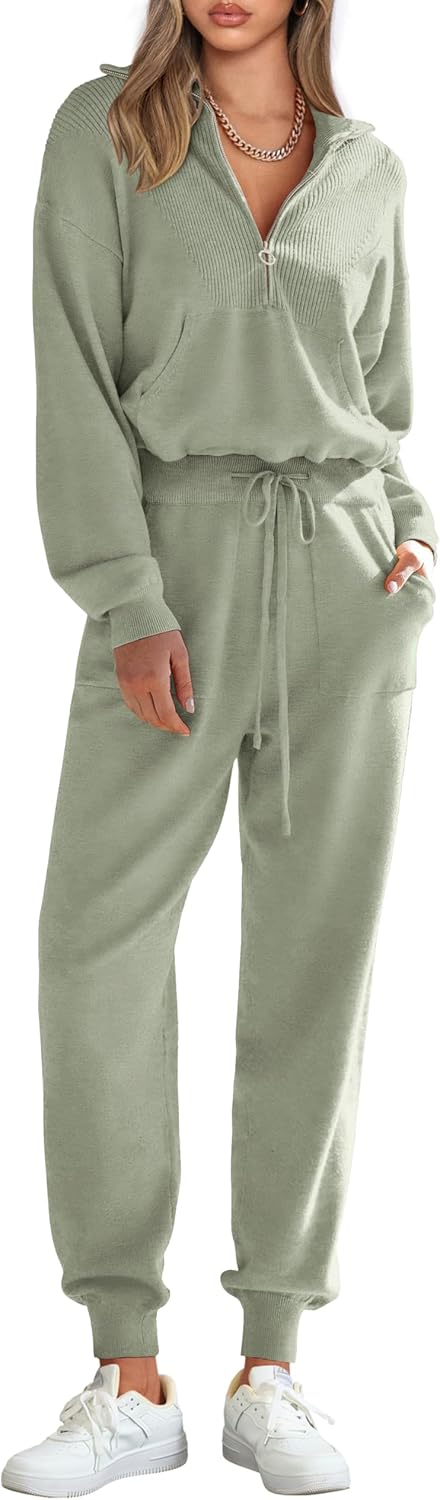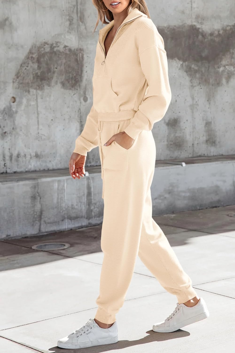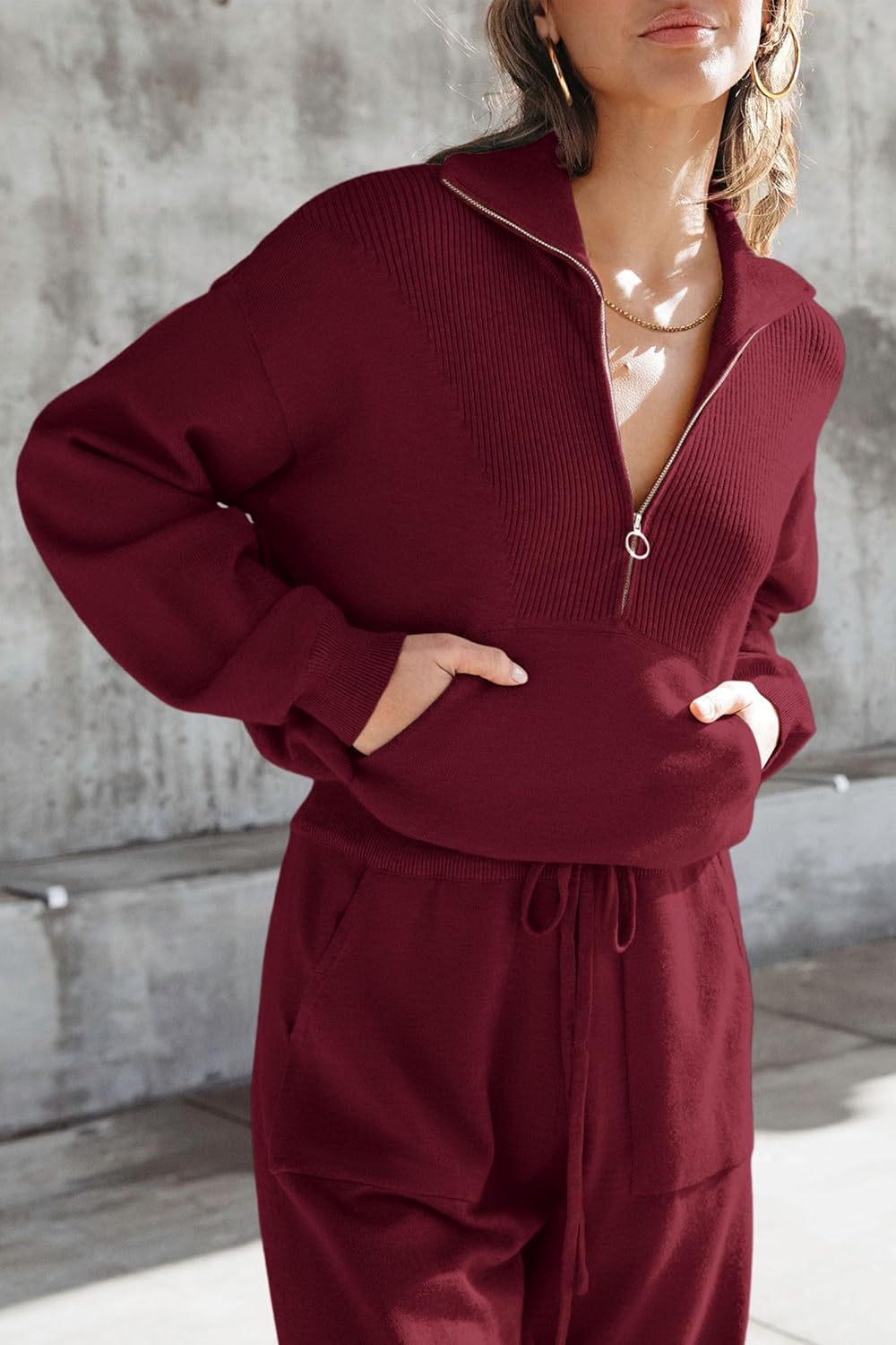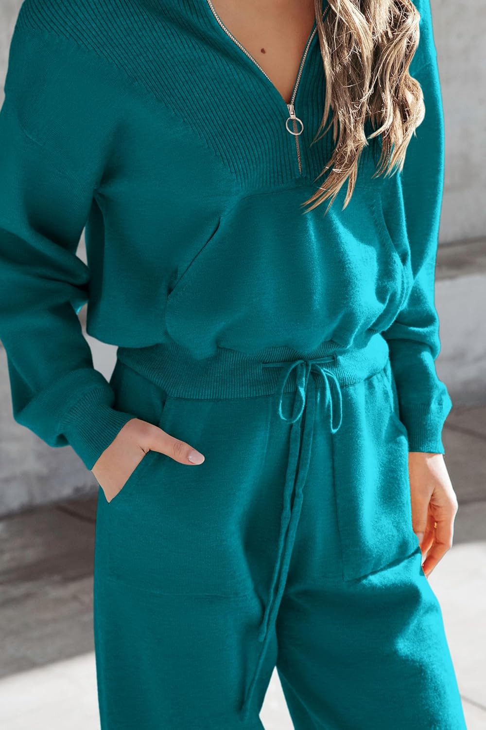 PRETTYGARDEN Women's 2 Piece Sweater Set Pullover Zip Up Sweatshirt Jogger Sweatpants Tracksuit Casual Outfit