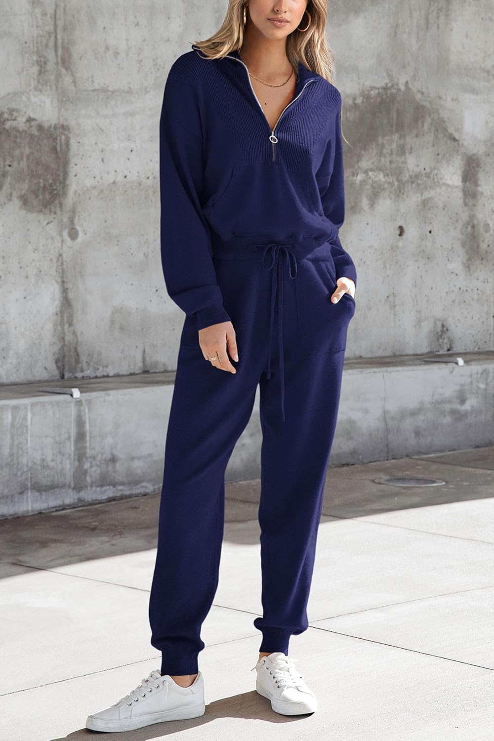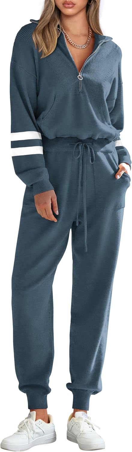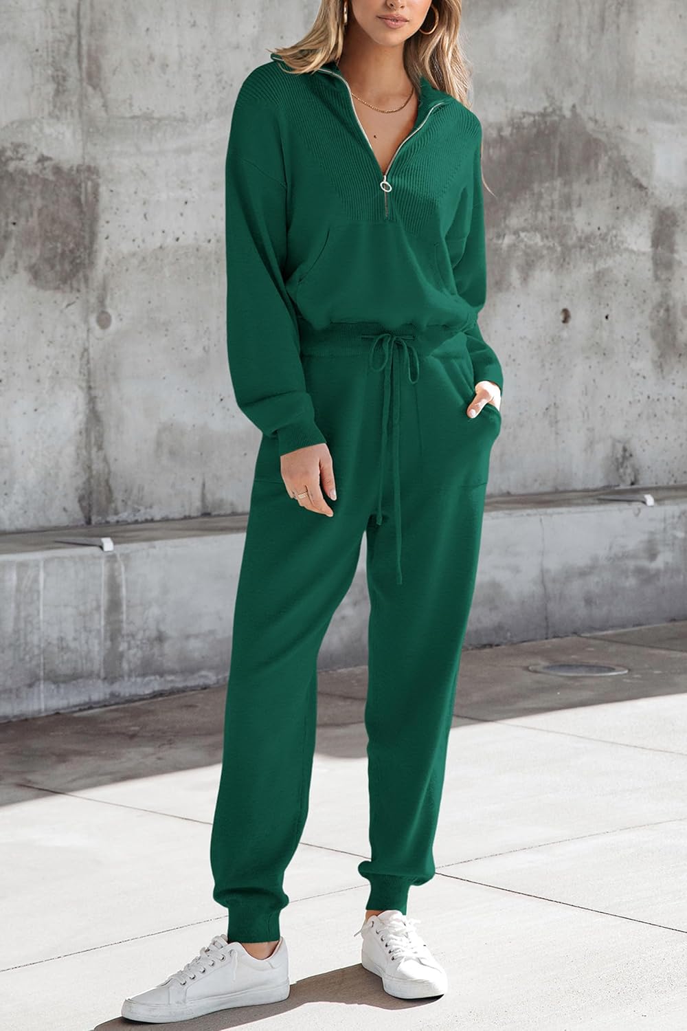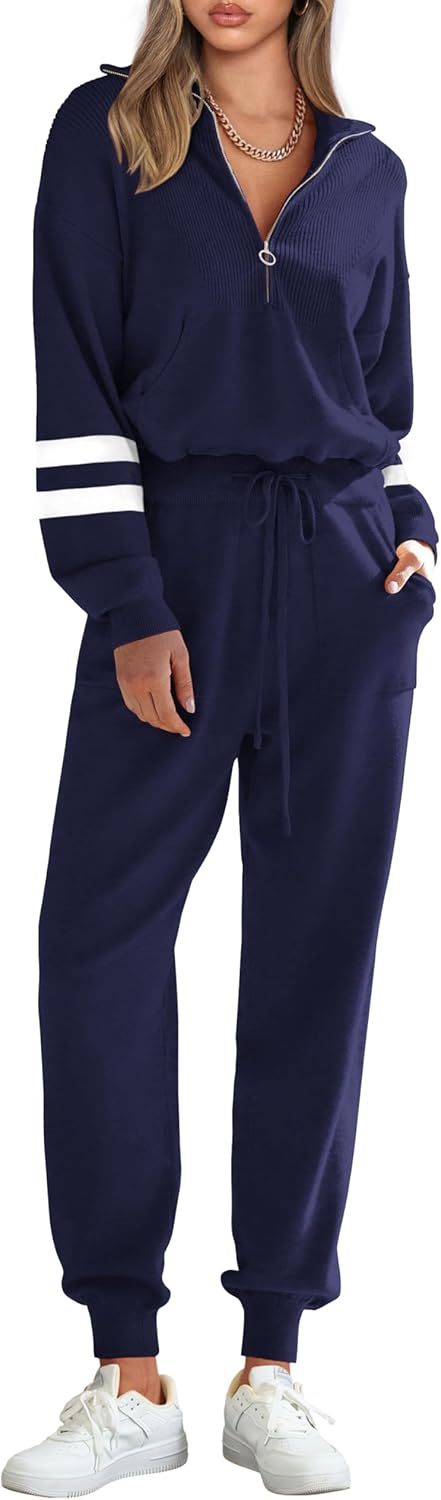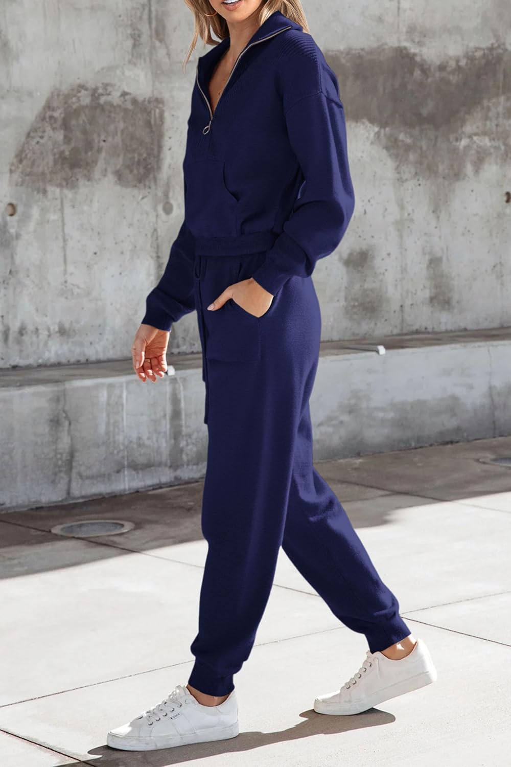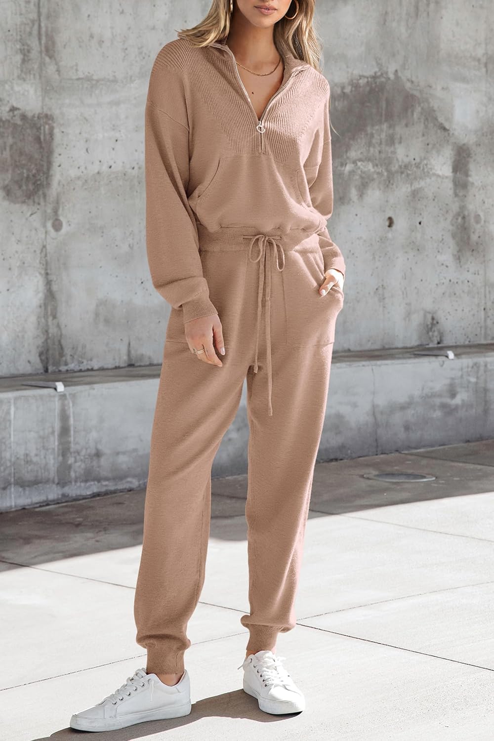 PRETTYGARDEN Women's 2 Piece Sweater Set Pullover Zip Up Sweatshirt Jogger Sweatpants Tracksuit Casual Outfit