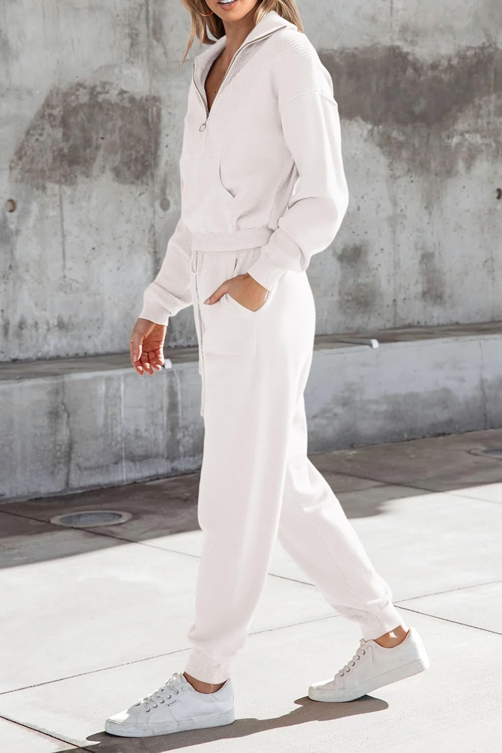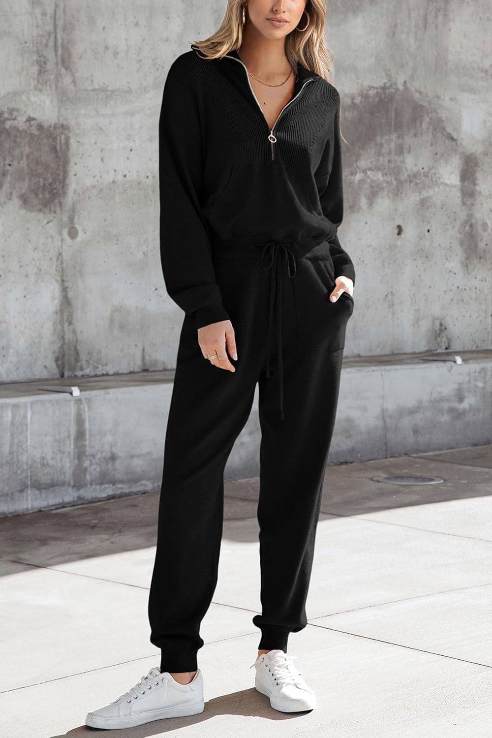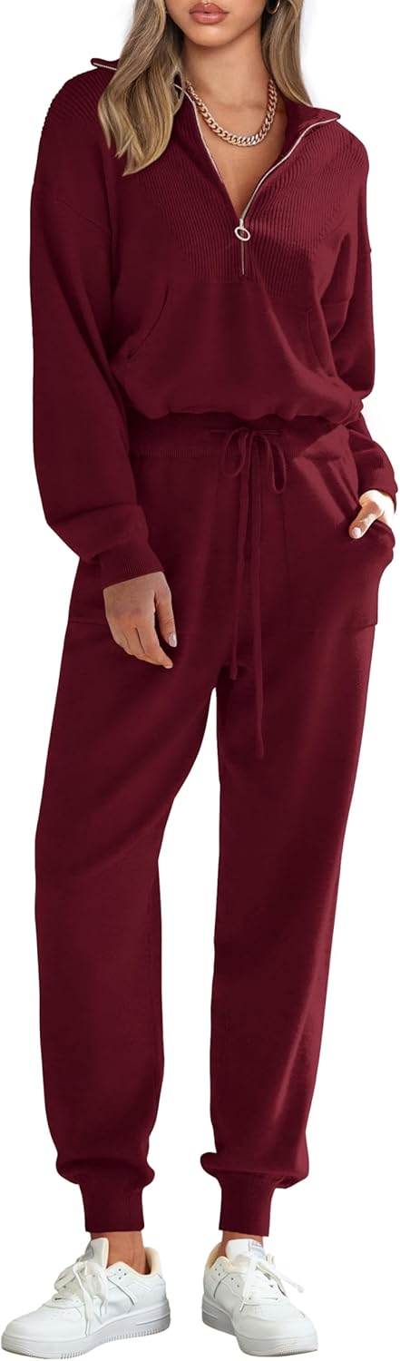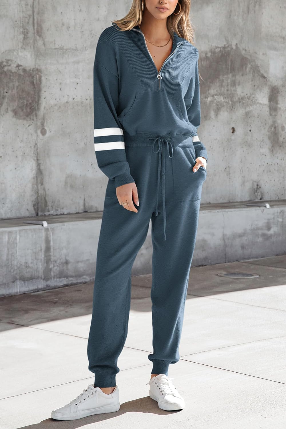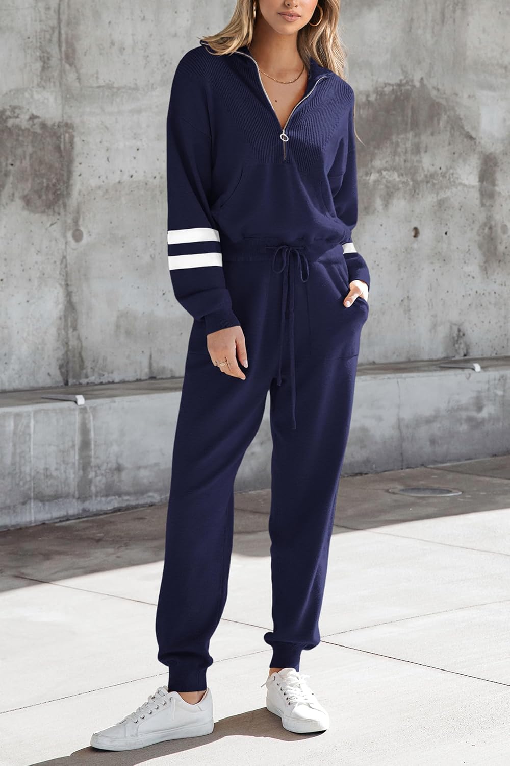 PRETTYGARDEN Women's 2 Piece Sweater Set Pullover Zip Up Sweatshirt Jogger Sweatpants Tracksuit Casual Outfit