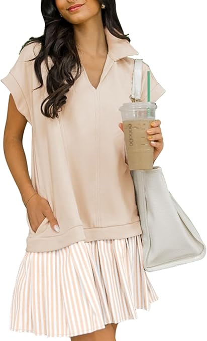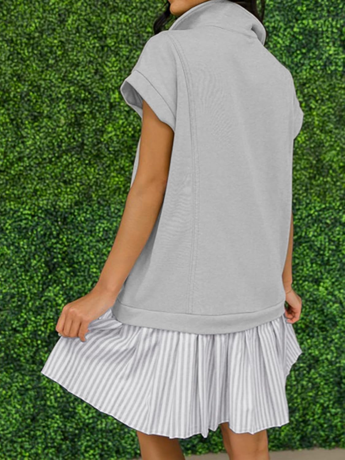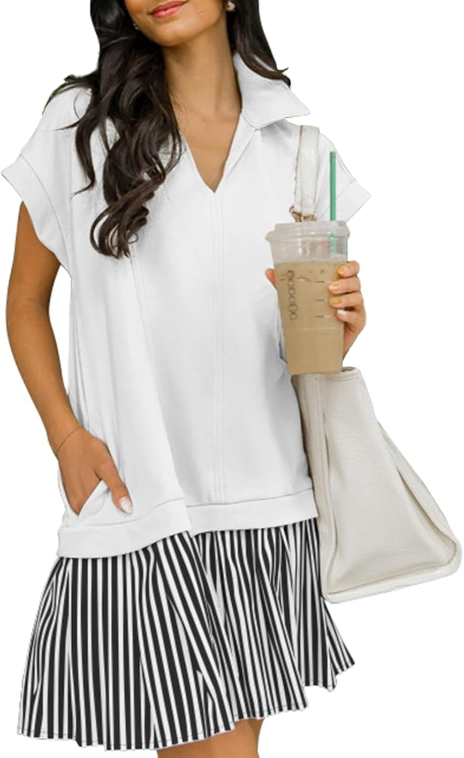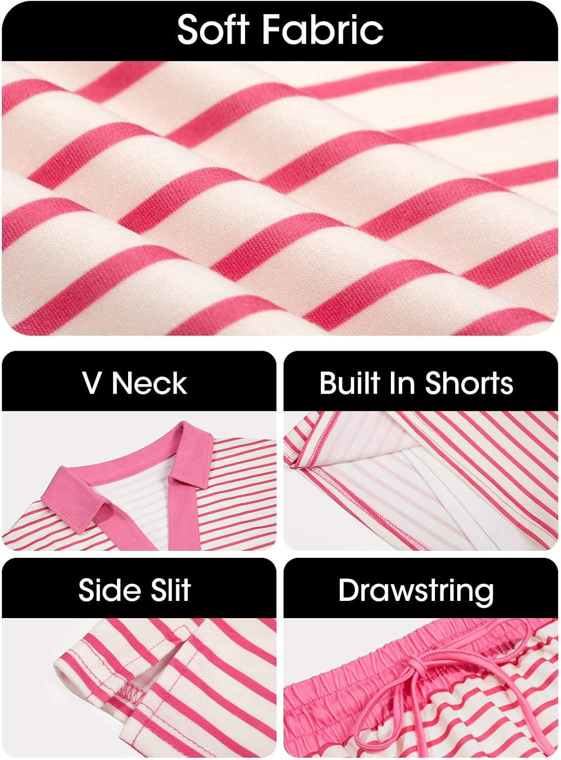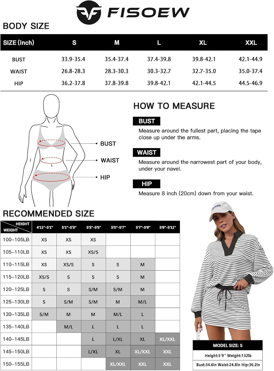 Fisoew Womens Striped 2 Piece Outfits Casual Sweatshirt Skirt Set Long Sleeve Skort Workout Set Matching Lounge Sets