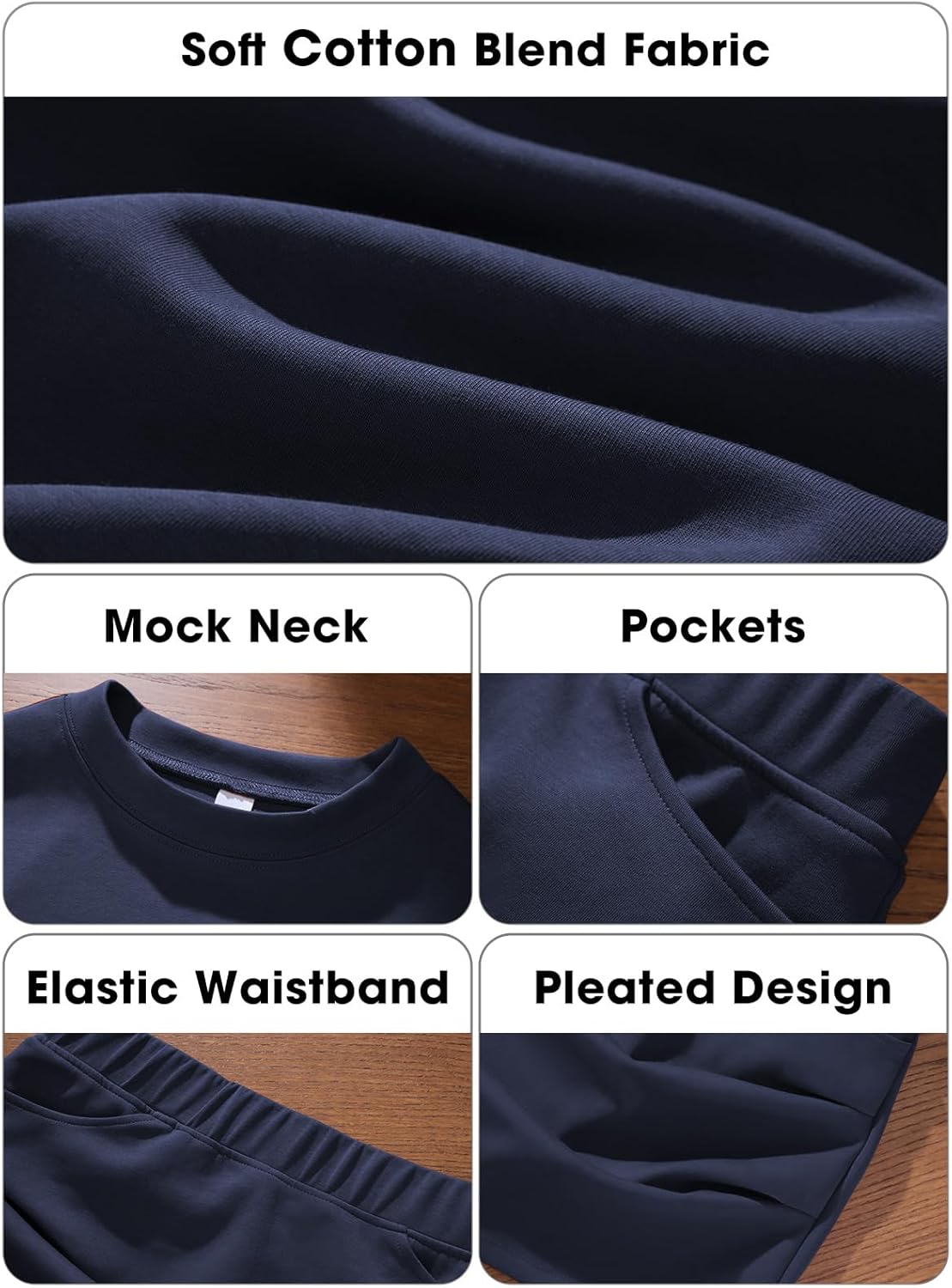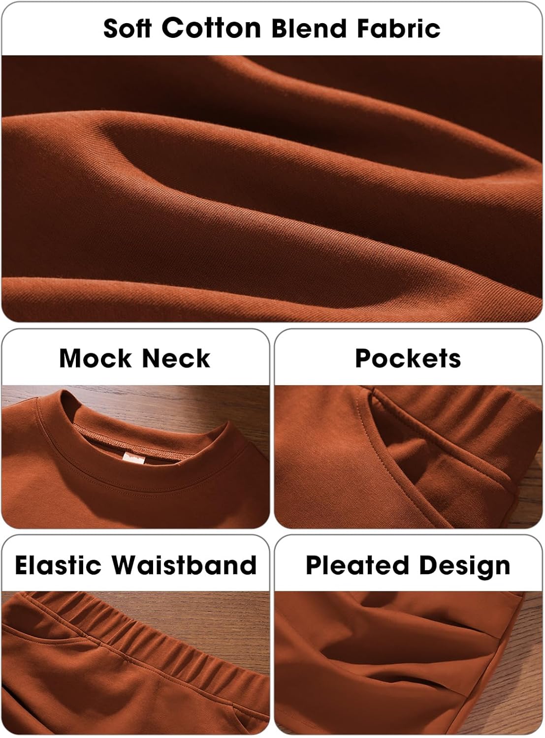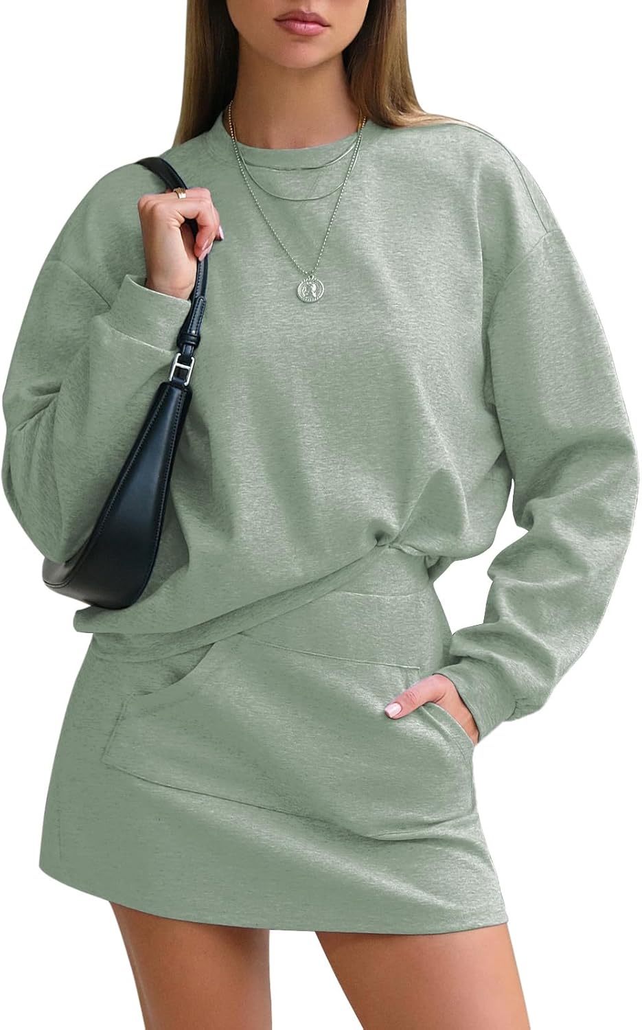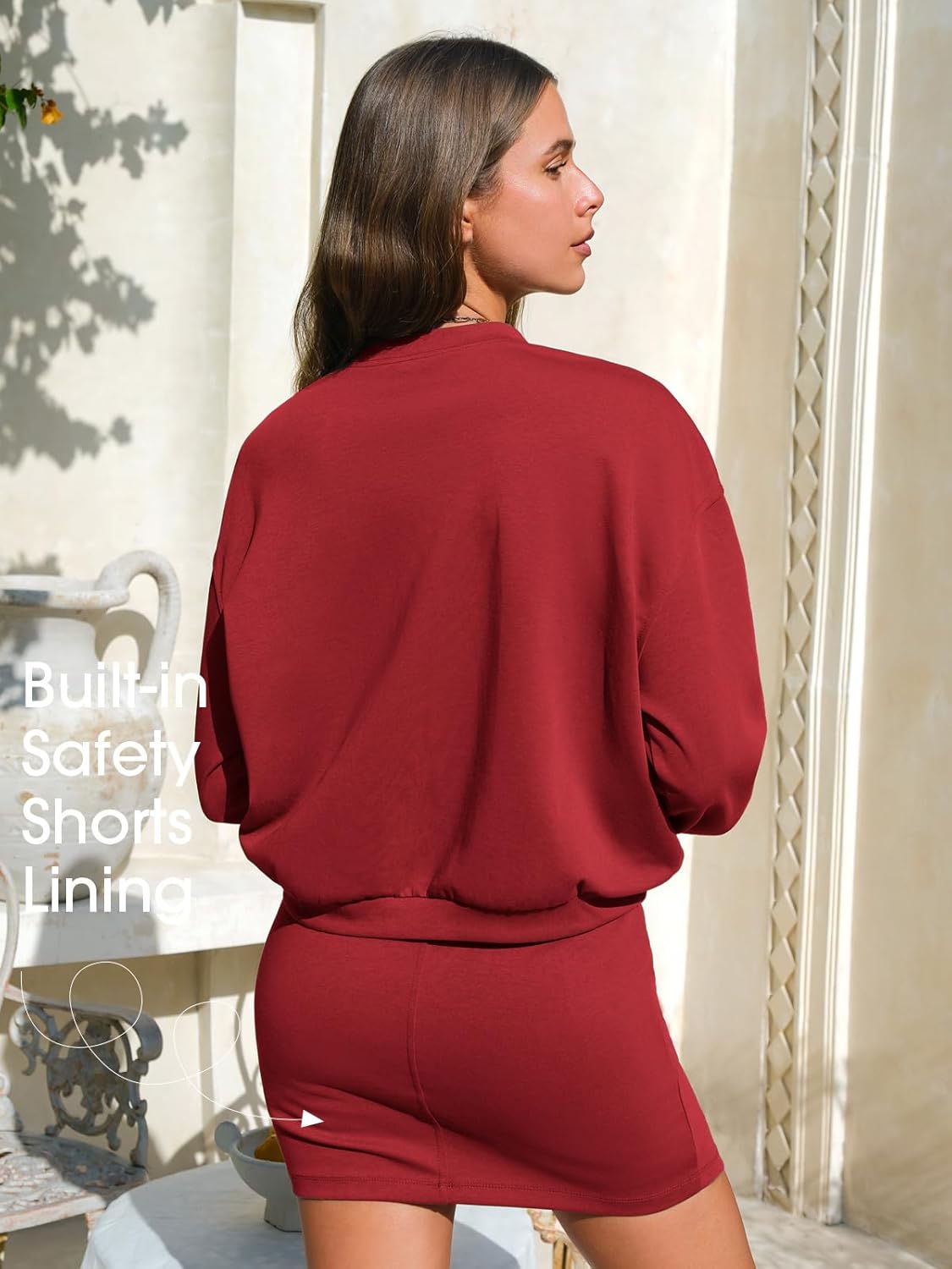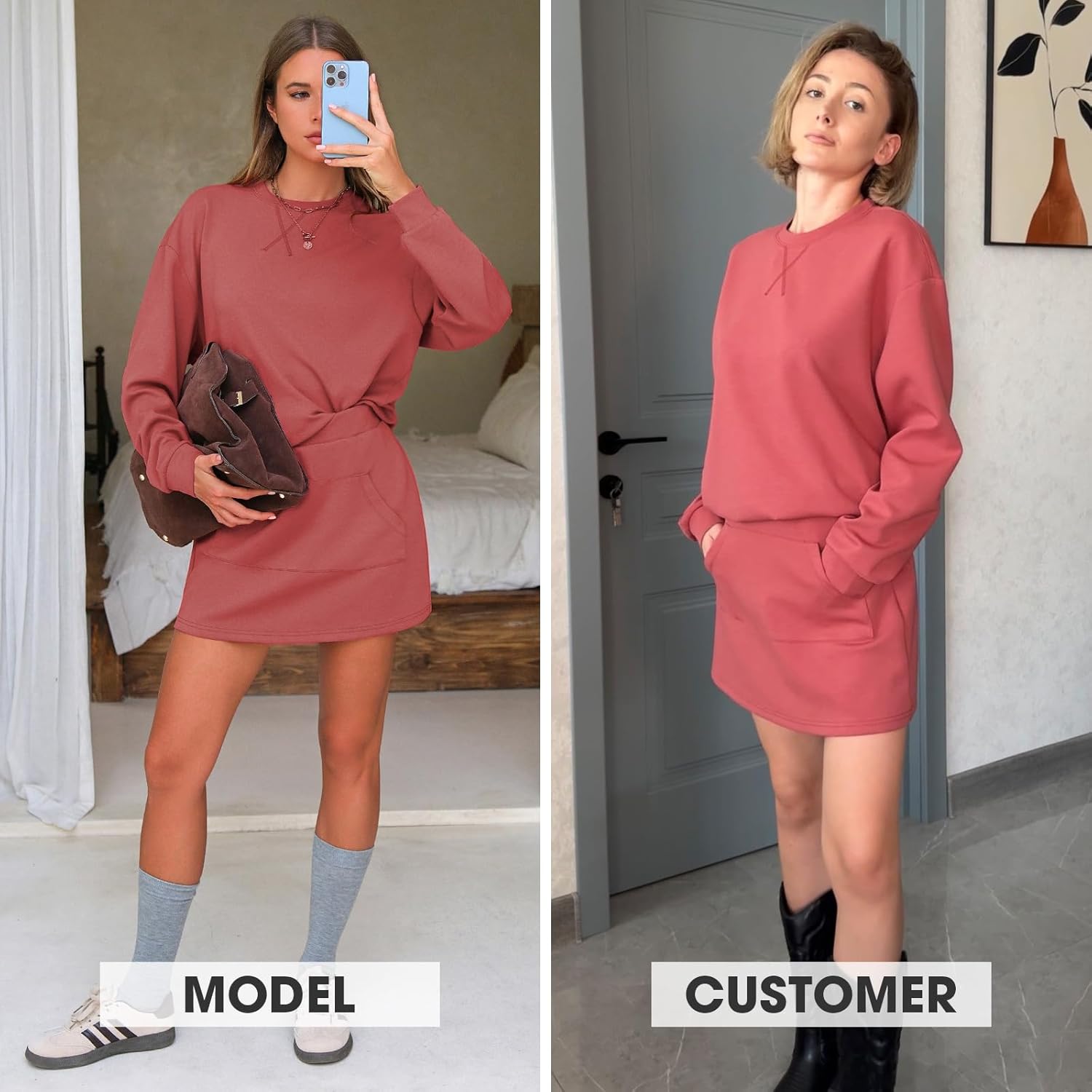 EXLURA Women 2 Piece Sets Cotton Tracksuits Workout Set Crewneck Sweatshirt Skort Short Skirt Fall Tennis Sweat Suits Pockets