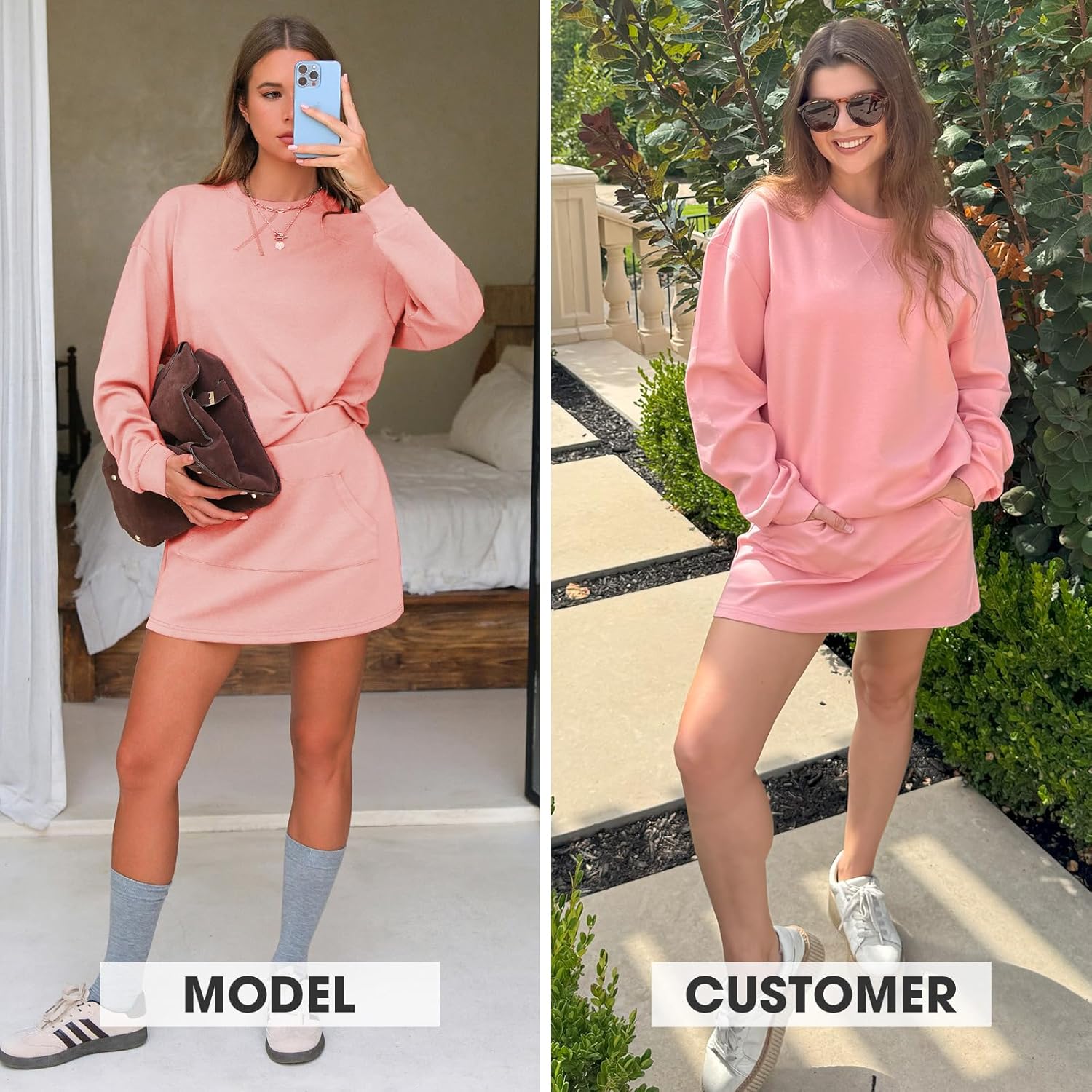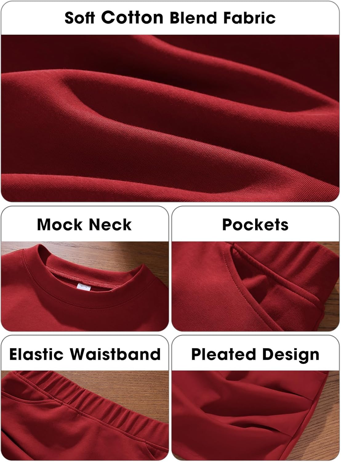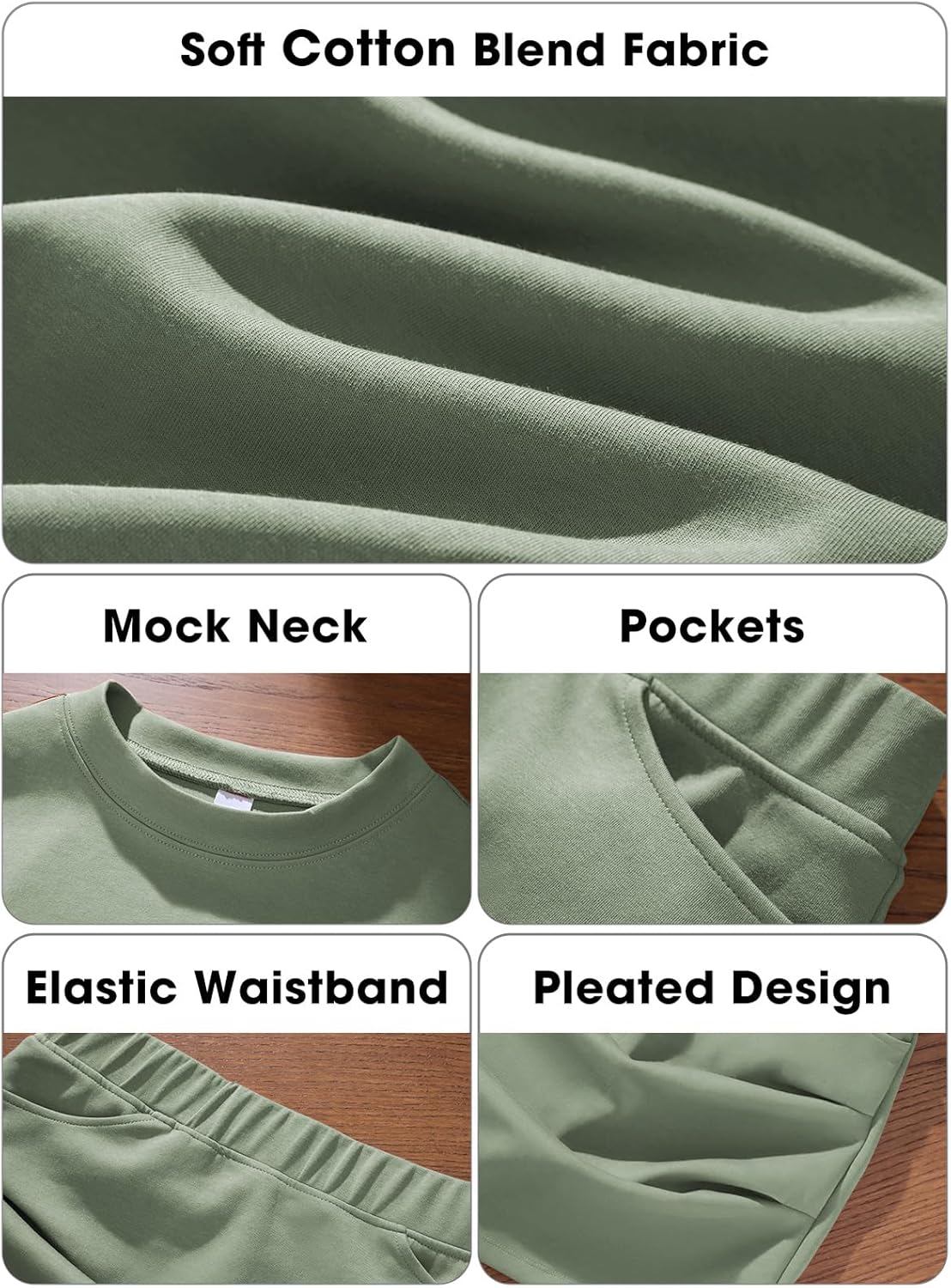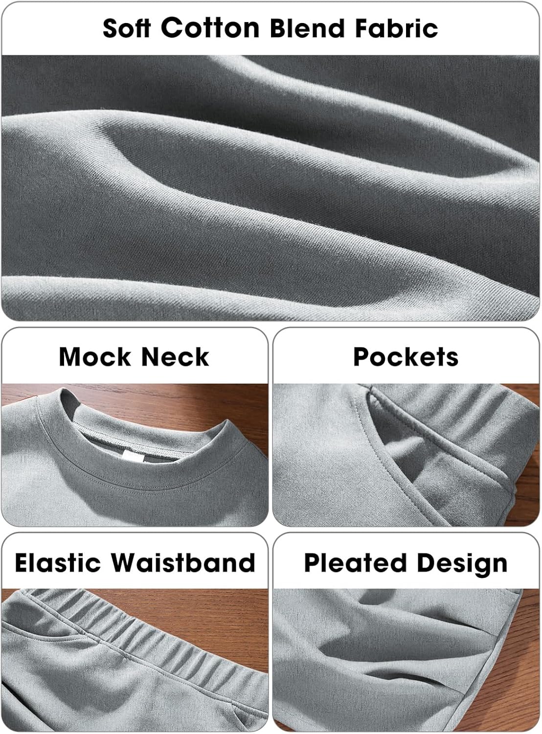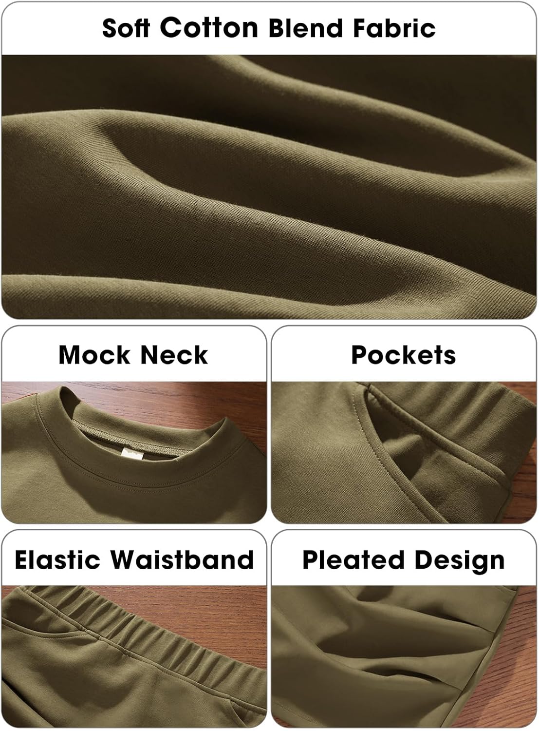 EXLURA Women 2 Piece Sets Cotton Tracksuits Workout Set Crewneck Sweatshirt Skort Short Skirt Fall Tennis Sweat Suits Pockets