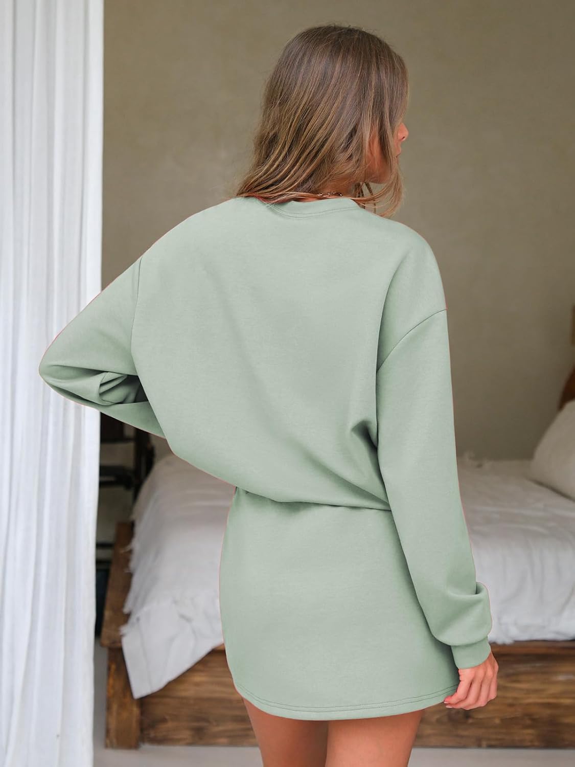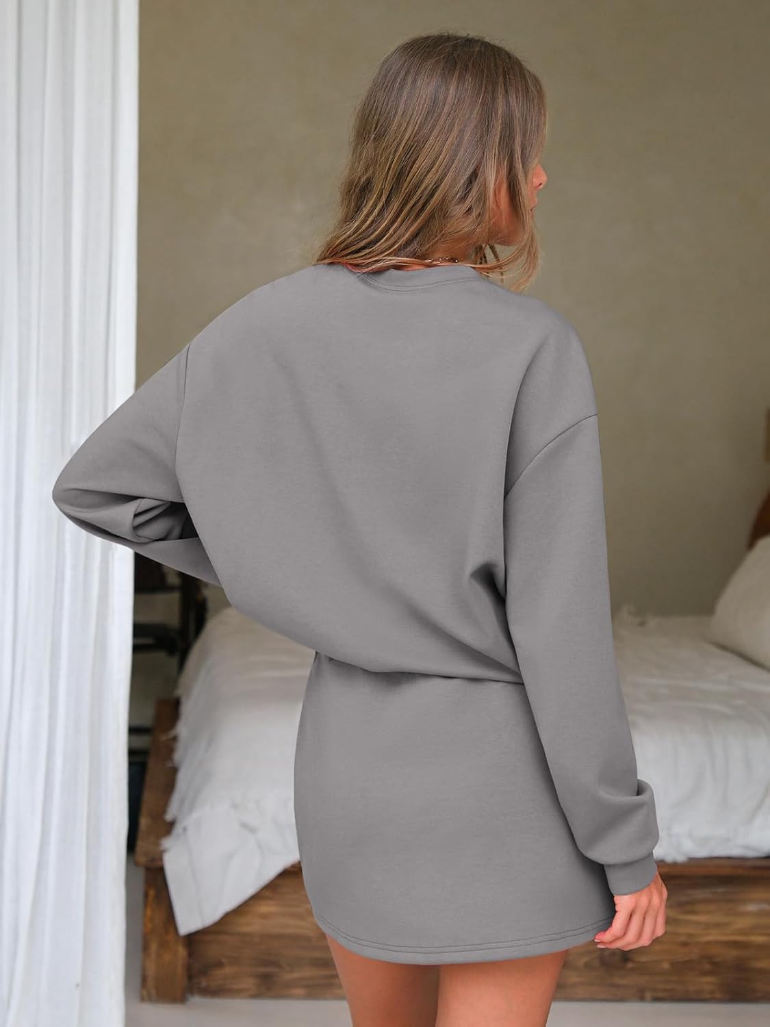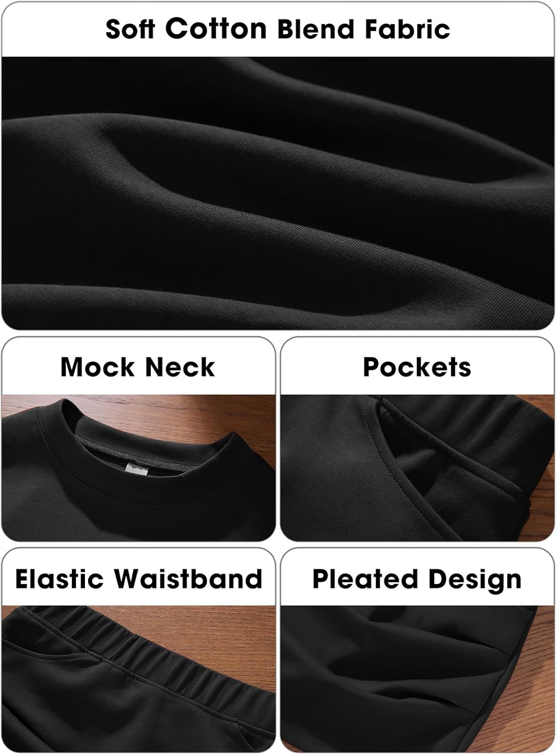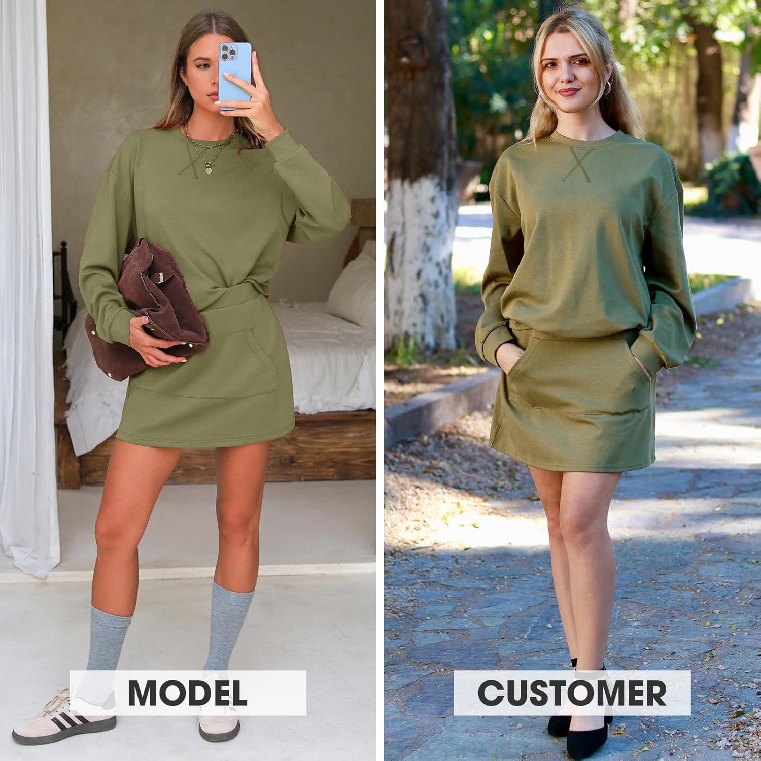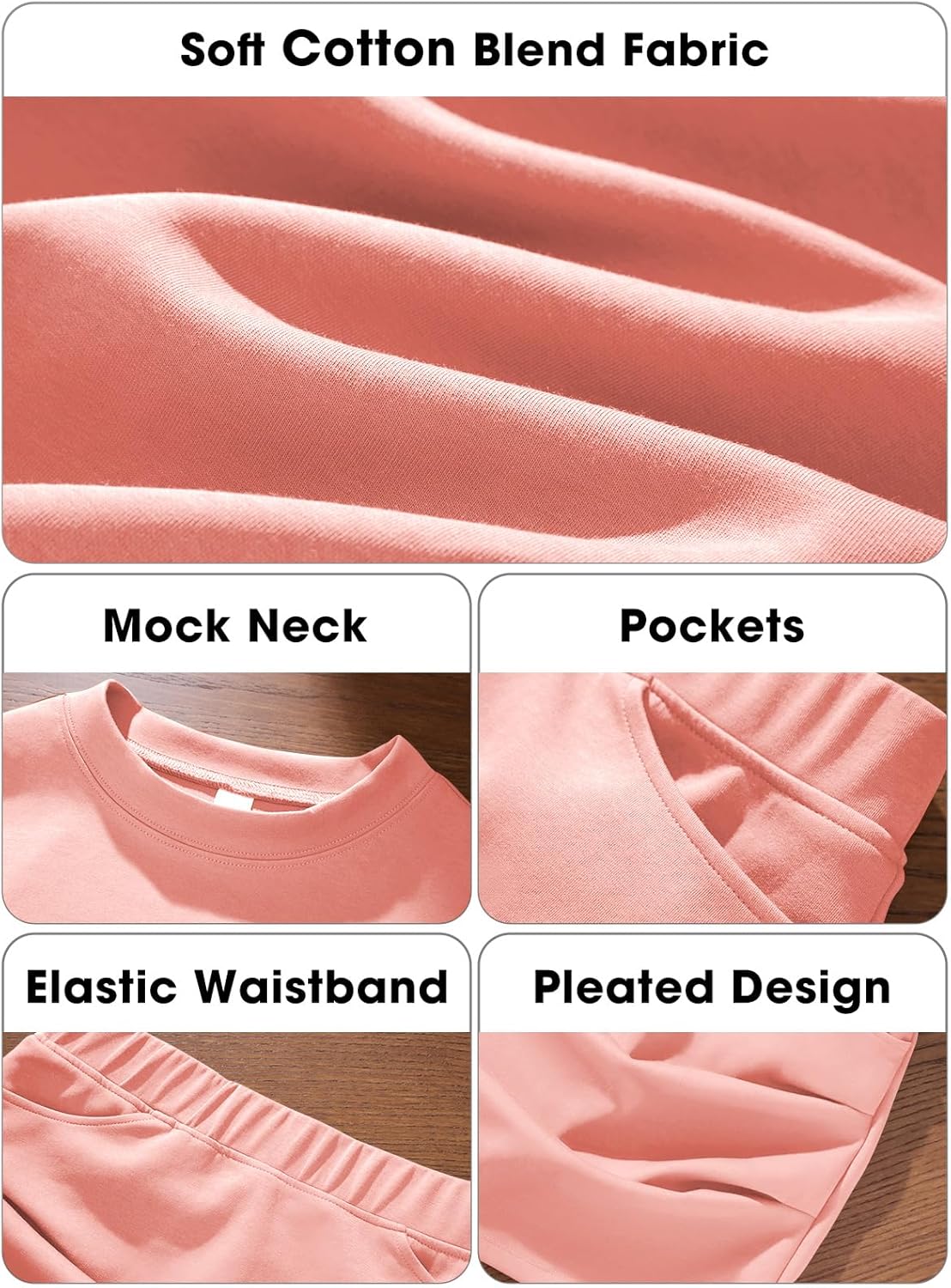 EXLURA Women 2 Piece Sets Cotton Tracksuits Workout Set Crewneck Sweatshirt Skort Short Skirt Fall Tennis Sweat Suits Pockets