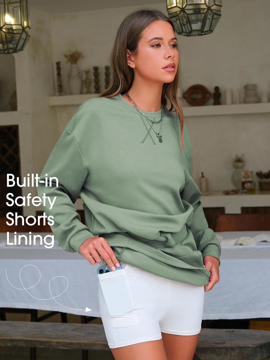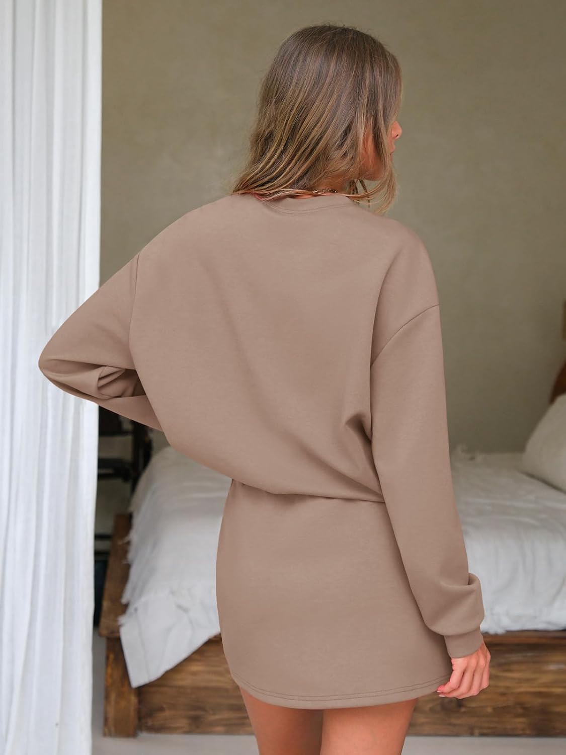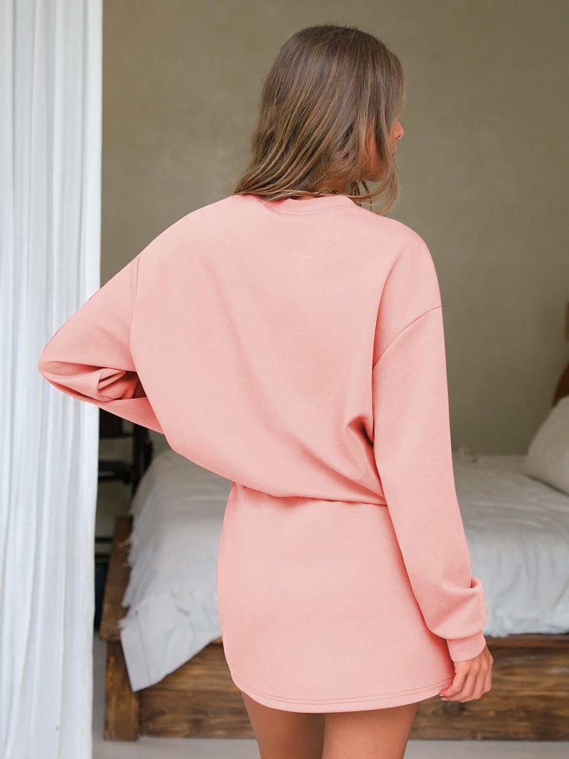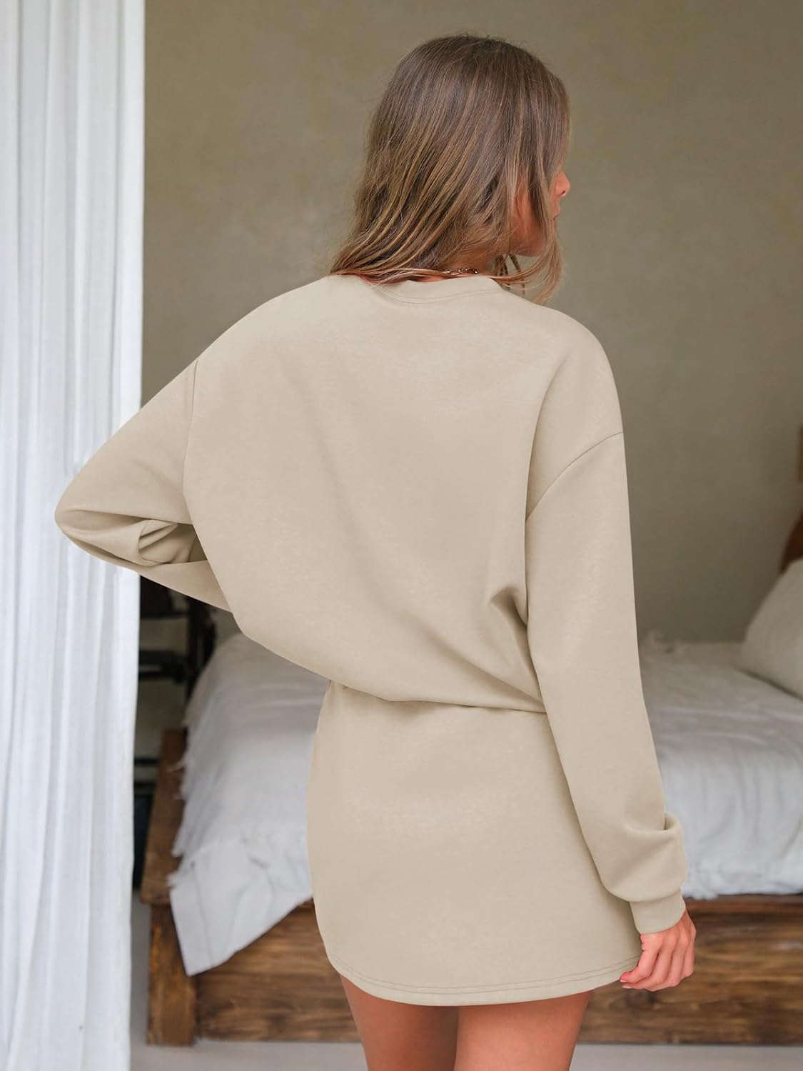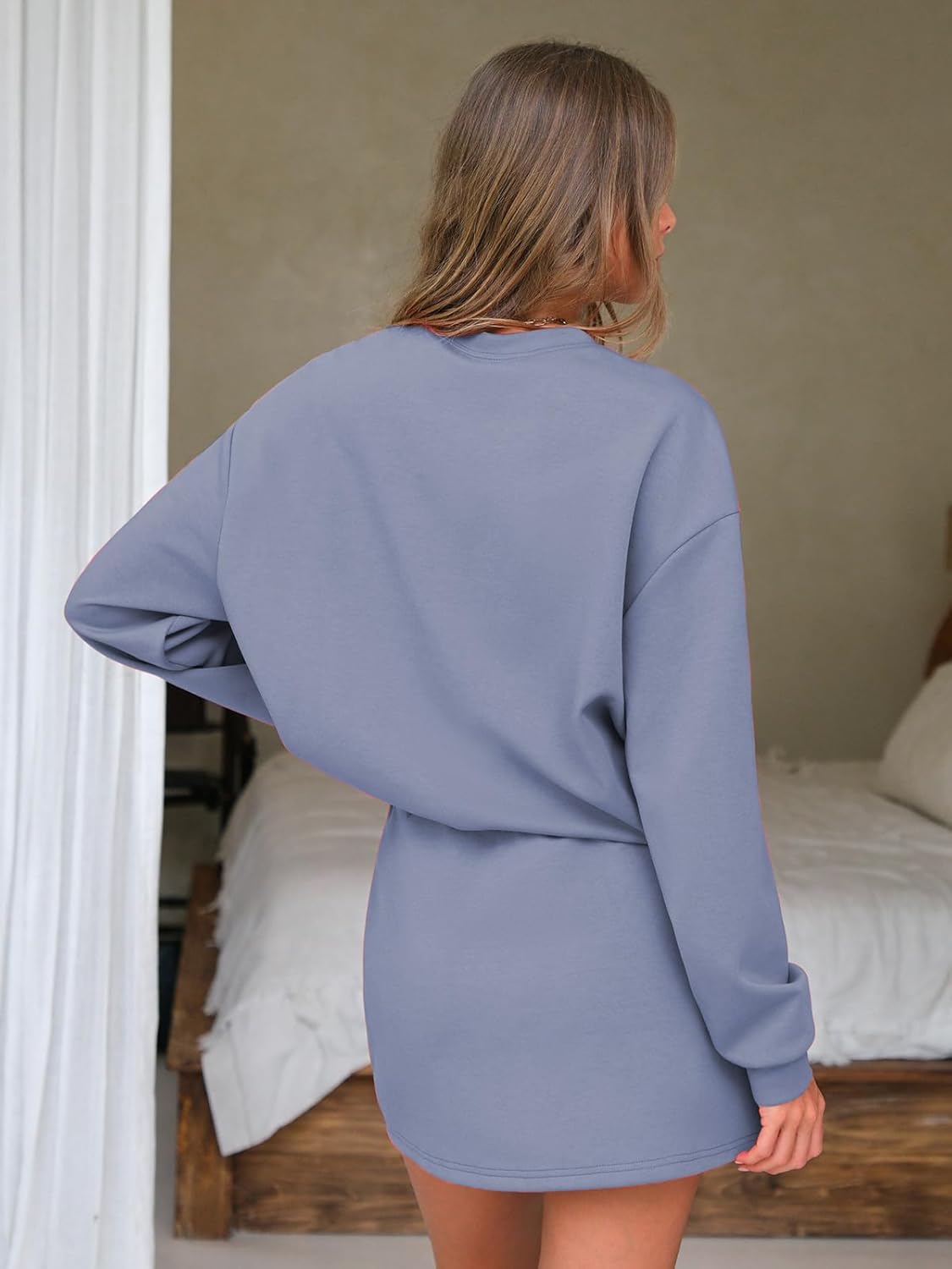 EXLURA Women 2 Piece Sets Cotton Tracksuits Workout Set Crewneck Sweatshirt Skort Short Skirt Fall Tennis Sweat Suits Pockets