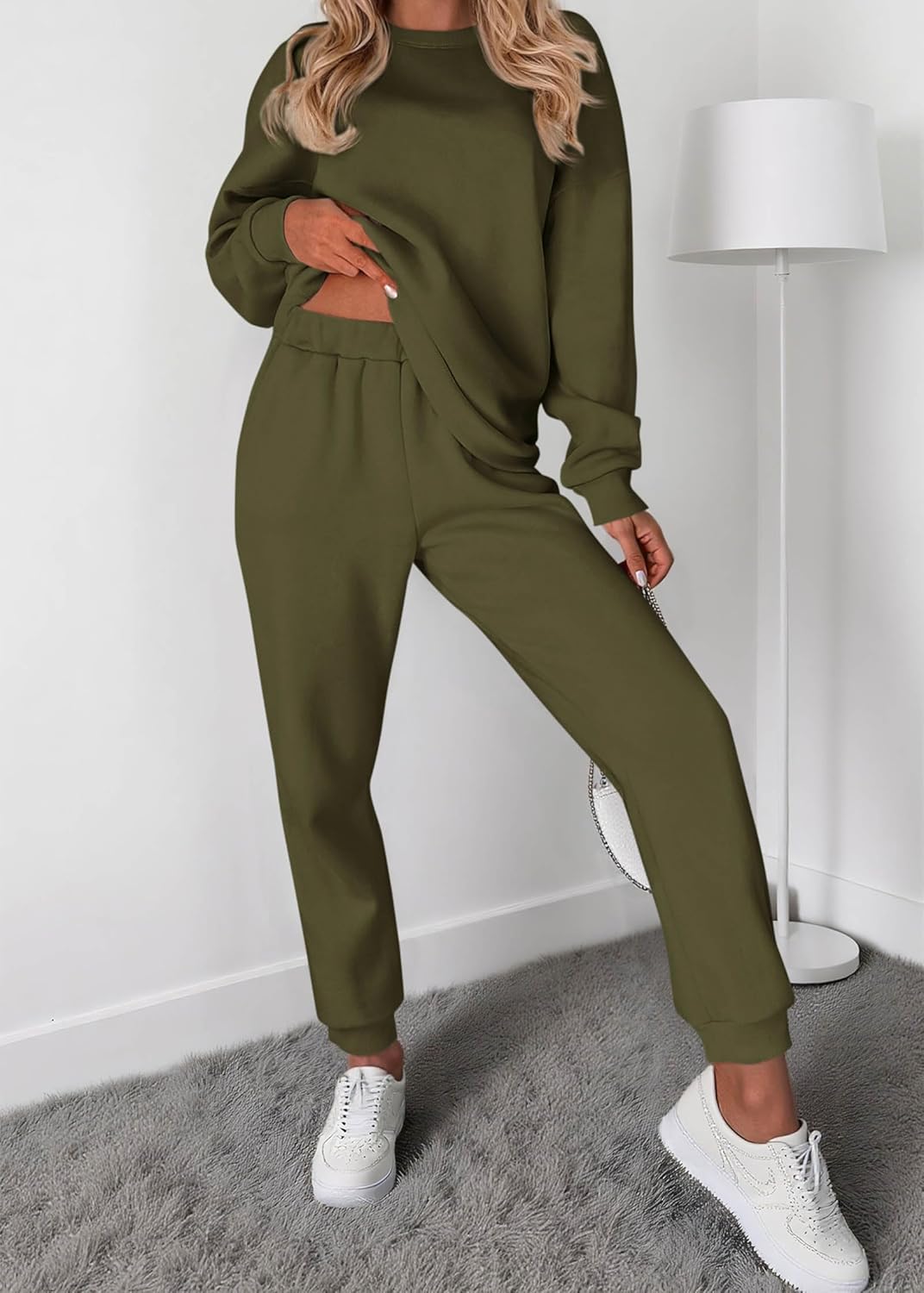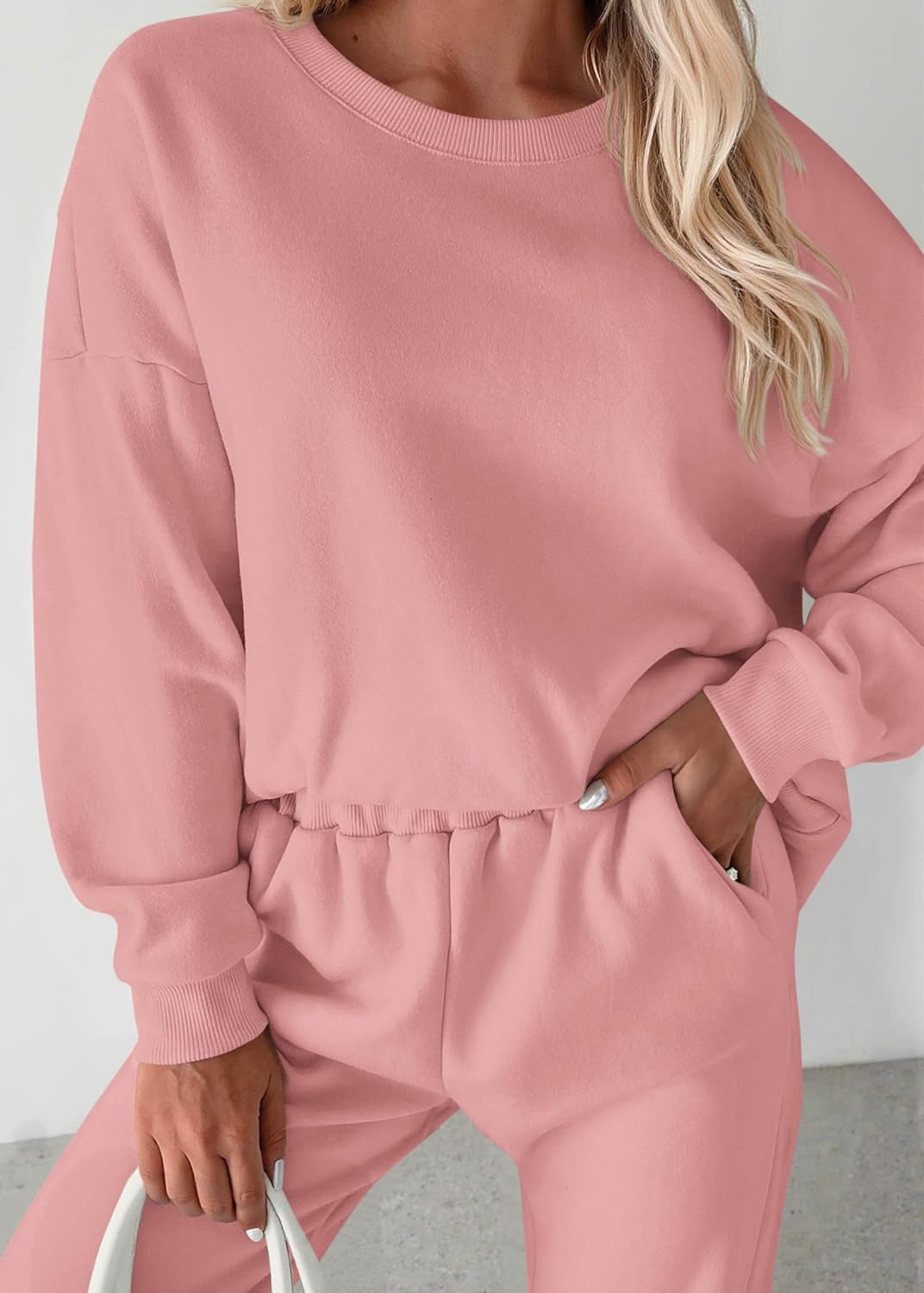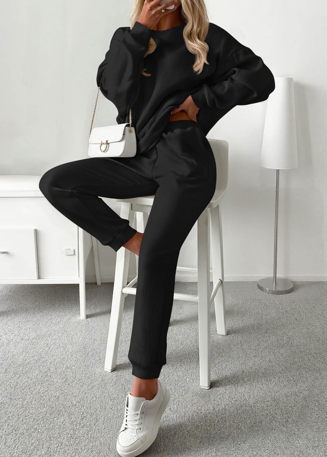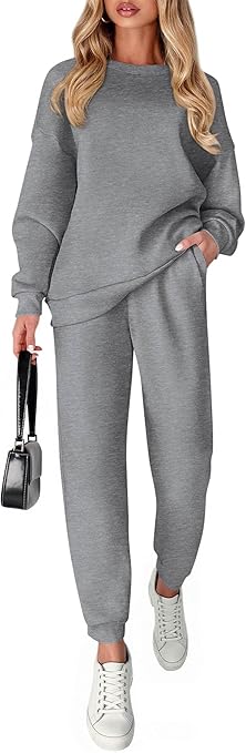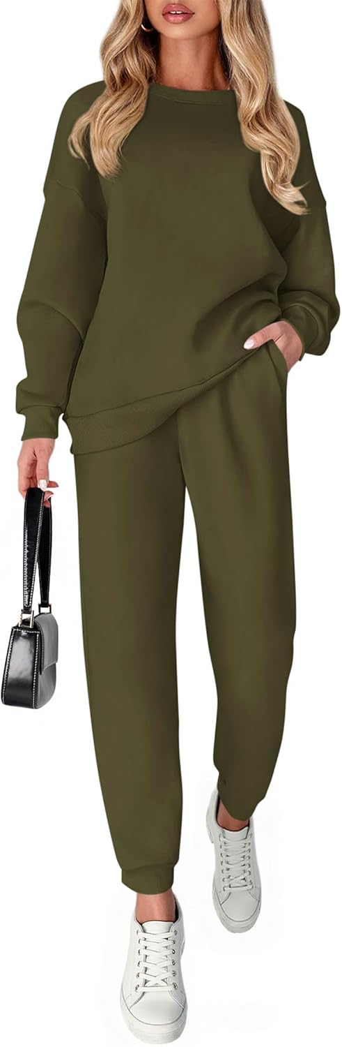 KIRUNDO Fall Sweatsuits Women 2 Piece Outfit 2025 Matching Lounge Sets Sweatshirt Jogger Sweatpants Travel Airport Tracksuit