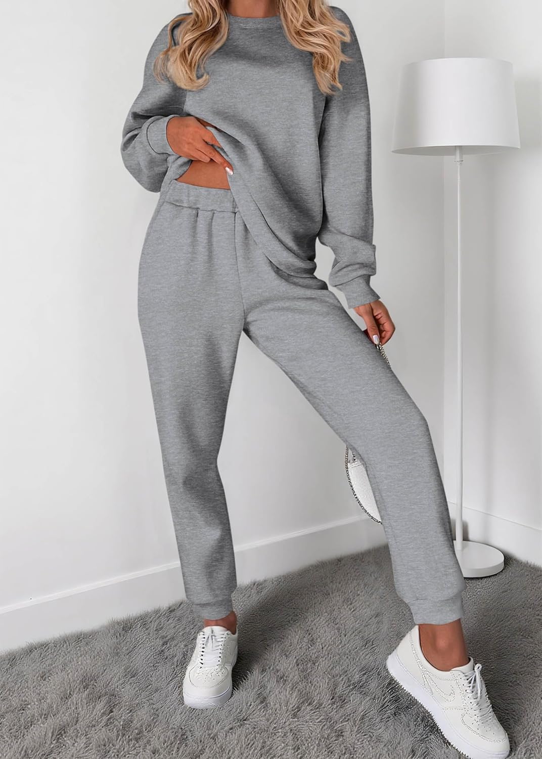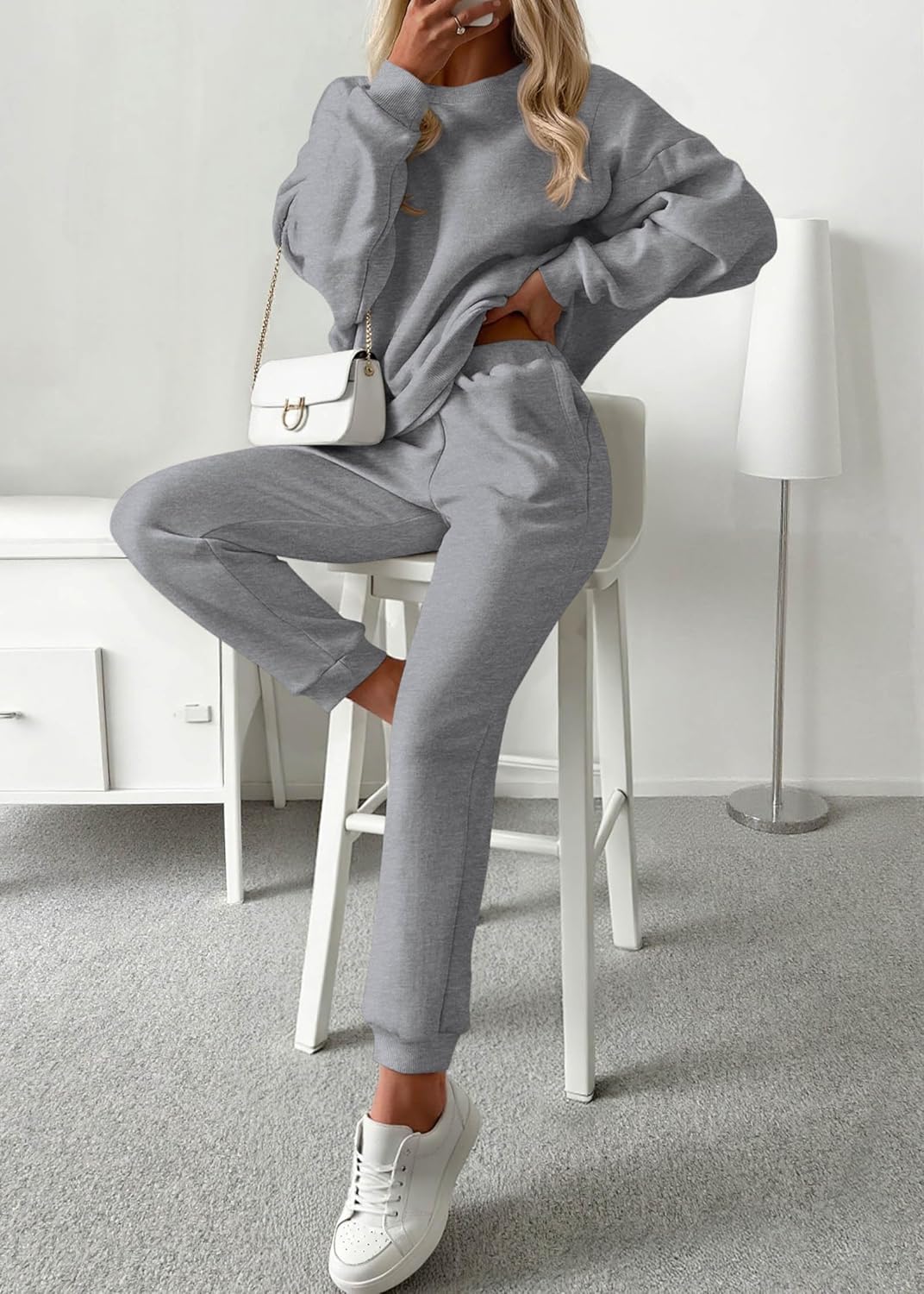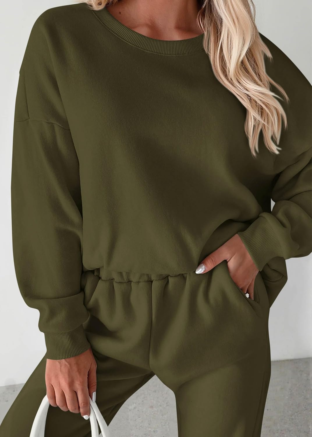 KIRUNDO Fall Sweatsuits Women 2 Piece Outfit 2025 Matching Lounge Sets Sweatshirt Jogger Sweatpants Travel Airport Tracksuit